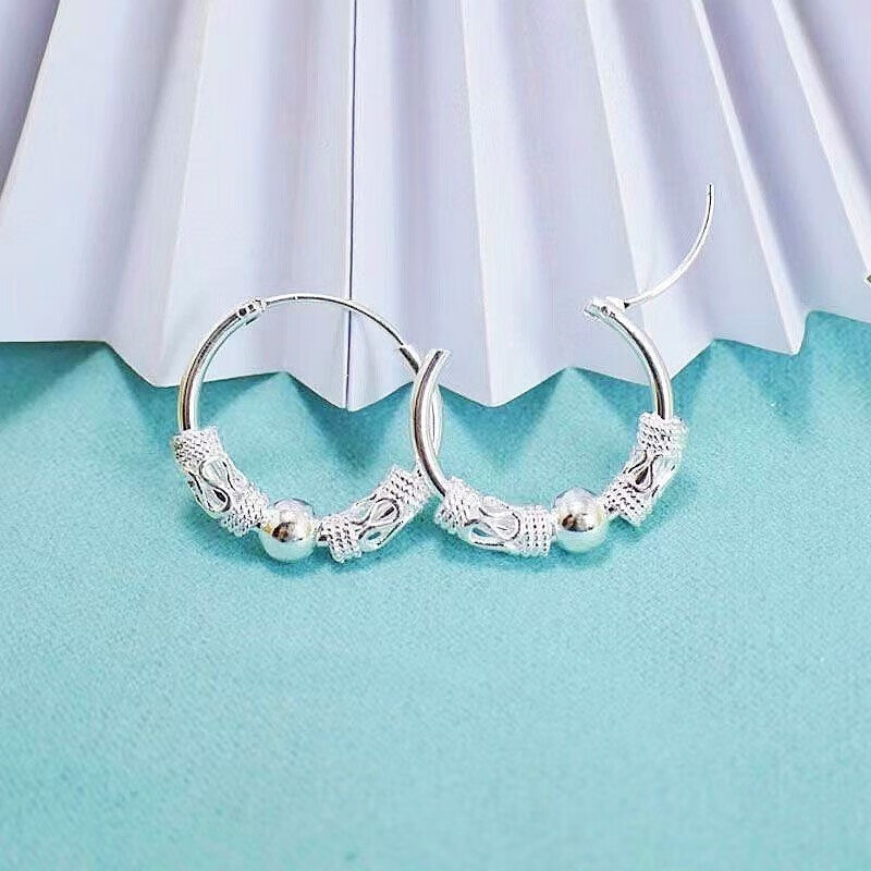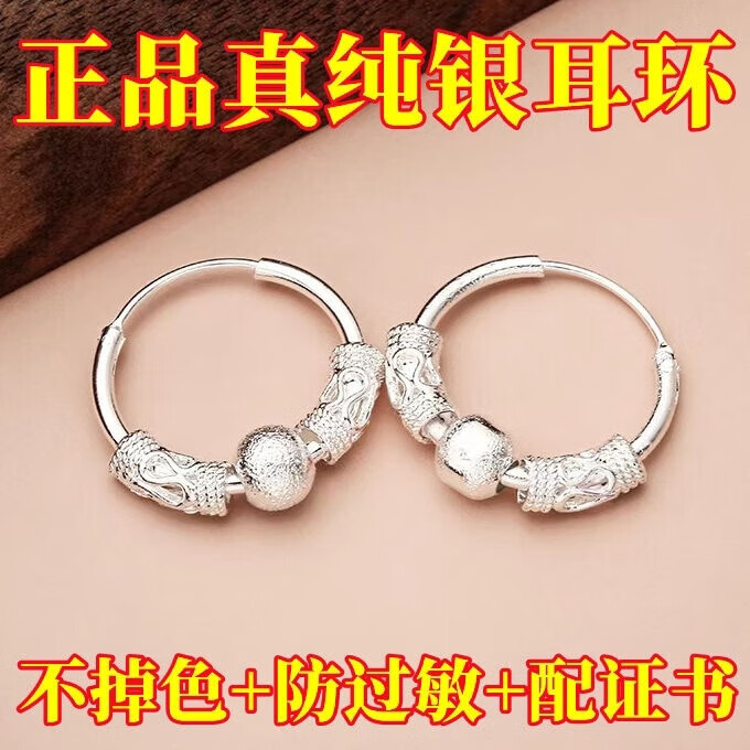 BMOI Old Phoenix 999 Pure Silver New Earrings Women's Wangfu Transfer Bead Earrings Hypoallergenic Silver Earrings Personalized 9.89g Fine Solid Only 3 Pairs Left