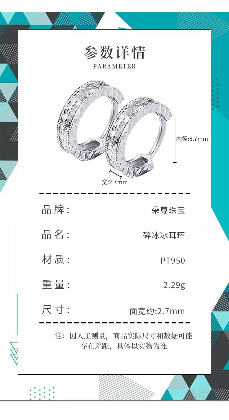 Duozun pt950 platinum earrings for women, new genuine platinum crushed ice earrings, platinum earrings, Chinese Valentine's Day gift for girlfriend, crushed ice earrings 2.31g (pair)
