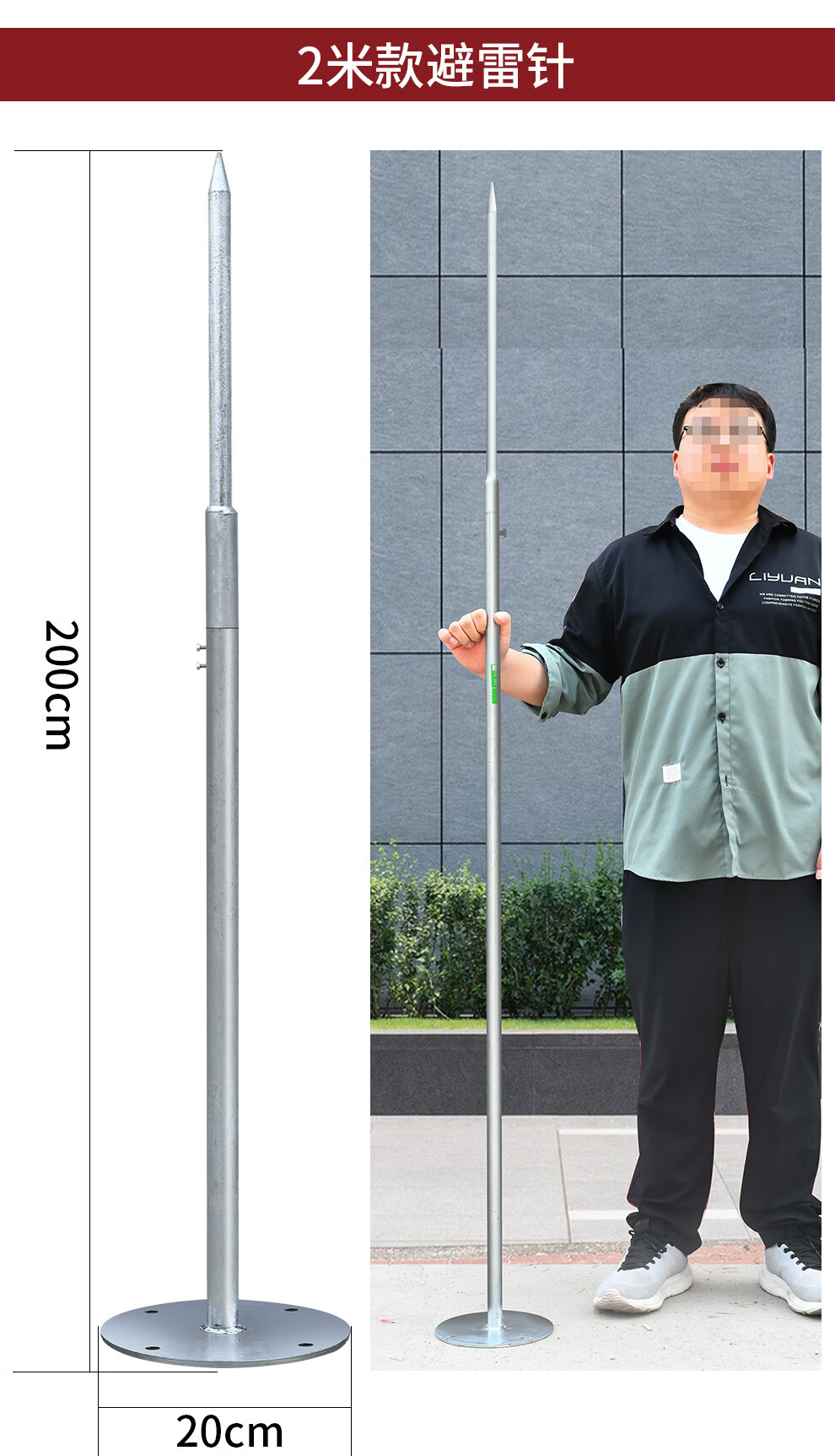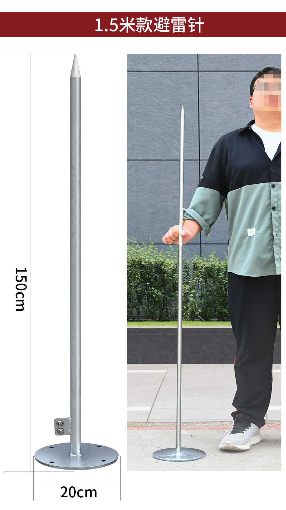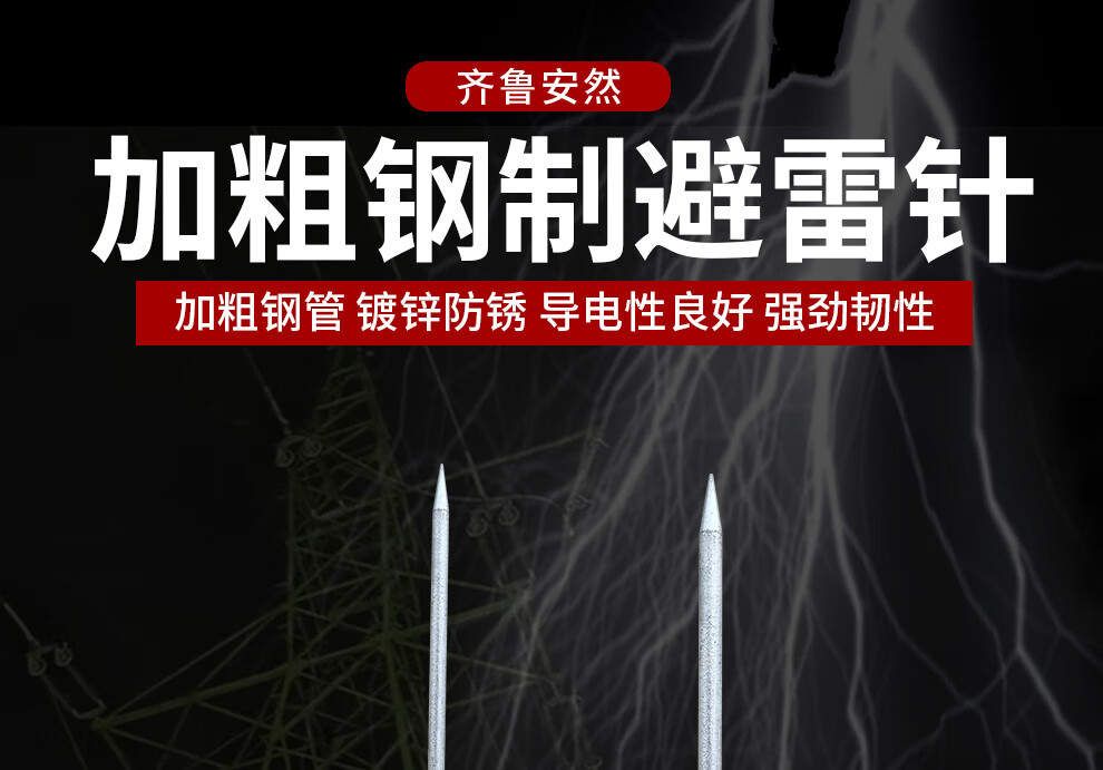 齐鲁安然  加粗避雷针 接地线接地针防雷屋顶避雷针接地线针楼顶户外工程防雷器别墅家用农村自建房防雷针全套 仅1米T型接地针