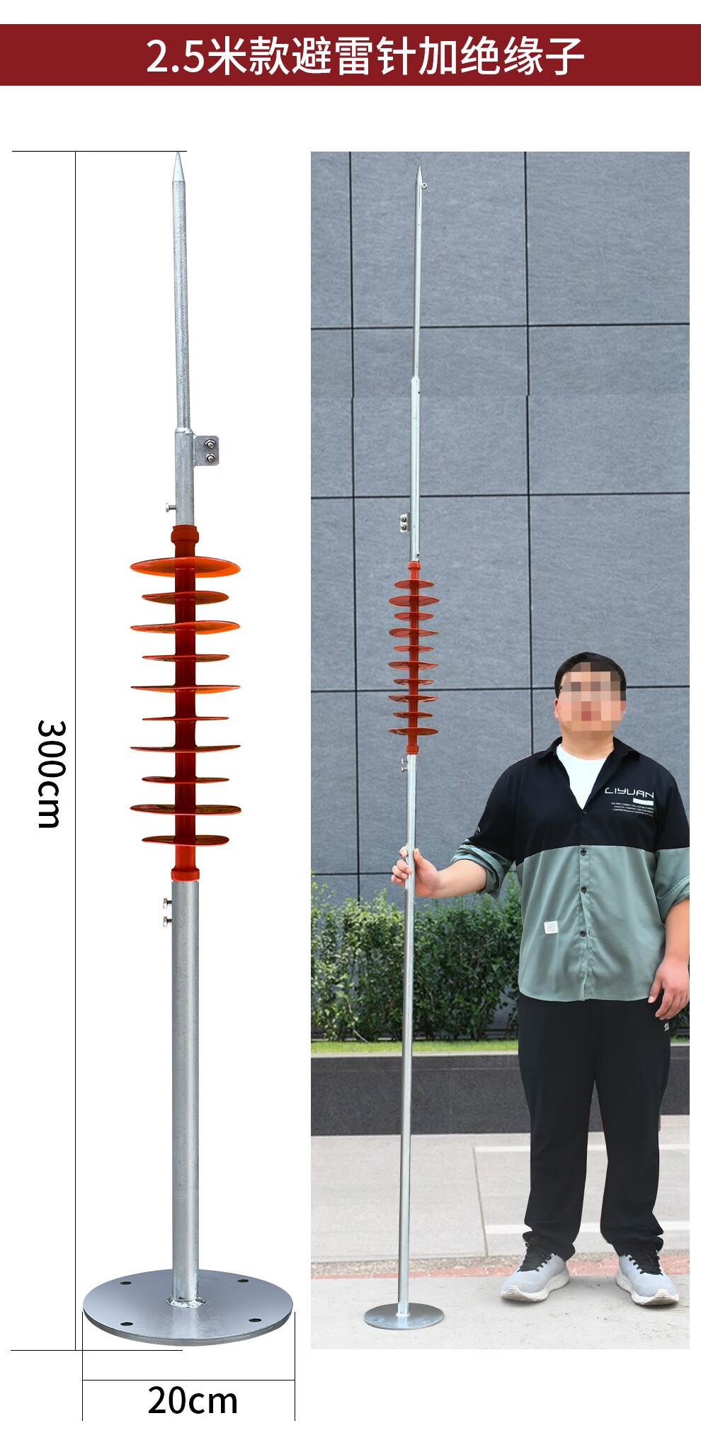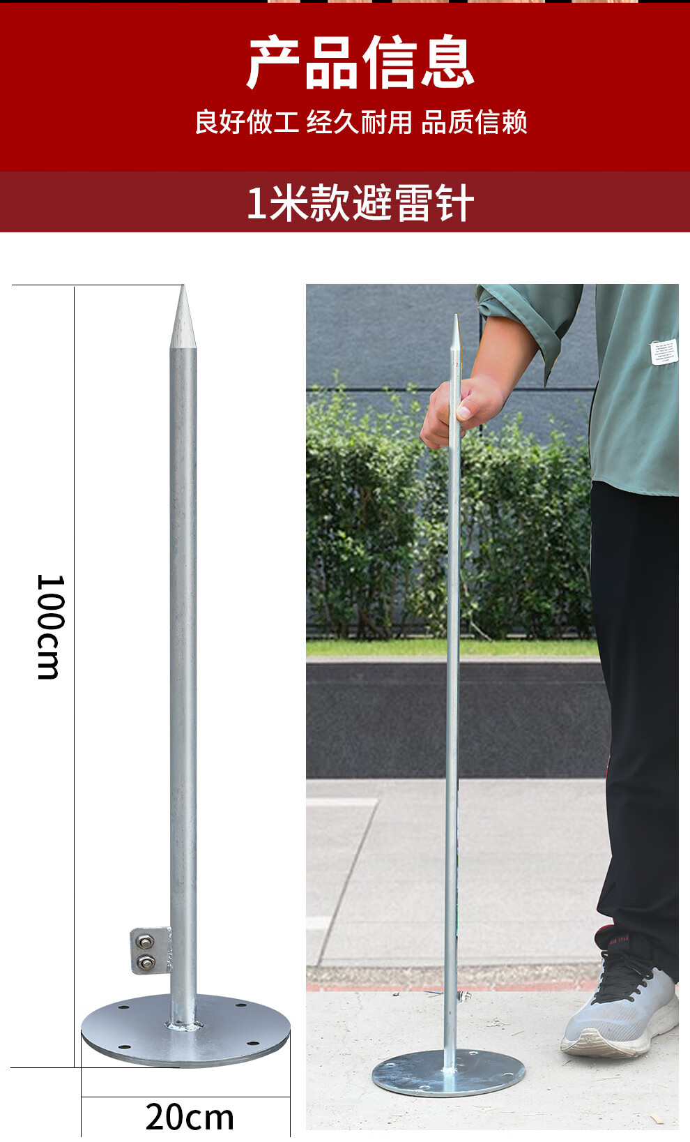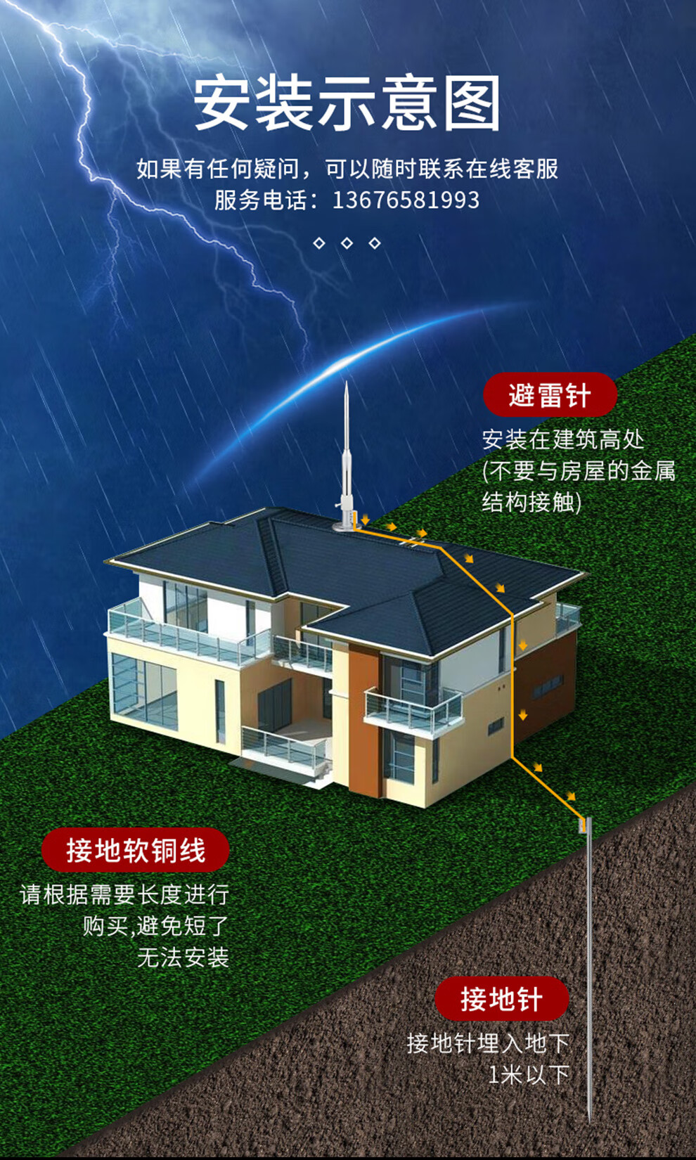 齐鲁安然  加粗避雷针 接地线接地针防雷屋顶避雷针接地线针楼顶户外工程防雷器别墅家用农村自建房防雷针全套 仅1米T型接地针