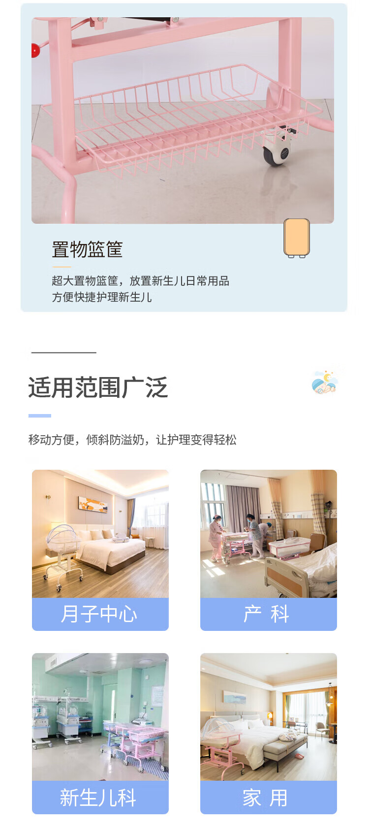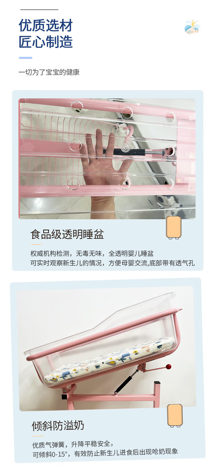 Confinement center club crib hospital newborn multi-functional stainless steel removable anti-spill milk baby stroller white model + mattress + mosquito net + fully transparent basin