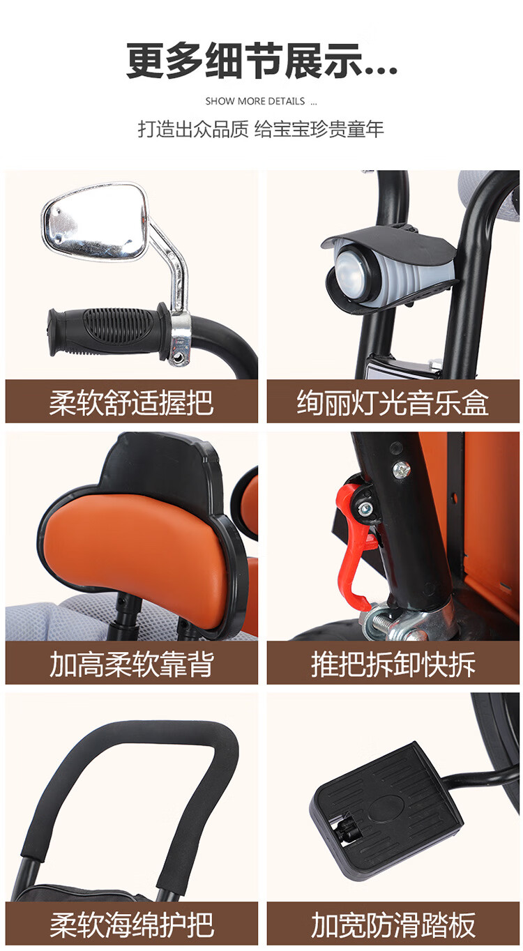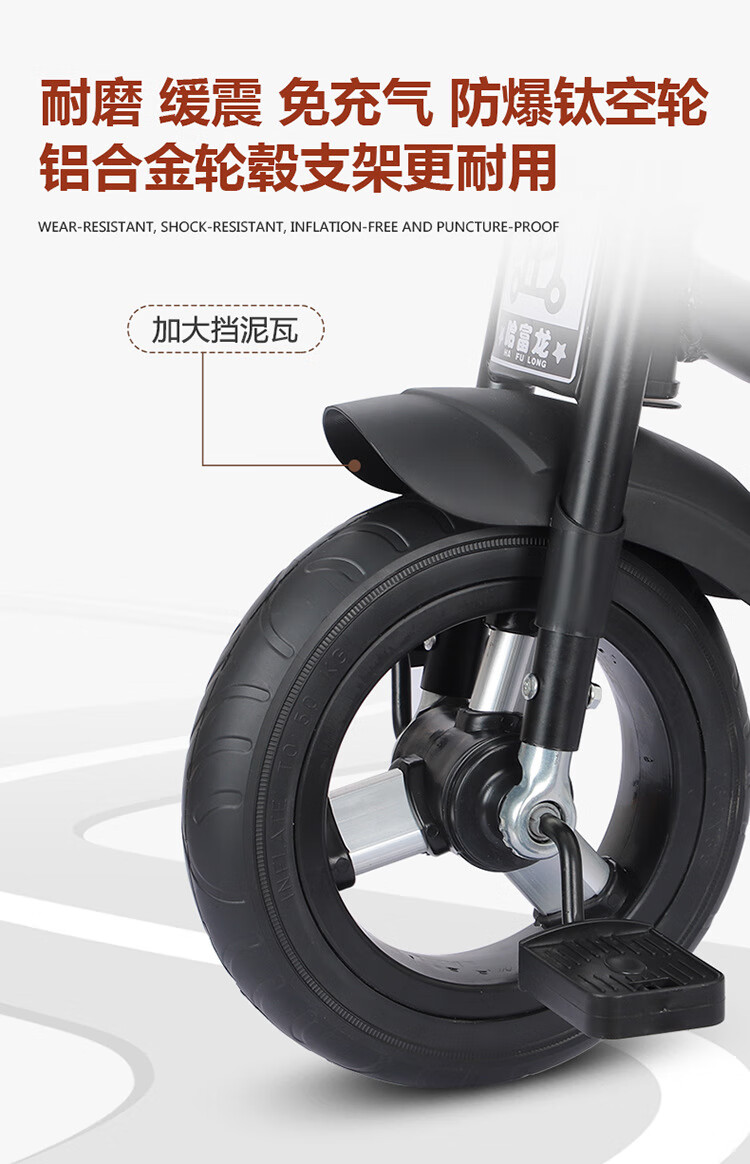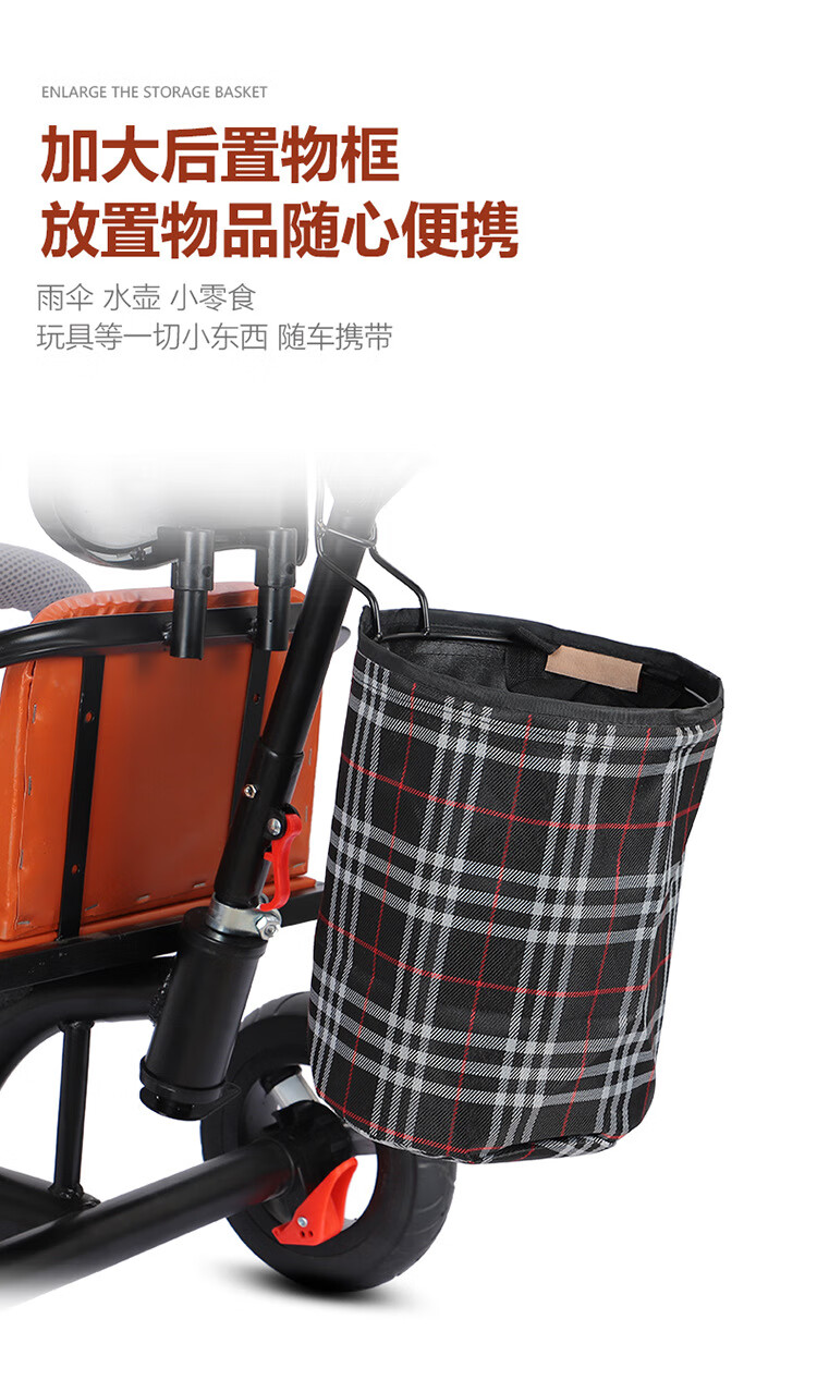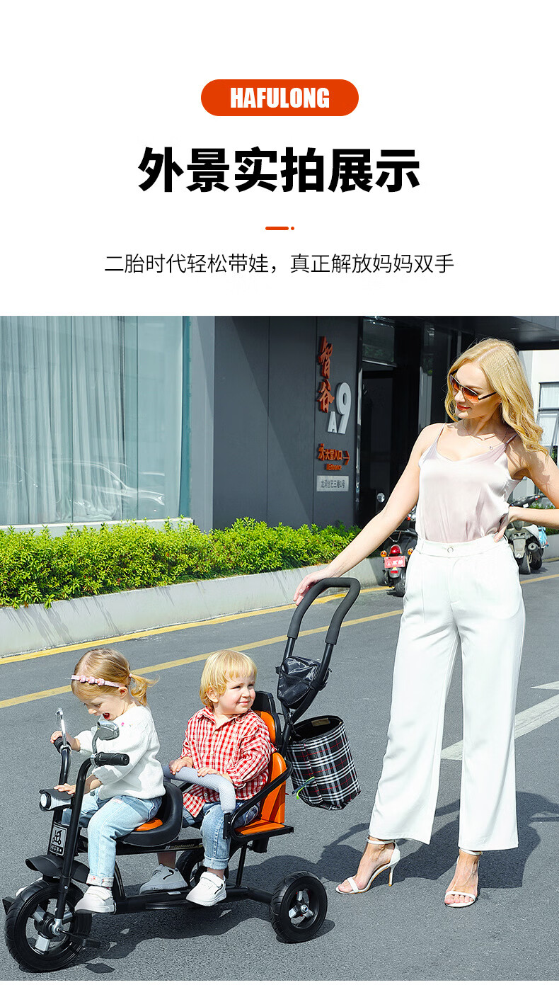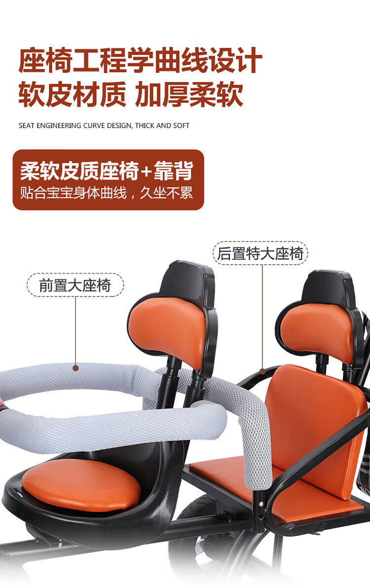 Double children's tricycle, second-child stroller, baby bicycle, twin infant stroller, powder rack + music + front and rear guardrails + shed - titanium empty wheel
