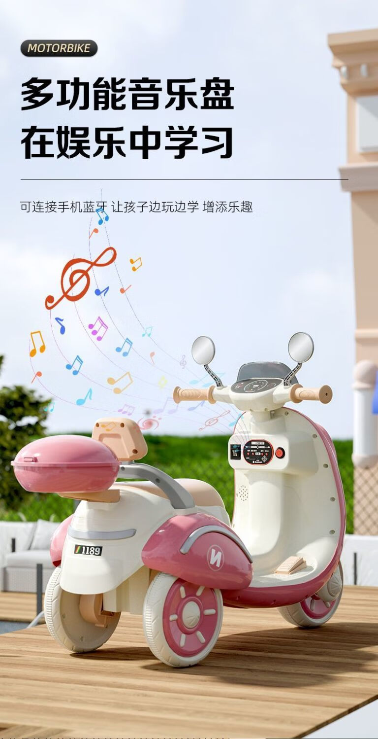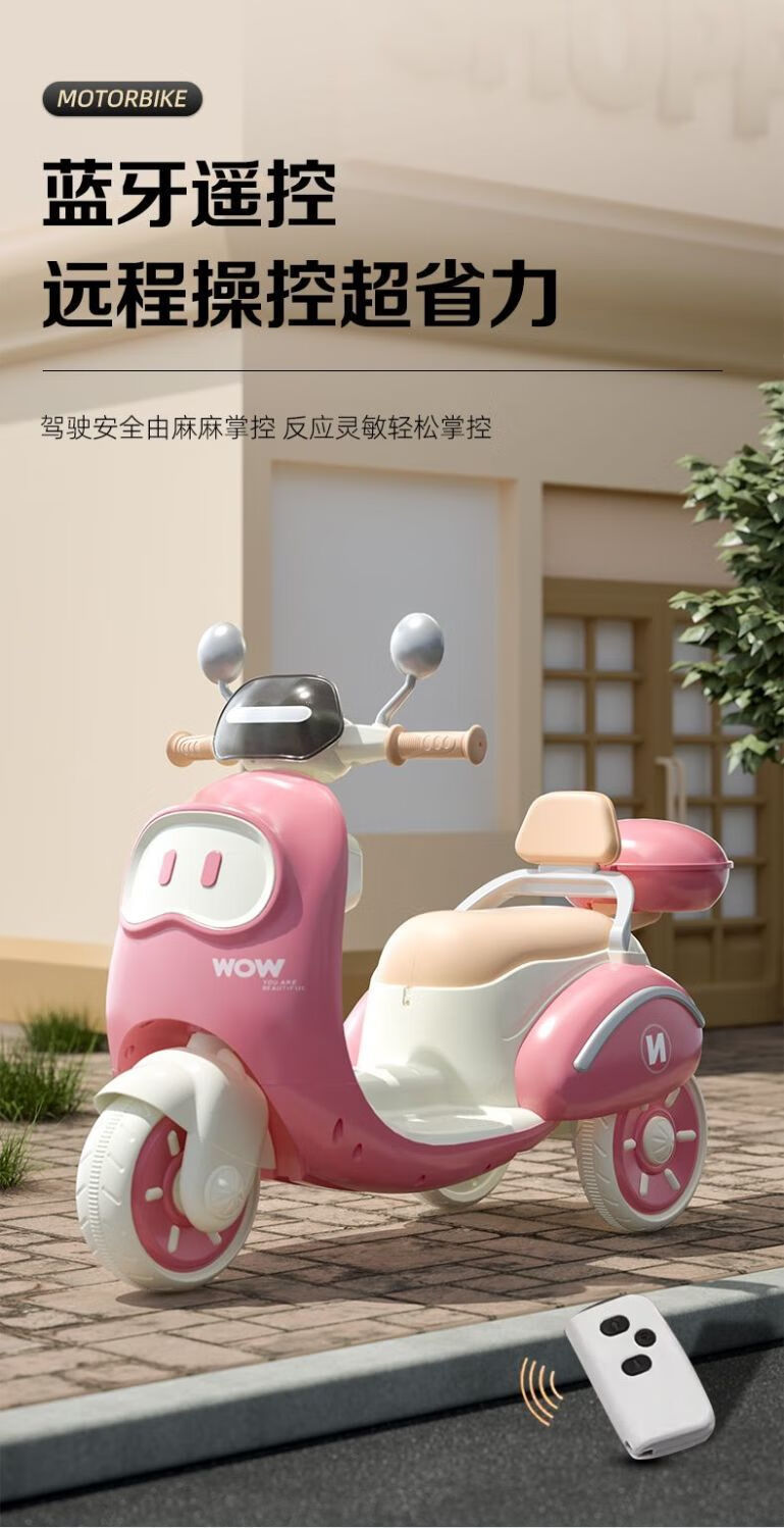 Children's electric car baby tricycle can be charged with remote control, princess pink, top version, extra large battery + remote control