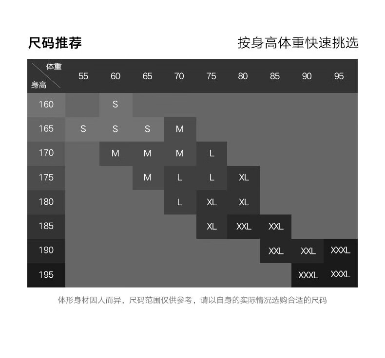 China (cm) 160-165/84-86 165-170 / 88-90 167-172 / 92-96 168-173 / 98-102 170-176 / 106-110