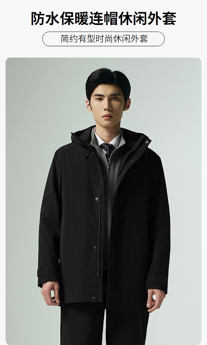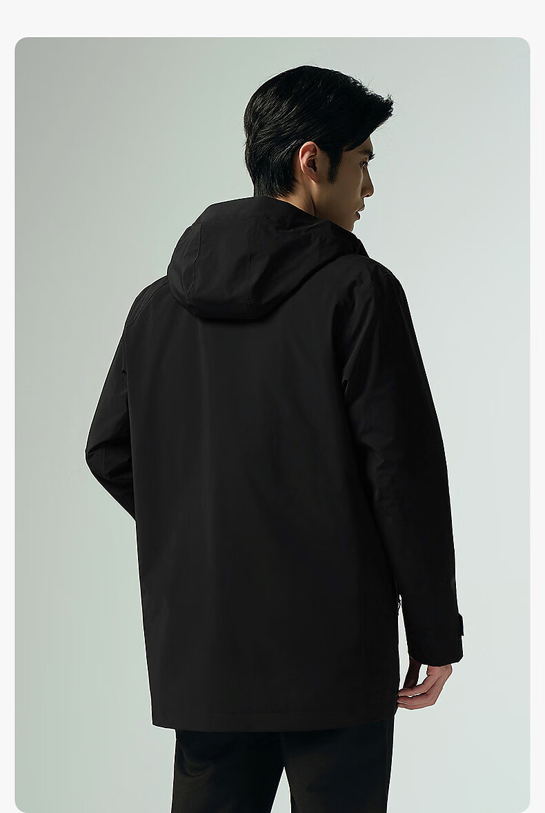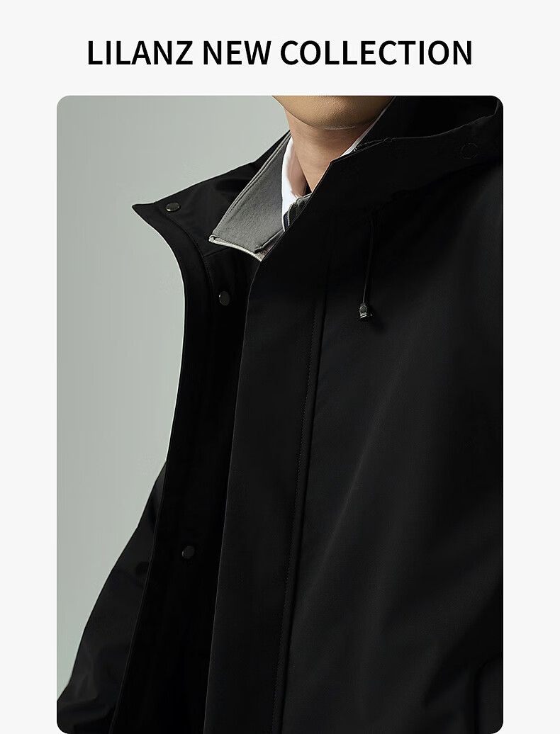 Lilang Waterproof Core Warm Cotton Windbreaker Men's Jacket Hooded Autumn Commuting Business Men's Windbreaker Medium Long Style 25 New Black (G5QFY3012Y) XL 175/92A