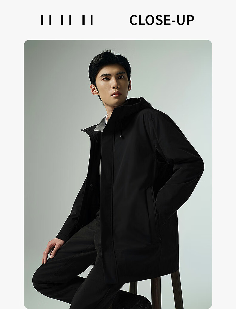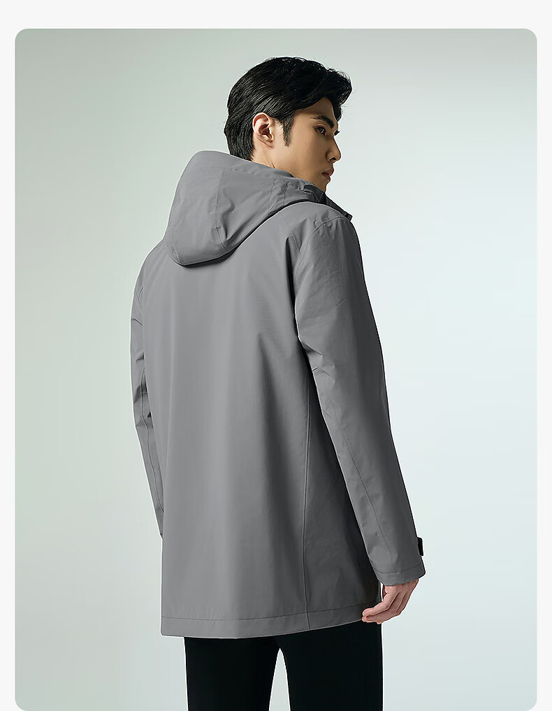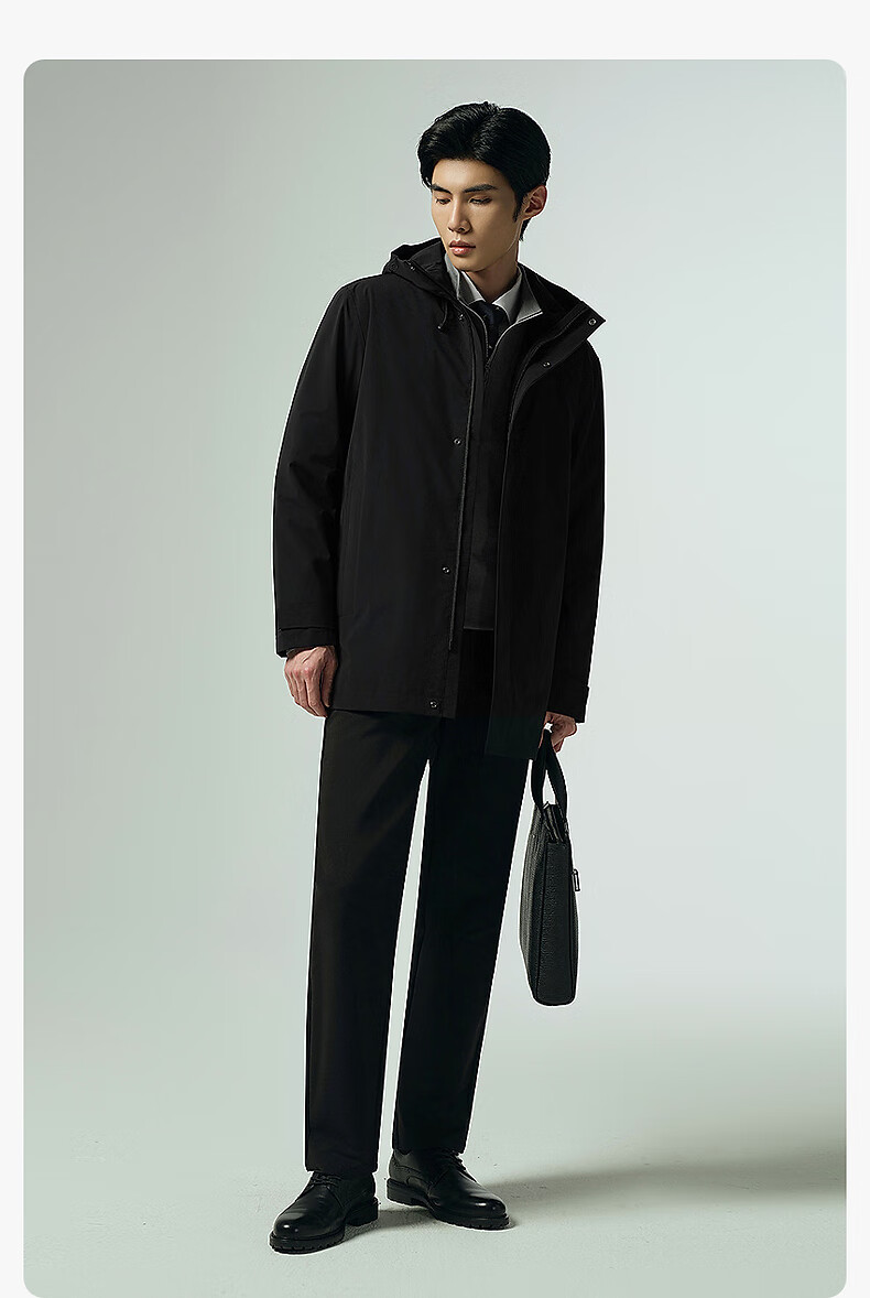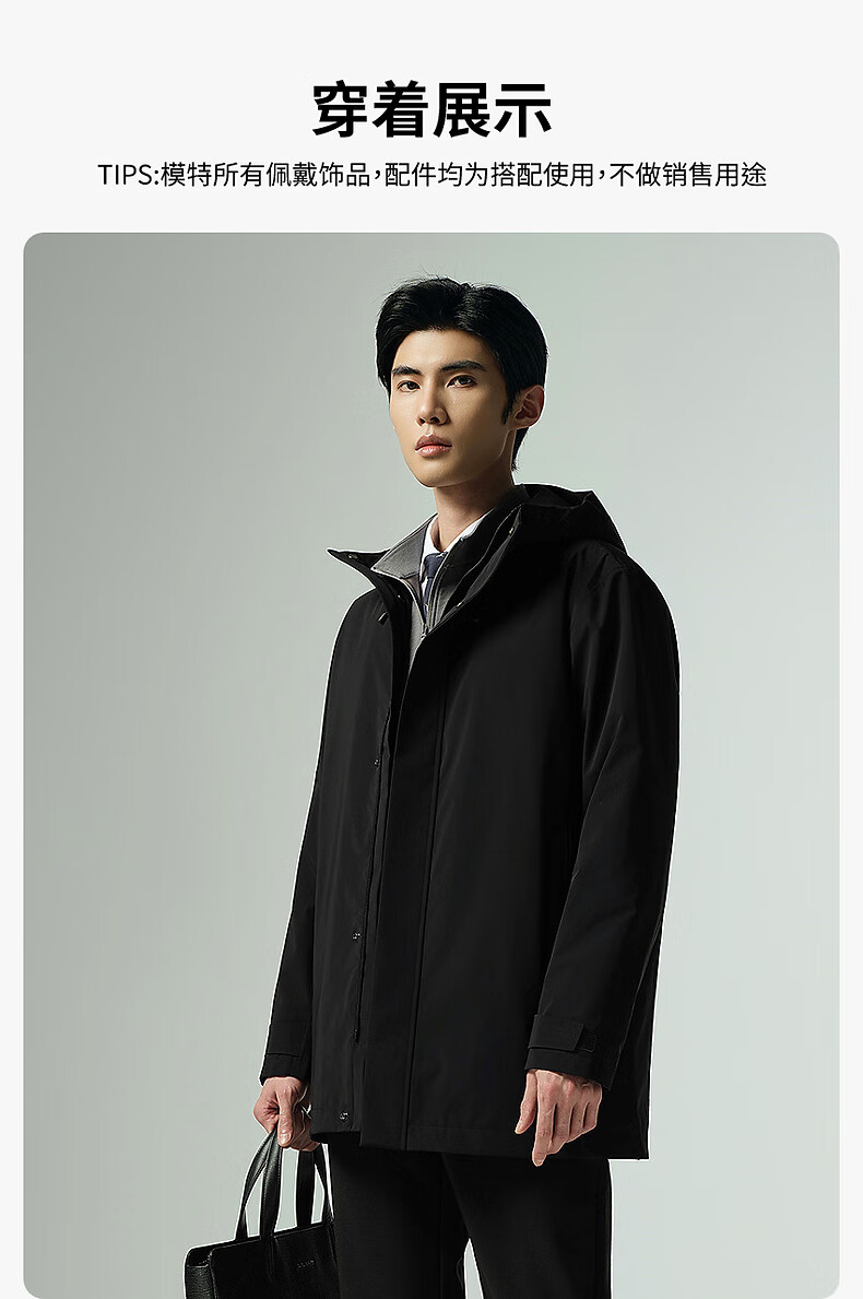 Lilang Waterproof Core Warm Cotton Windbreaker Men's Jacket Hooded Autumn Commuting Business Men's Windbreaker Medium Long Style 25 New Black (G5QFY3012Y) XL 175/92A