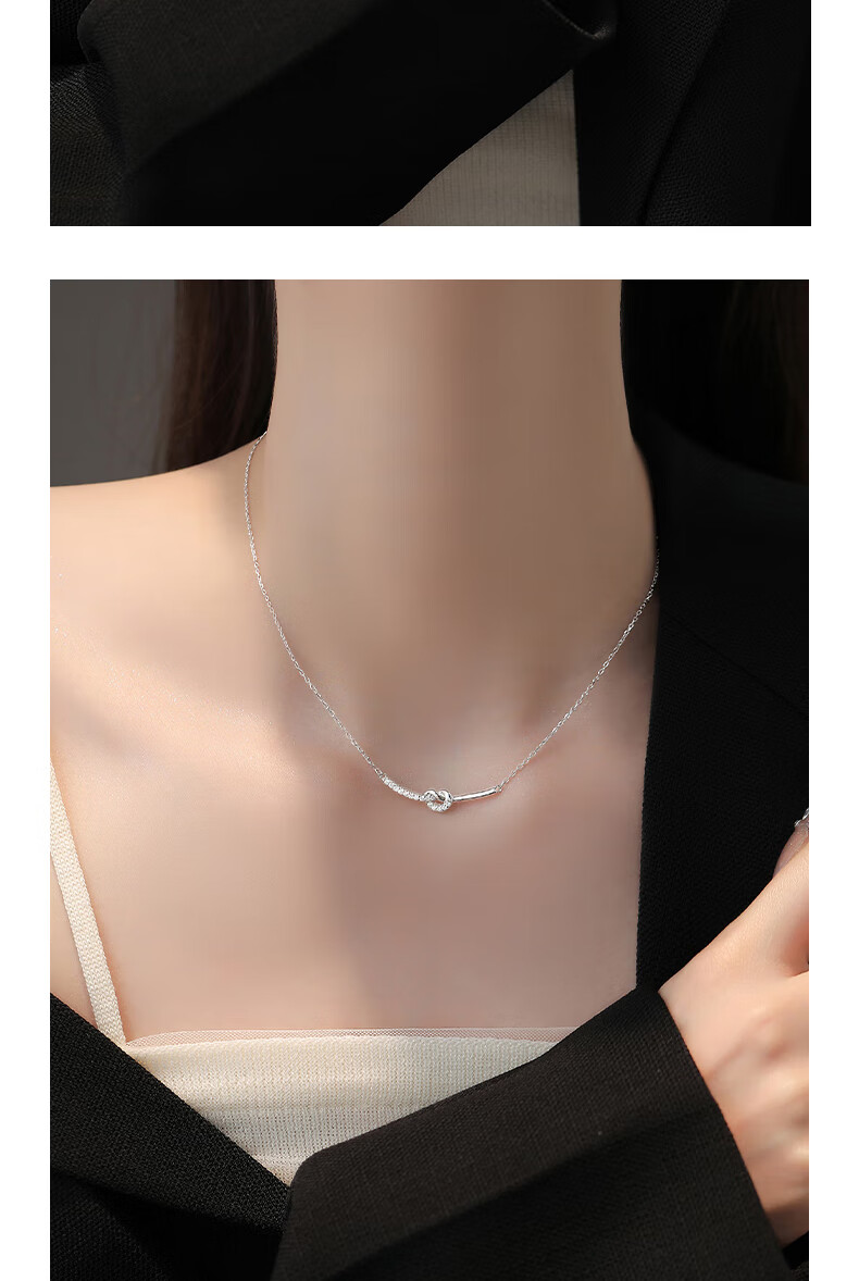 Bai Qixin titanium steel necklace smile knot clavicle chain female ins high-end niche light luxury pendant birthday gift for girlfriend smile knot necklace gift box