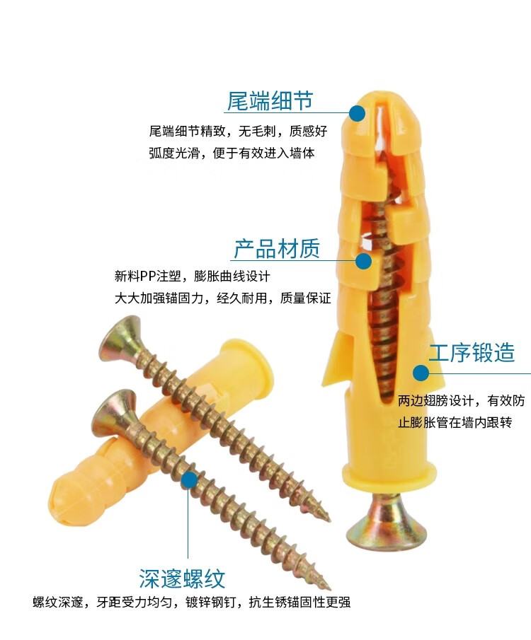 Jaynes small yellow croaker plastic expansion tube expansion screw expansion plug bolt expansion nail self-tapping screw rubber plug set 6mm M6*40 (color-plated zinc nail + small yellow croaker) 50 set