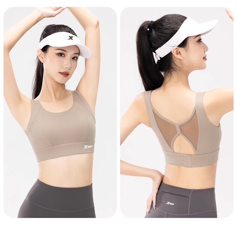 Xtep Mesh Sports Bra Women's Shockproof Anti-sagging Fitness Yoga Vest Push-Up Pilates Running Bra Black Back Mesh 2XL Lower Bust 88~92,85CD/90ABC