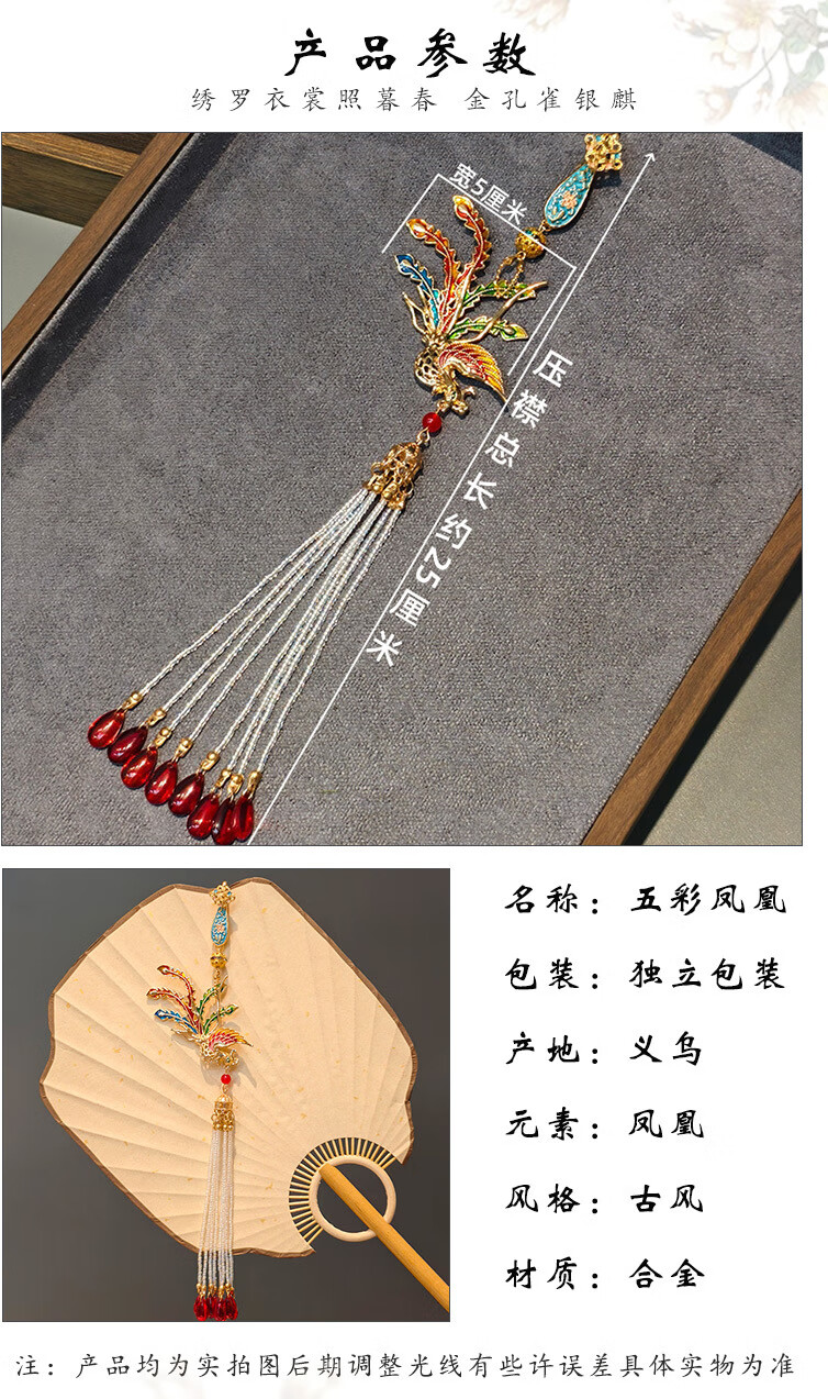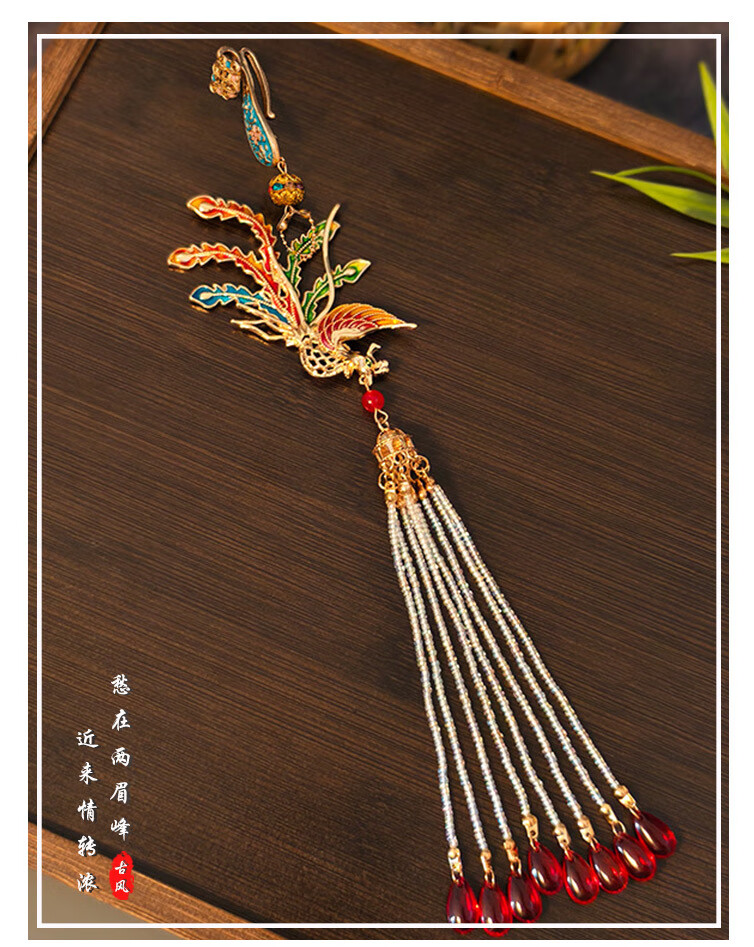 MiU Se (MiU Se) Chinese-style multicolored phoenix placket, ancient style long tassel pendant, national style style chest cheongsam and Hanfu accessories, one colorful phoenix placket