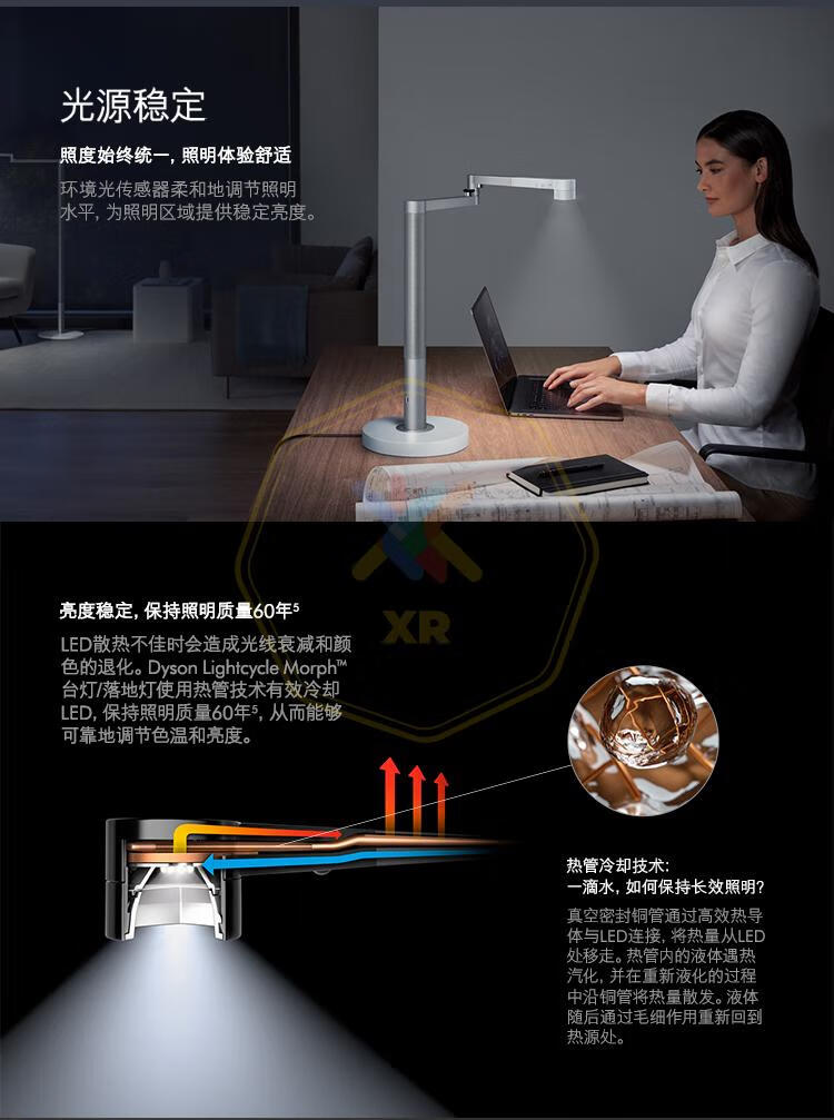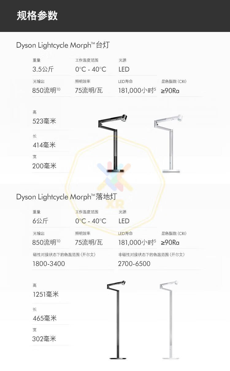 Dyson Floor Lamp Trendy Lifestyle Appliances Adjustable Color Temperature 2700K-6500K CF06 Lightcycle Morph White Silver
