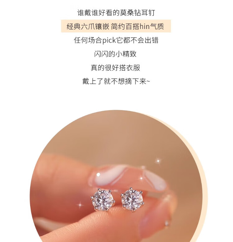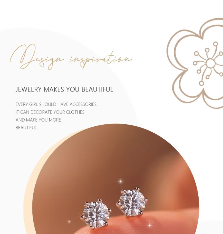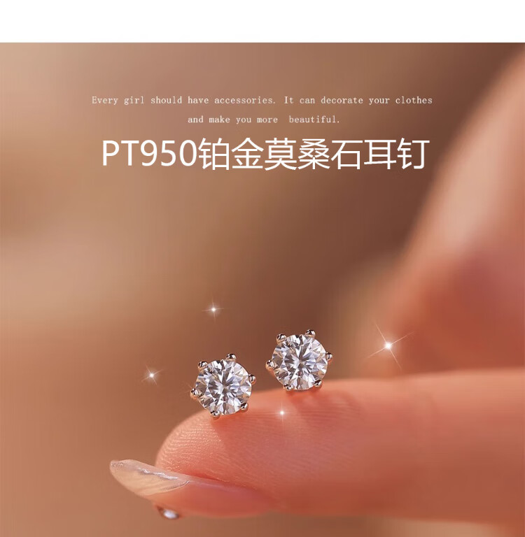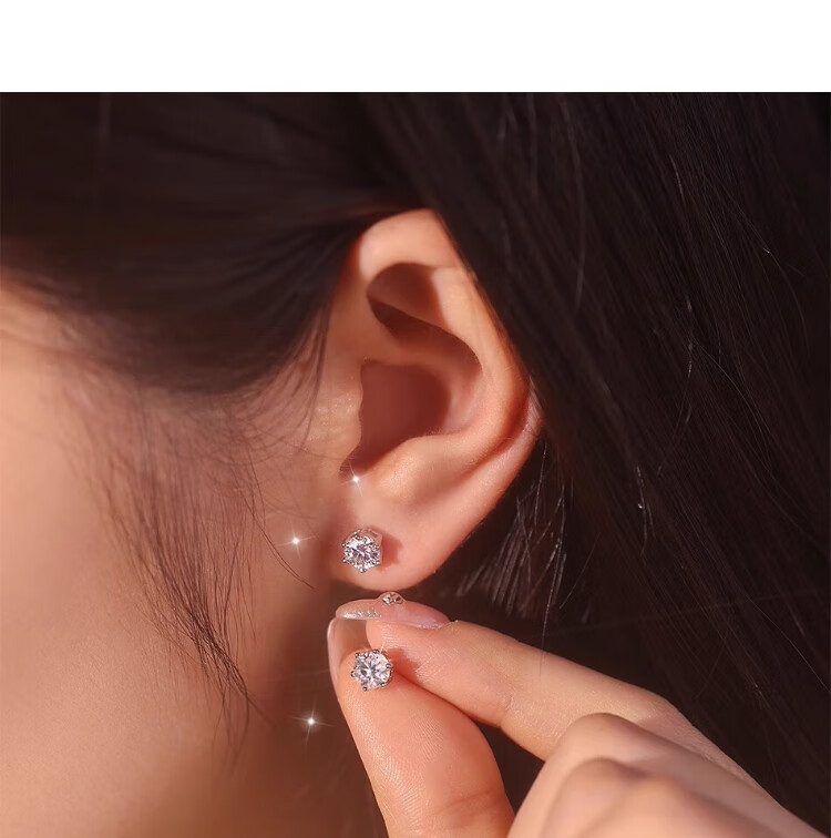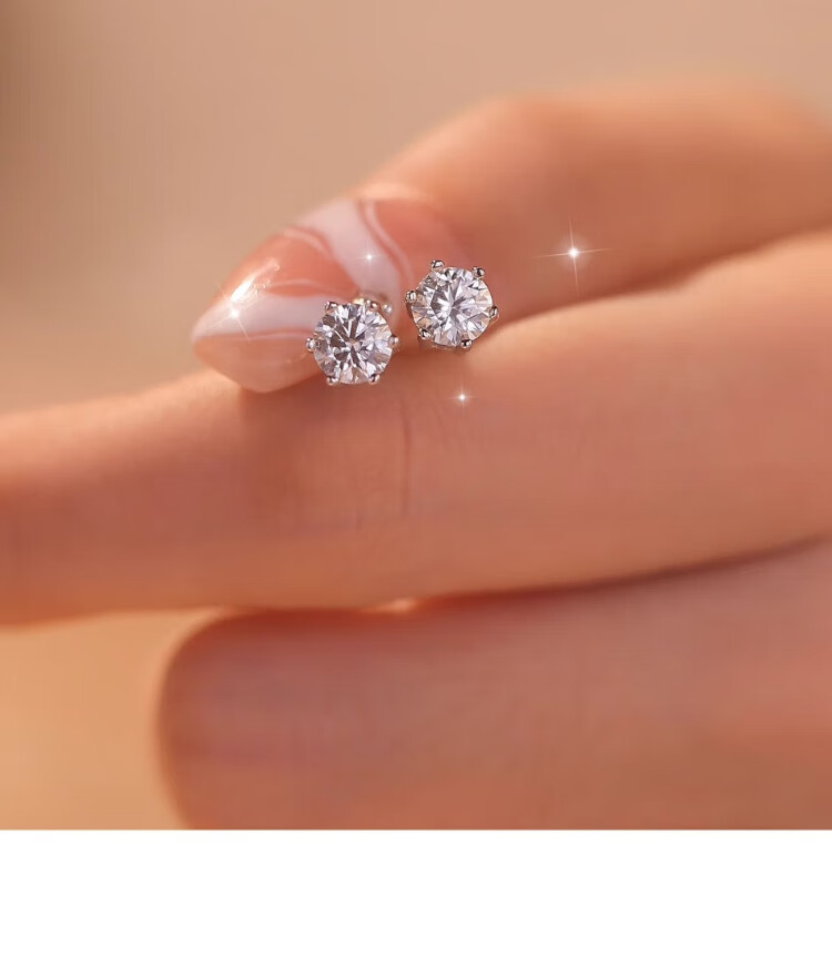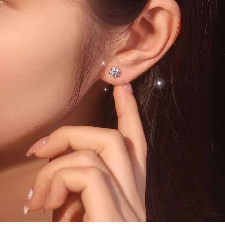 RHM platinum snowflake earrings for women, moissanite six-claw platinum earrings, high-end birthday and Valentine's Day gifts for girlfriend, platinum moissanite earrings + certificate + gift box, 50-point platinum moissanite earrings