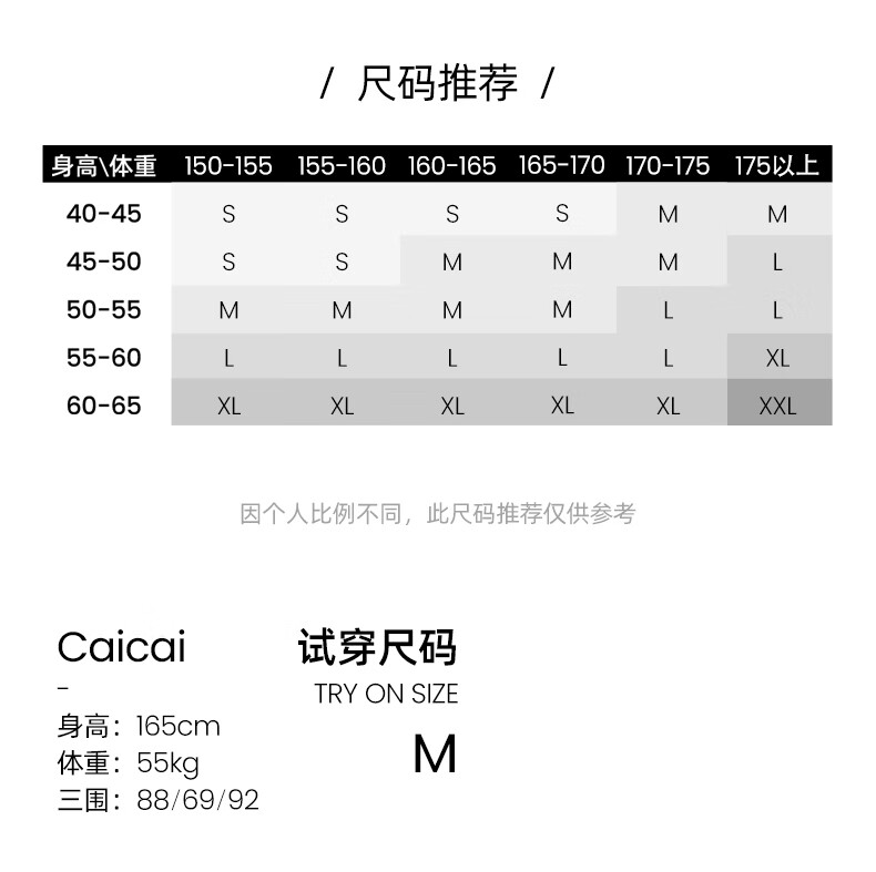 China (cm) 160-165/84-86 165-170 / 88-90 167-172 / 92-96 168-173 / 98-102 170-176 / 106-110