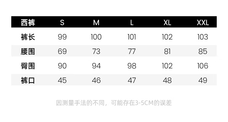 Outseam (cm) 99 cm 101.5 cm 104 cm 106.5 cm 109 cm