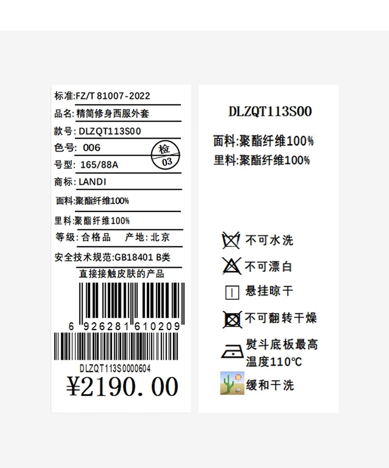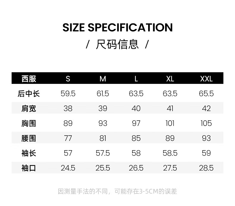 China (cm) 165 / 88-90 170 / 96-98 175 / 108-110 180 / 118-122 185 / 126-130