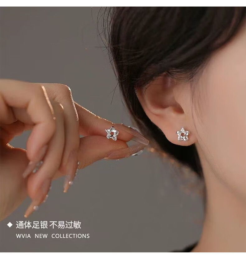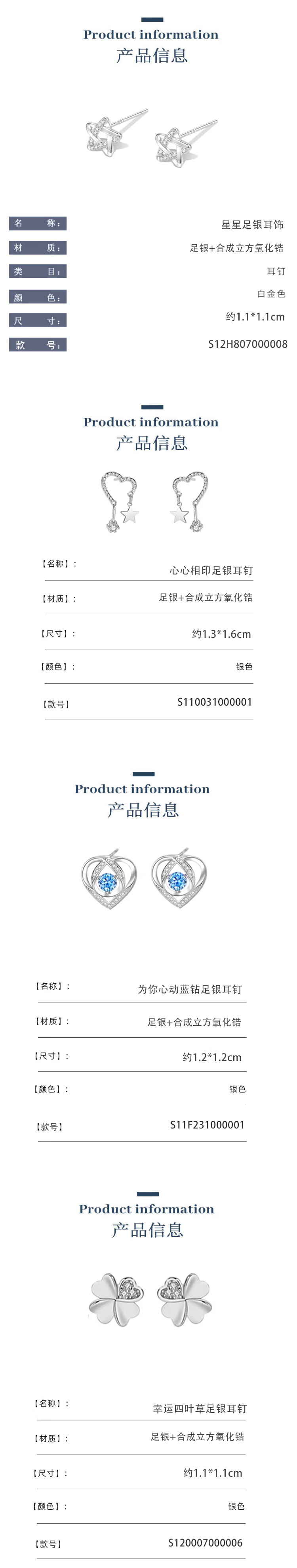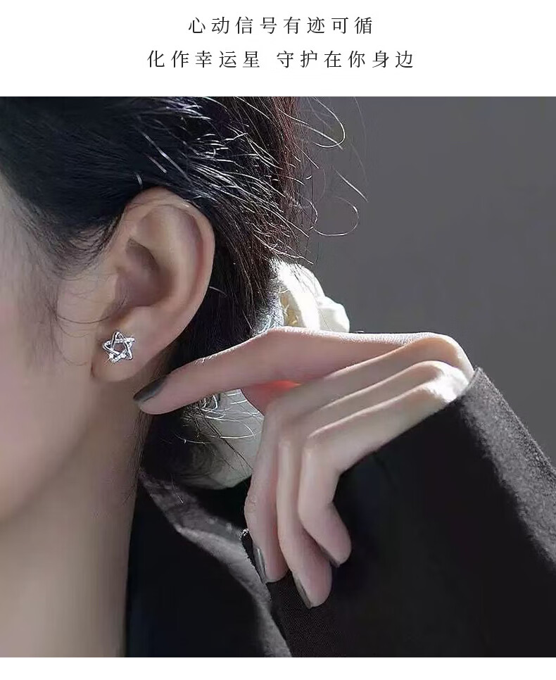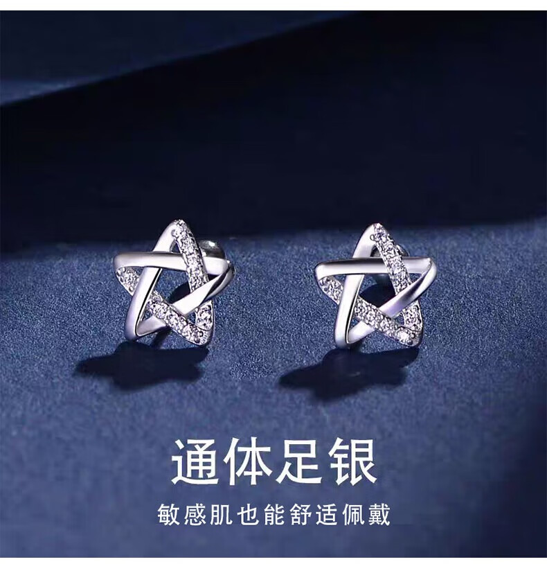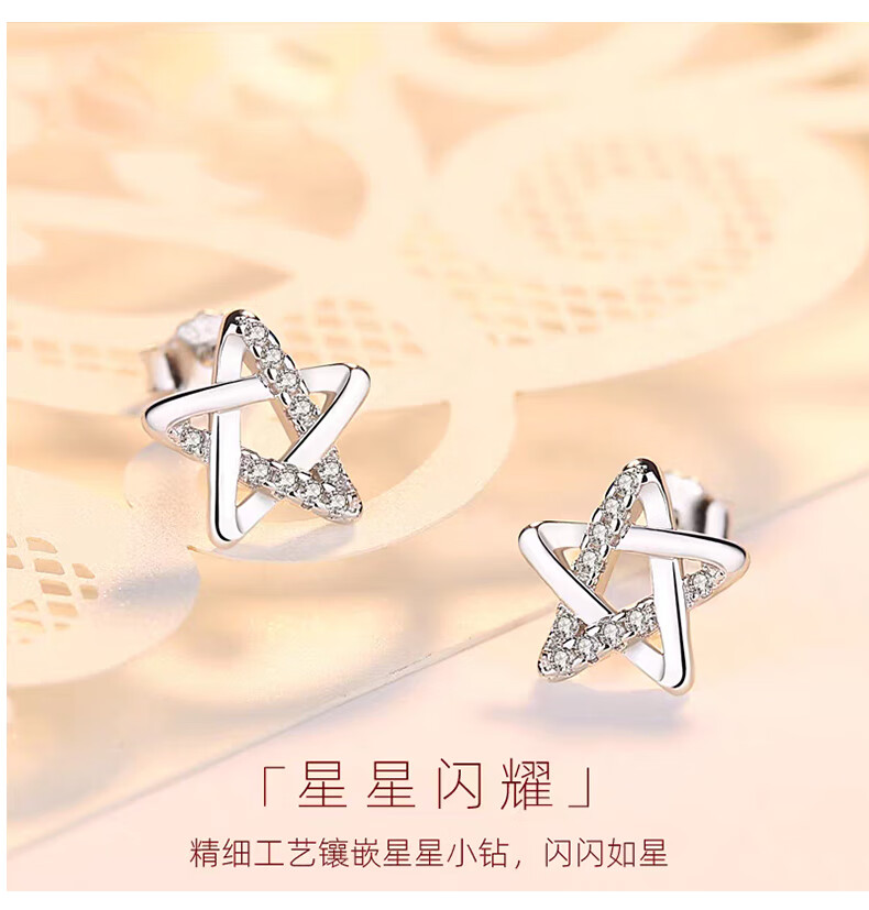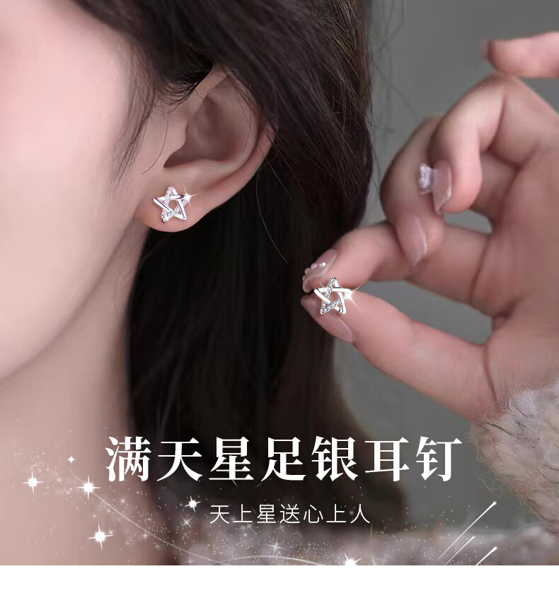 Lao Fengxiang earrings for women 99 sterling silver earrings 2025 new light luxury niche high-end girl birthday gift girlfriend L-EZ288 star pure silver earrings + certificate + gift box