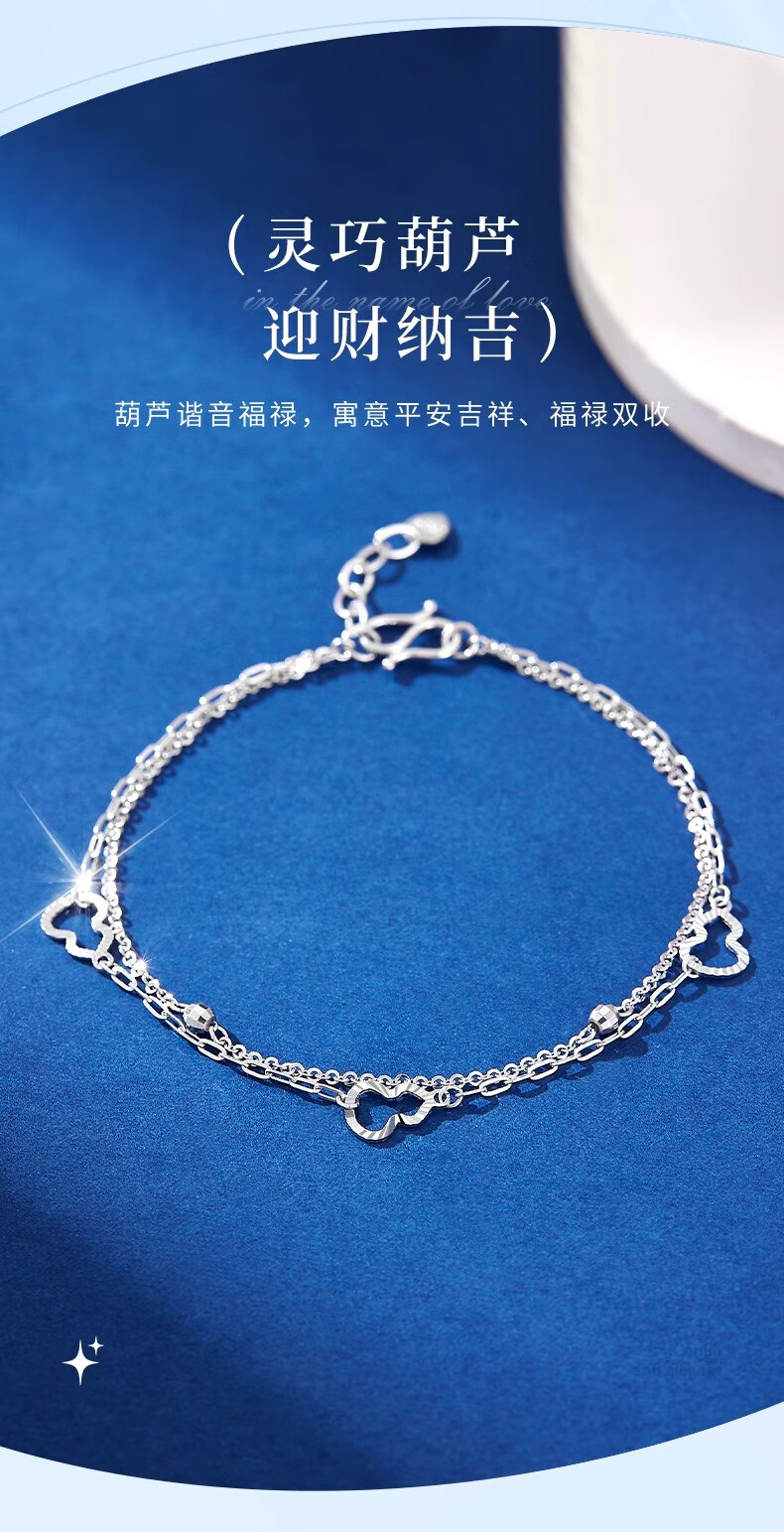 China Gold (CHINA GOLD) PT950 platinum double-layer gourd bracelet, fashionable women's platinum lover's birthday gift, Year of the Horse, zodiac year gift, platinum double-layer gourd bracelet, about 3g