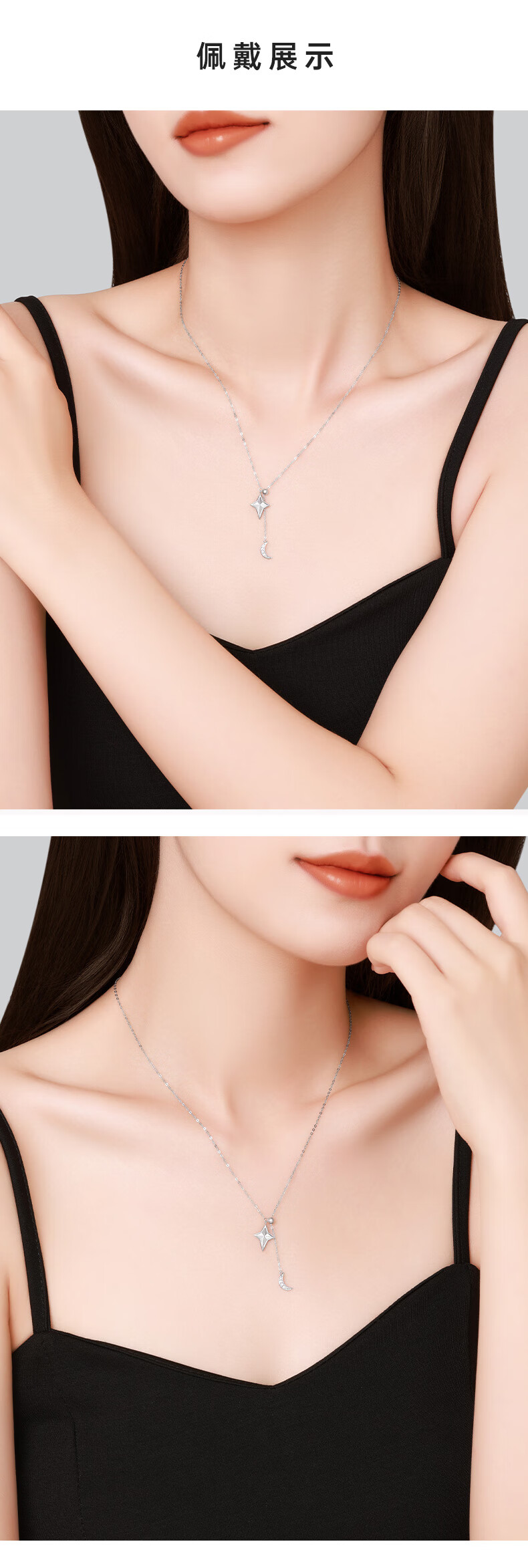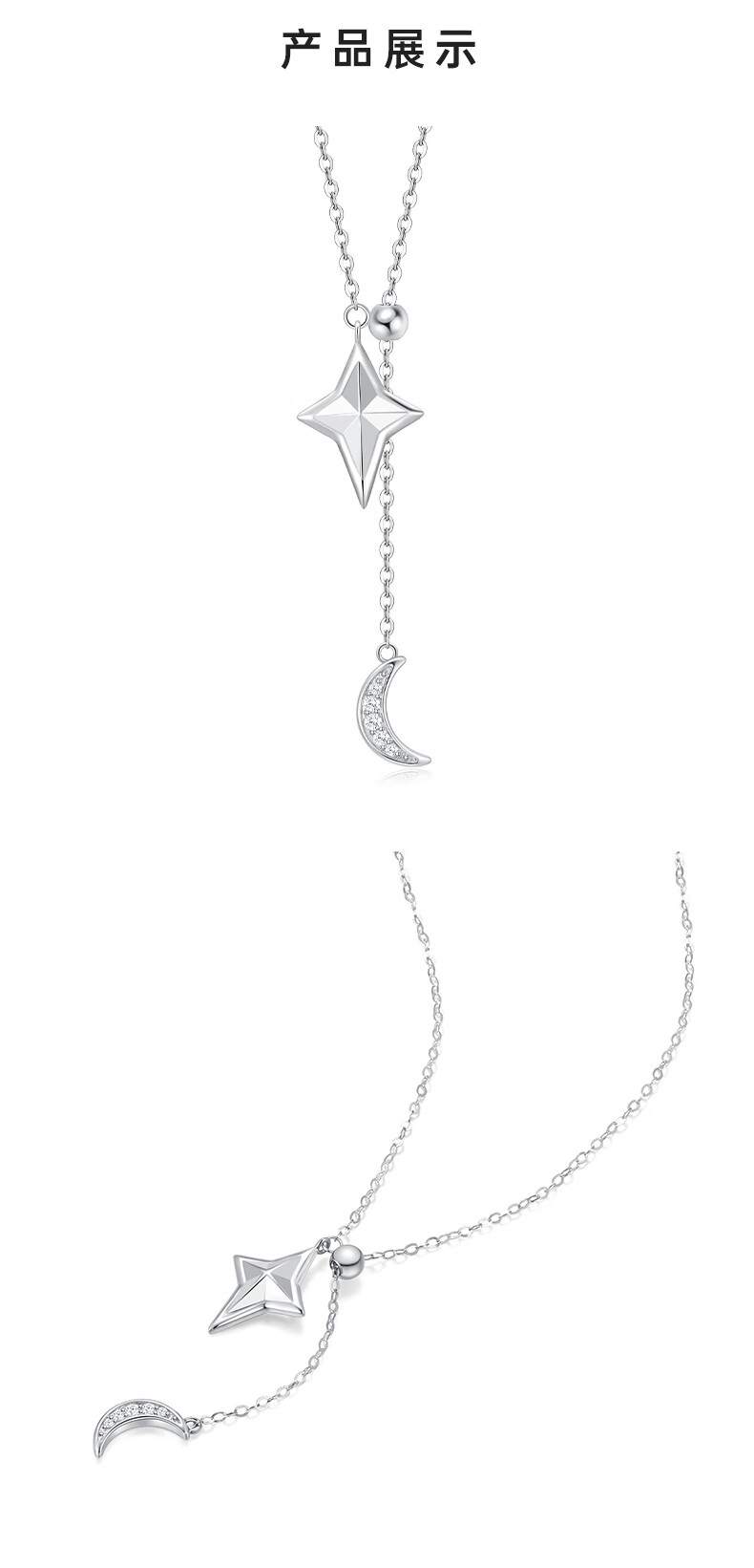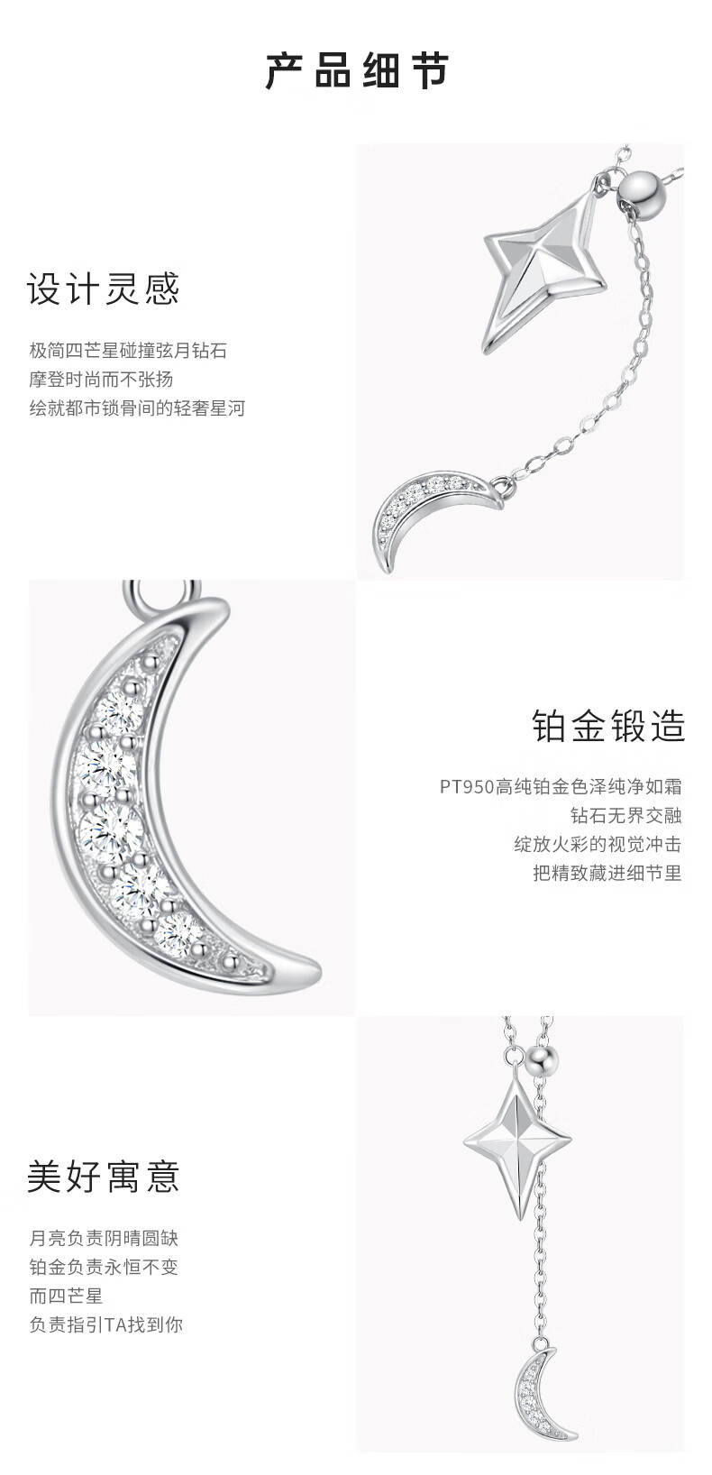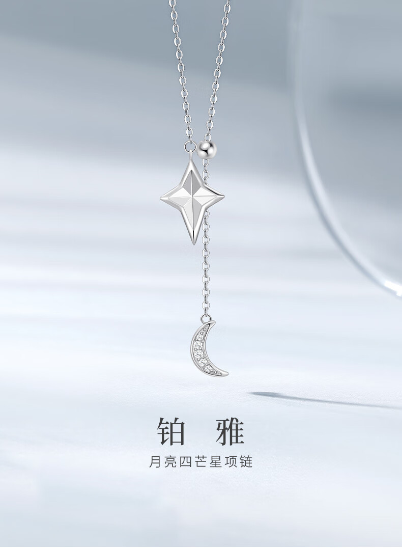 Chao Acer Platinum Diamond Necklace for Women PT950 Neck Accessory Set Chain Pendant Moon Four Pointed Star as a Birthday Gift for Girlfriend Chain Length Approximately 45cm