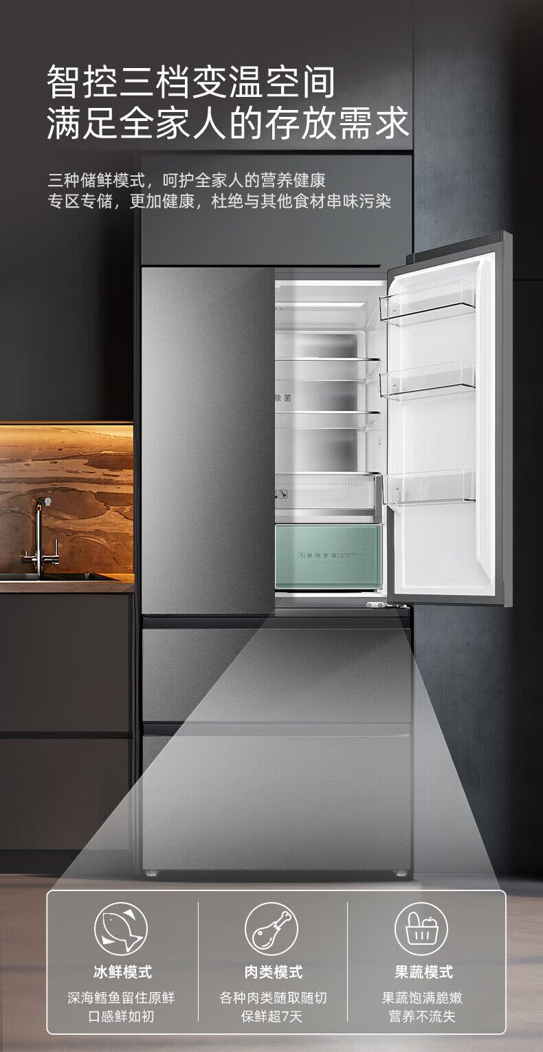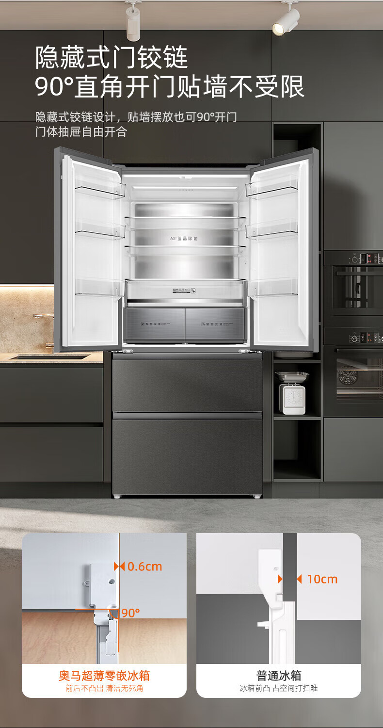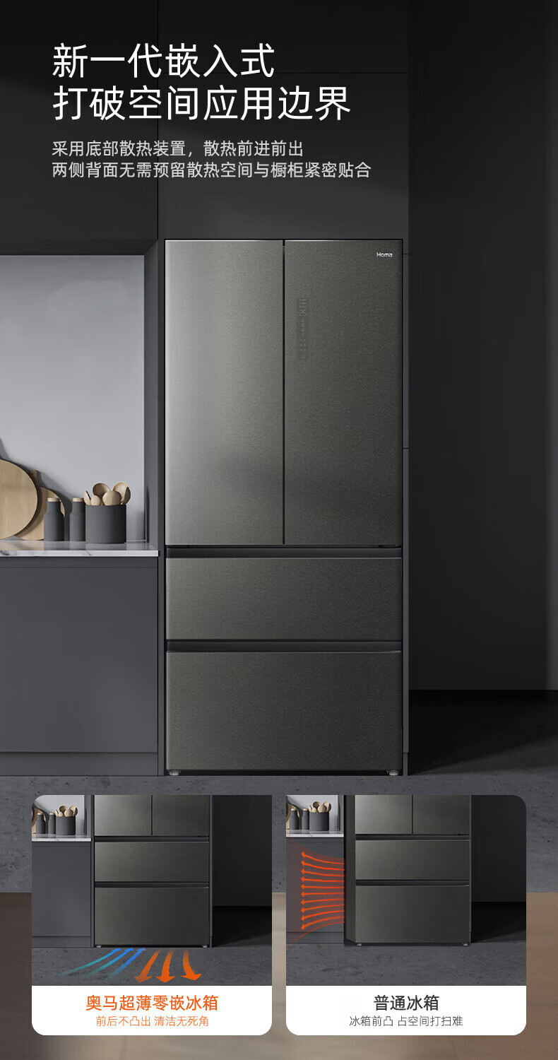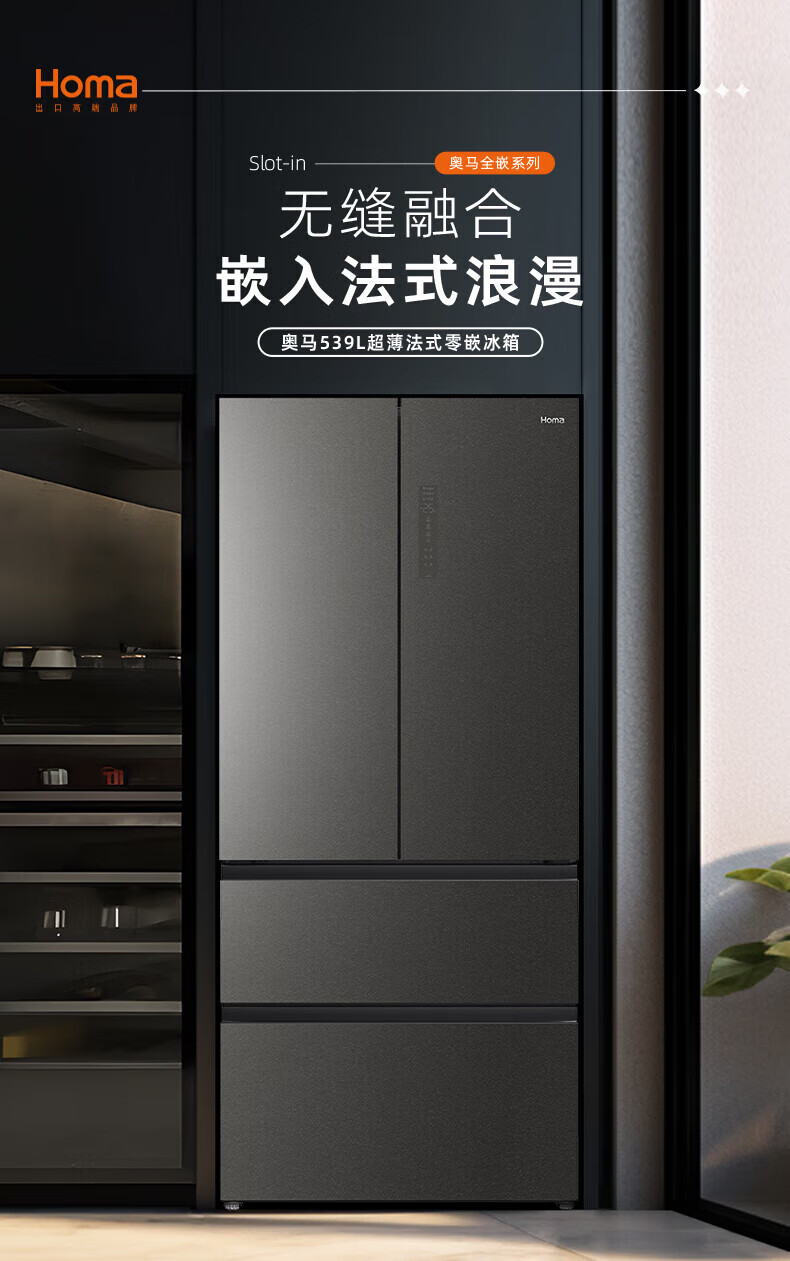 Homa 539 liter French multi-door zero-embedded refrigerator intelligent control moisturizing ultra-thin embedded frost-free refrigerator deep cooling quick freezing-40 standard