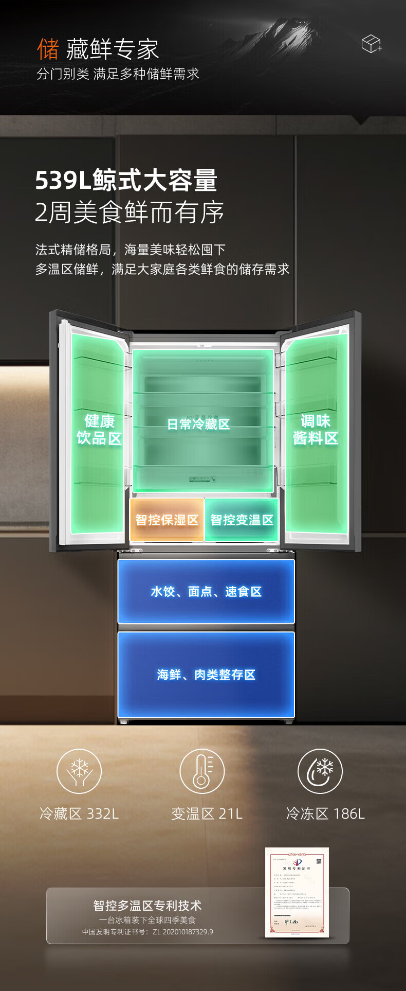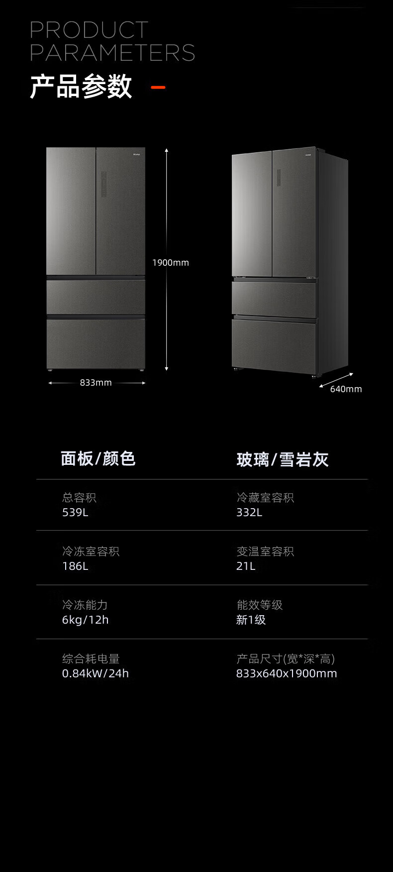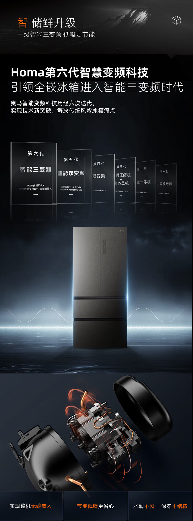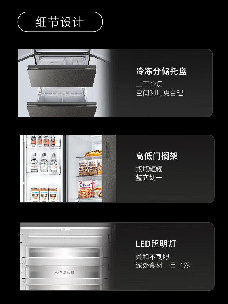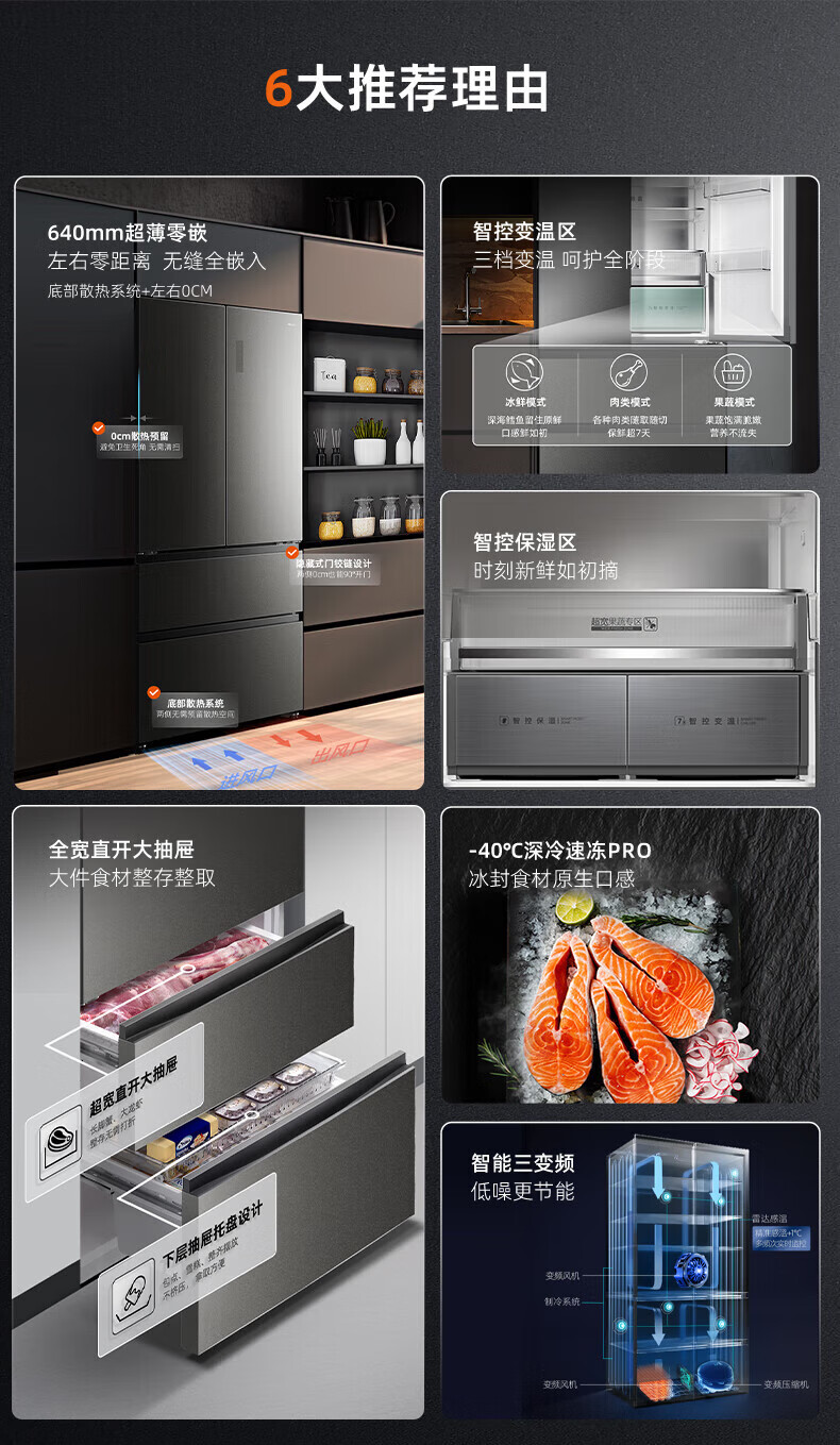 Homa 539 liter French multi-door zero-embedded refrigerator intelligent control moisturizing ultra-thin embedded frost-free refrigerator deep cooling quick freezing-40 standard