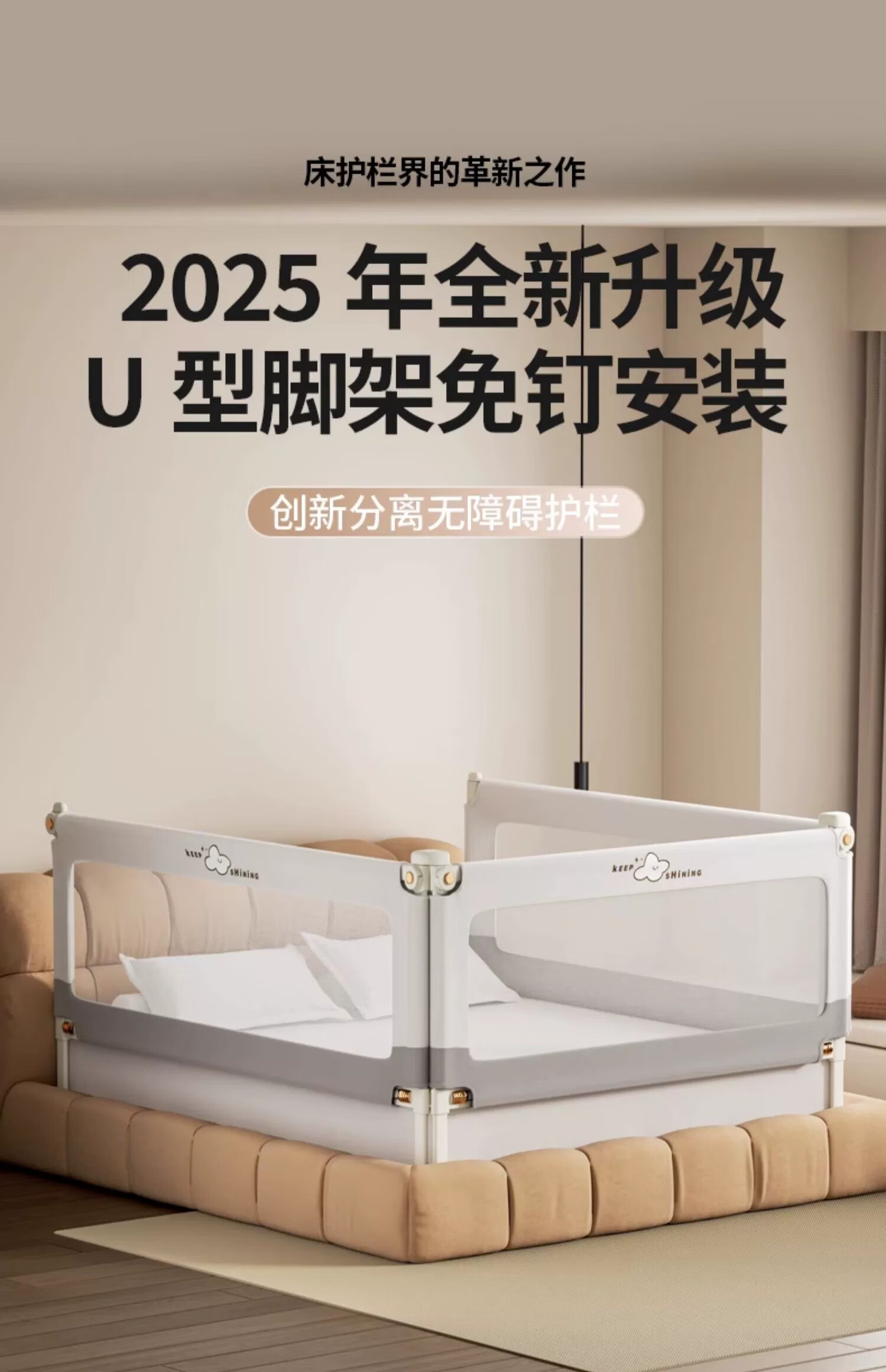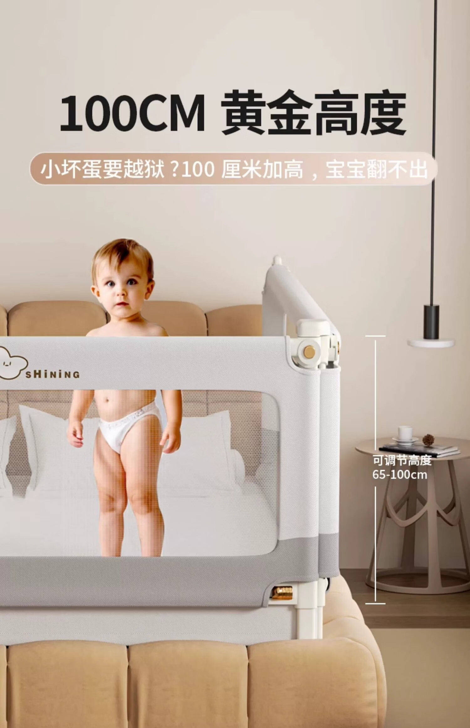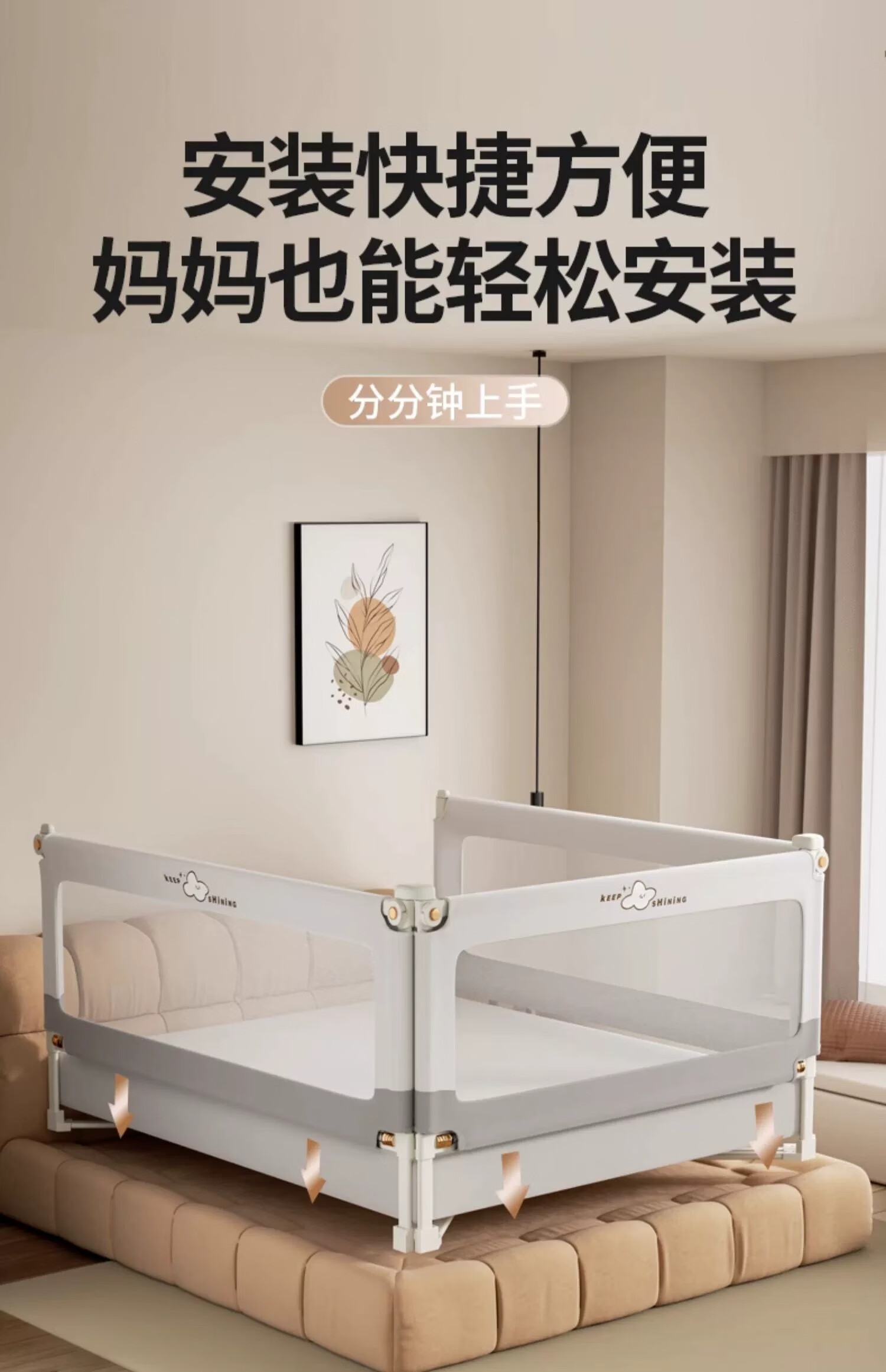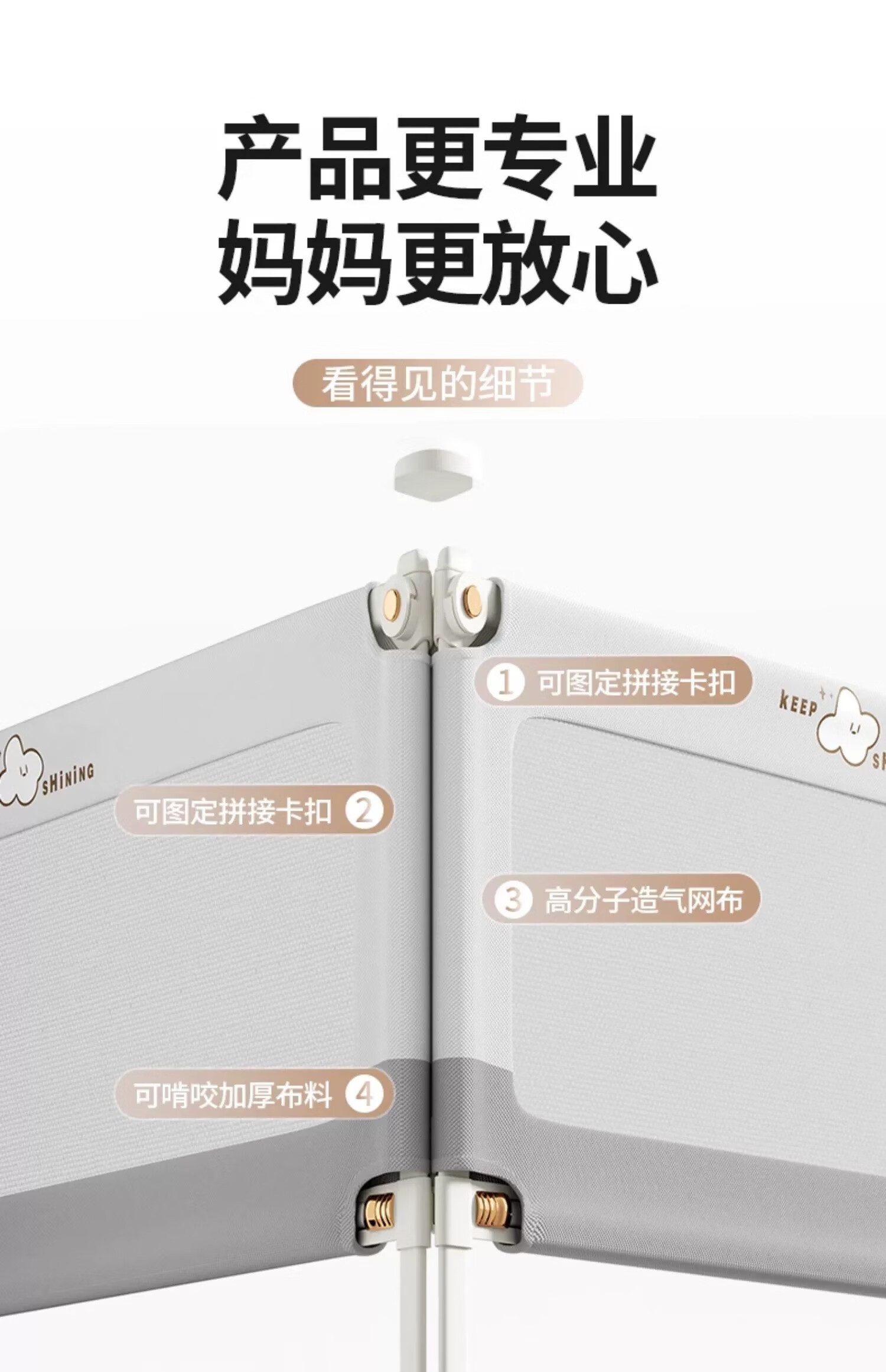 Suzzt bed fence baby bed guardrail baby bedside anti-fall bed guardrail three-sided splicing anti-pinch anti-fall bed fence 1.8+2.0+ 2m three-sided fixator