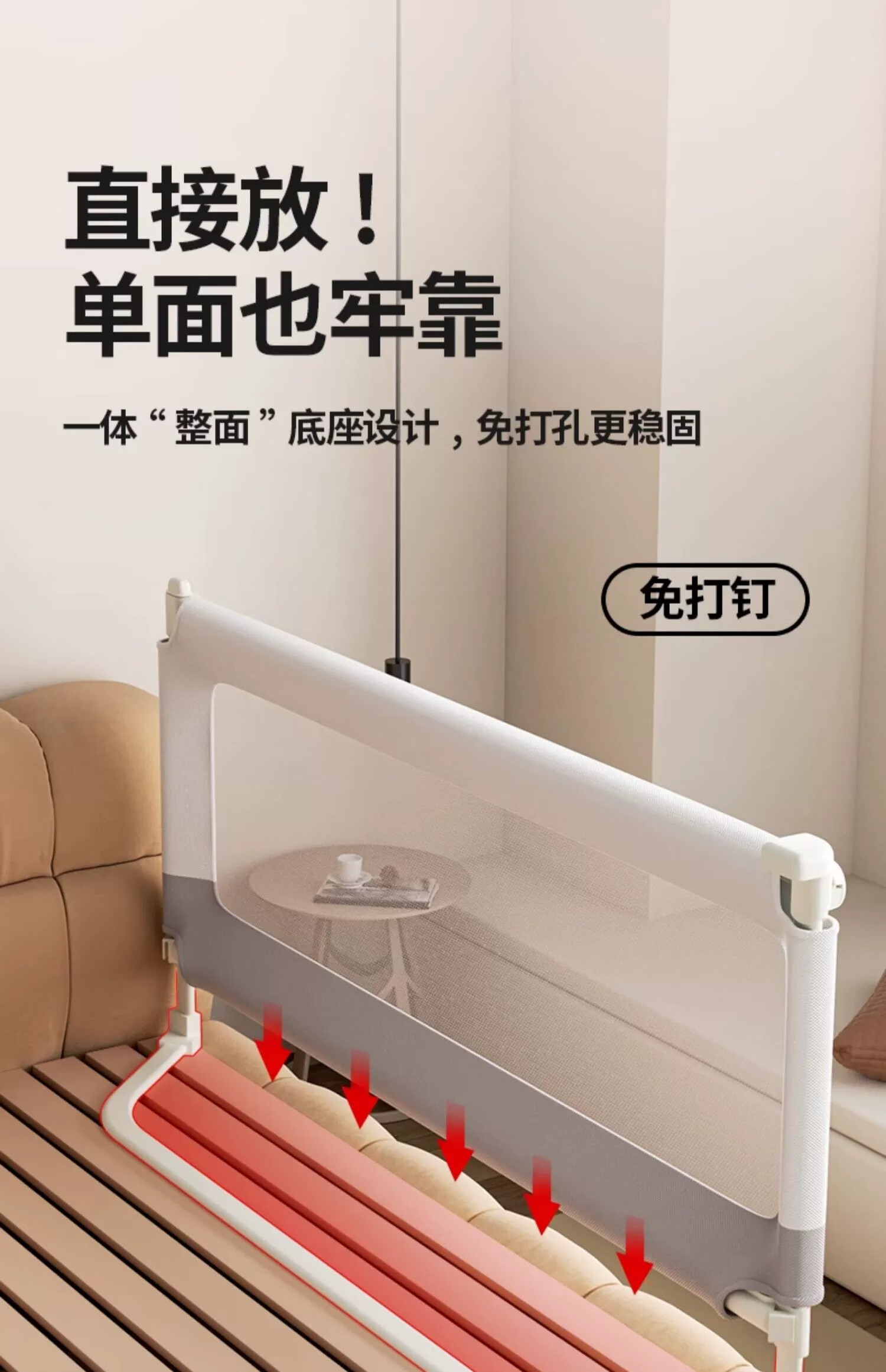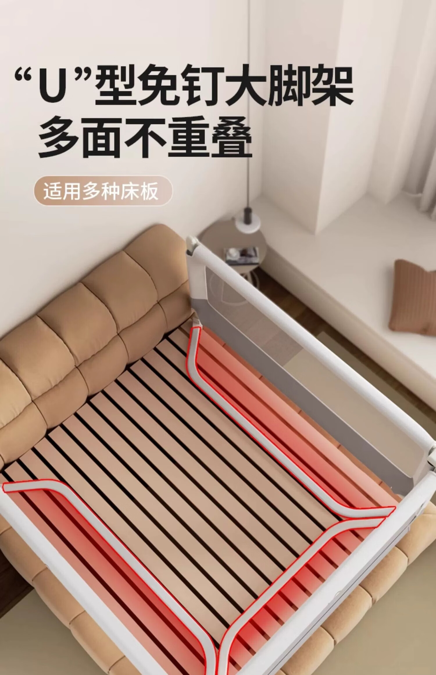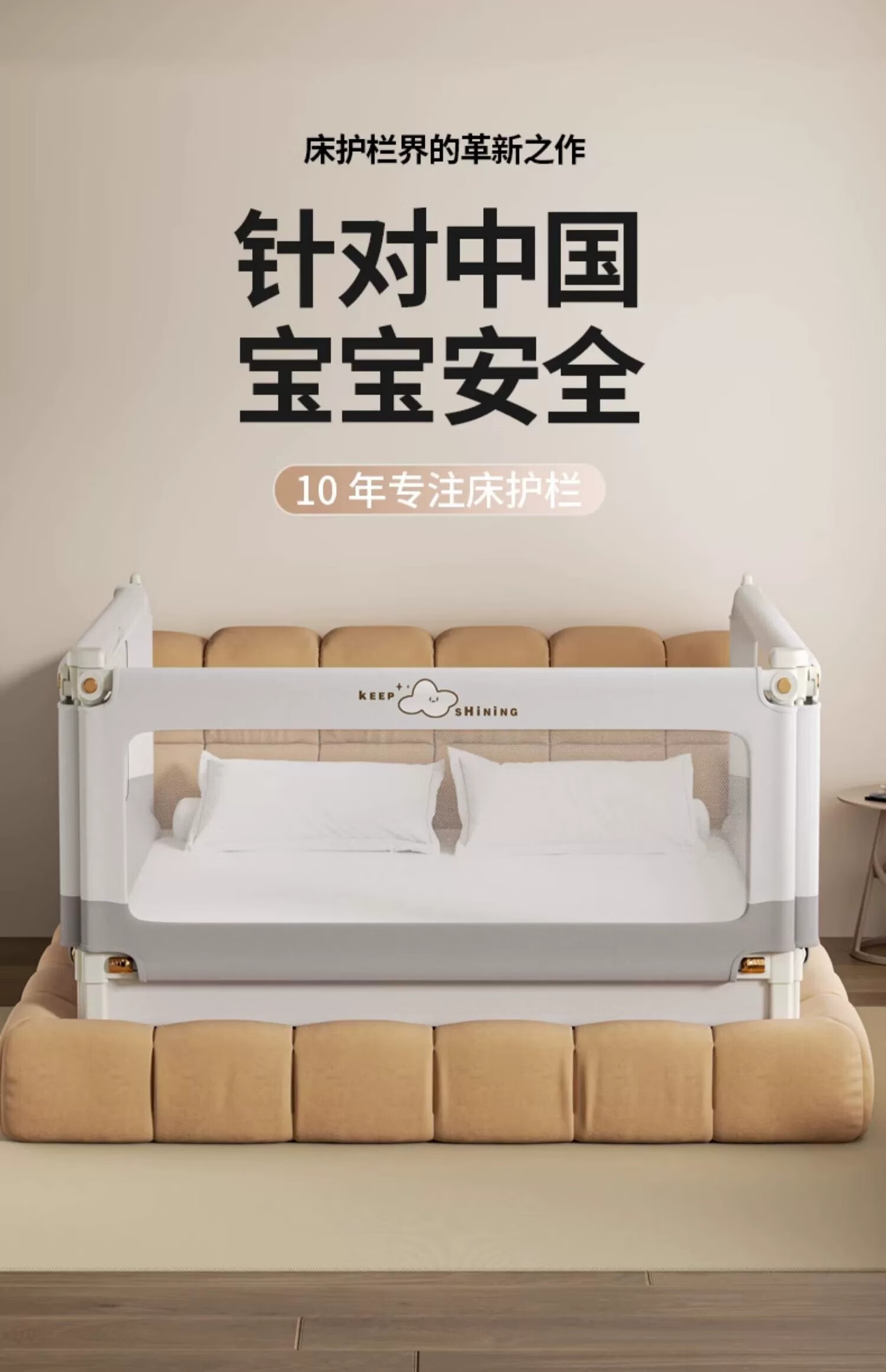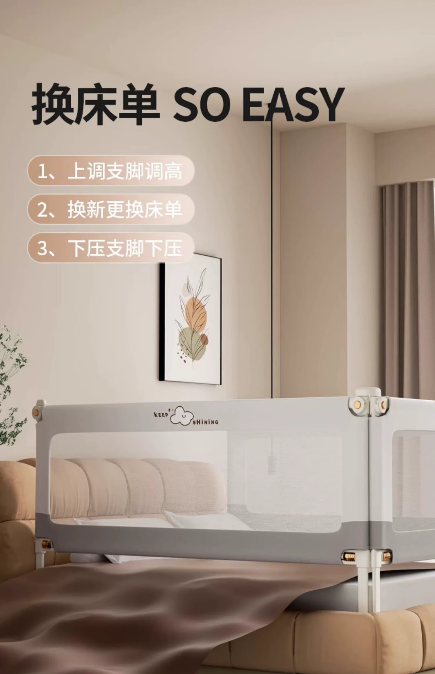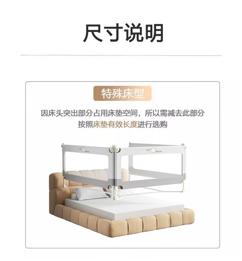 Suzzt bed fence baby bed guardrail baby bedside anti-fall bed guardrail three-sided splicing anti-pinch anti-fall bed fence 1.8+2.0+ 2m three-sided fixator