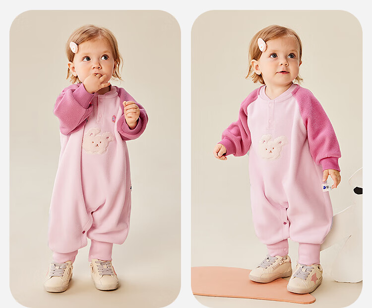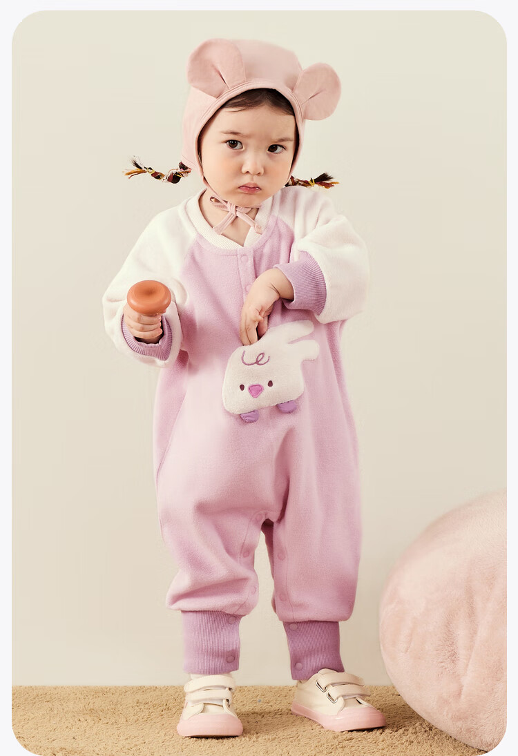 Mini Bala Antistatic Infant Plush Outing Onesie Polar Fleece Can Be Weared Outside Baby Clothes 2025 Autumn New Style Pink Bunny Antistatic More Comfortable 90cm