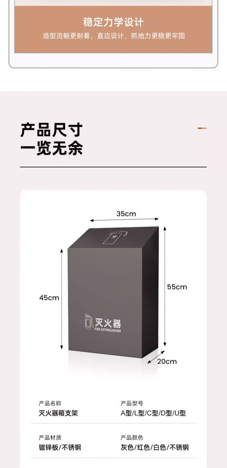 High-end painted fire extinguisher bracket stainless steel fire extinguisher box 2 pieces 4kg 5kg shopping mall high-end hotel special placement rack L-shaped metal bracket box丨White