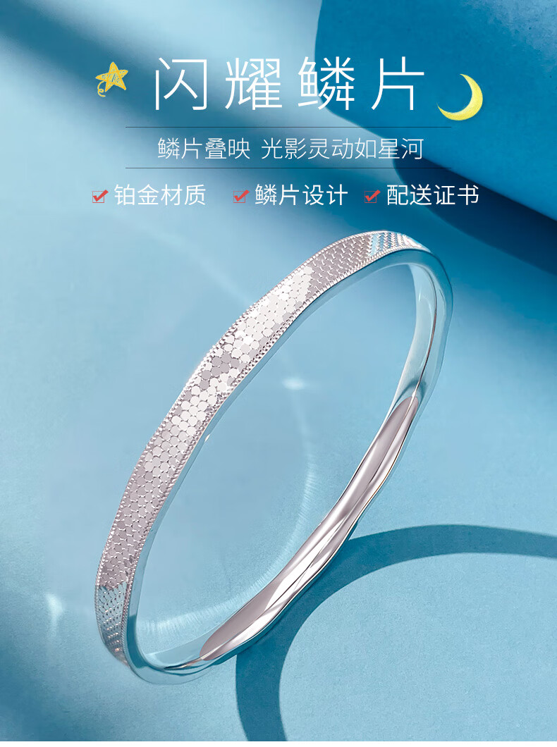 COISE platinum pt950 bracelet for women high-end crushed ice bracelet ins solid platinum bracelet birthday gift for wife and girlfriend sparkling scale platinum bracelet 54 rings