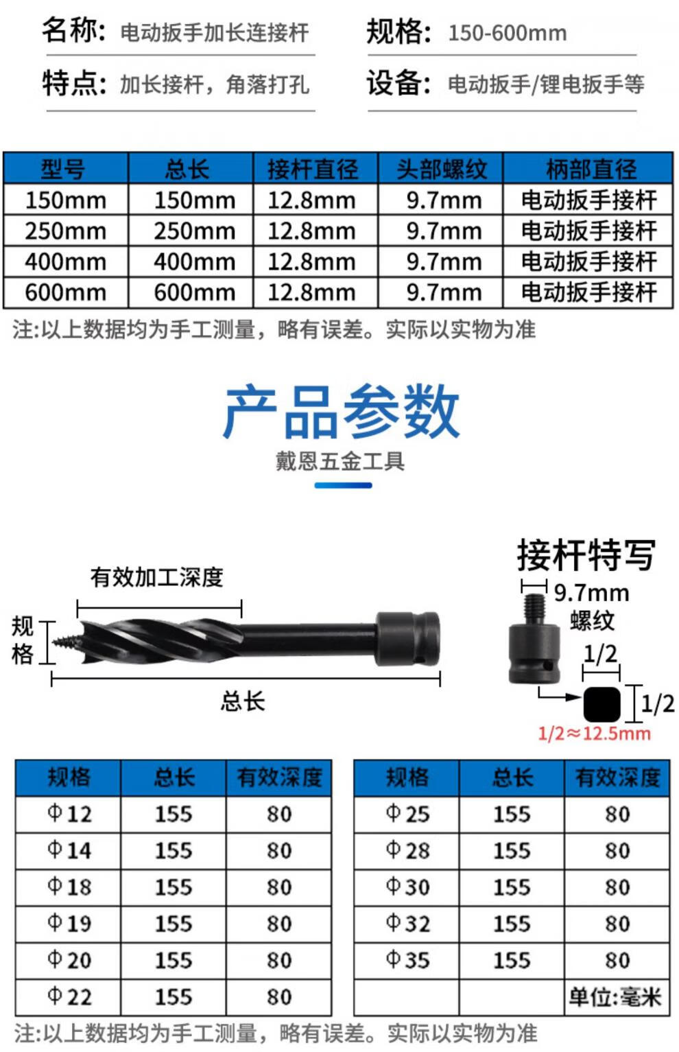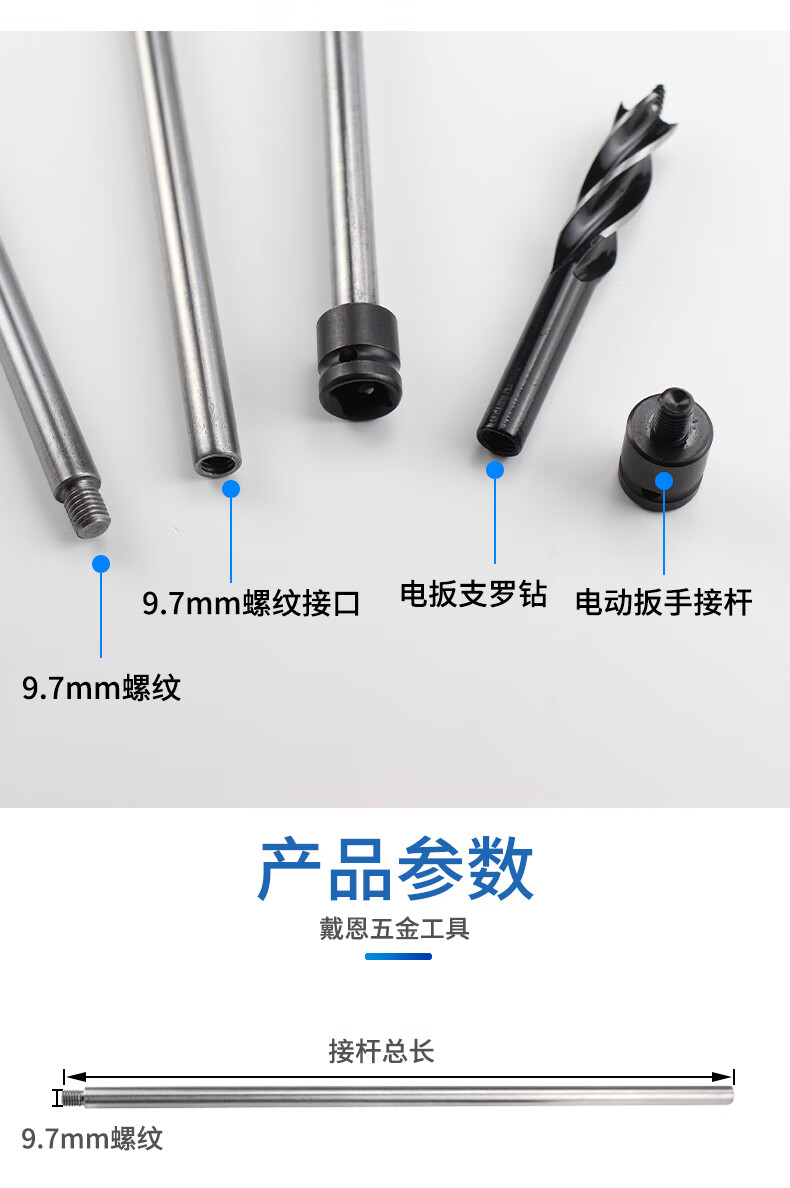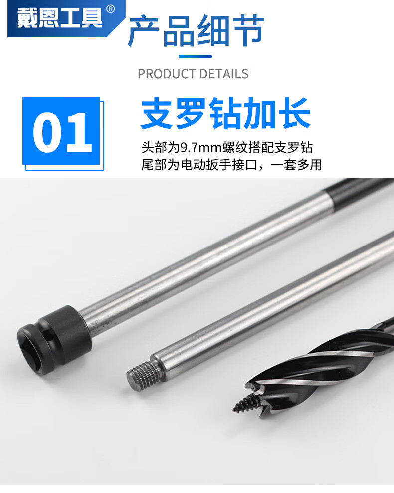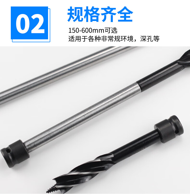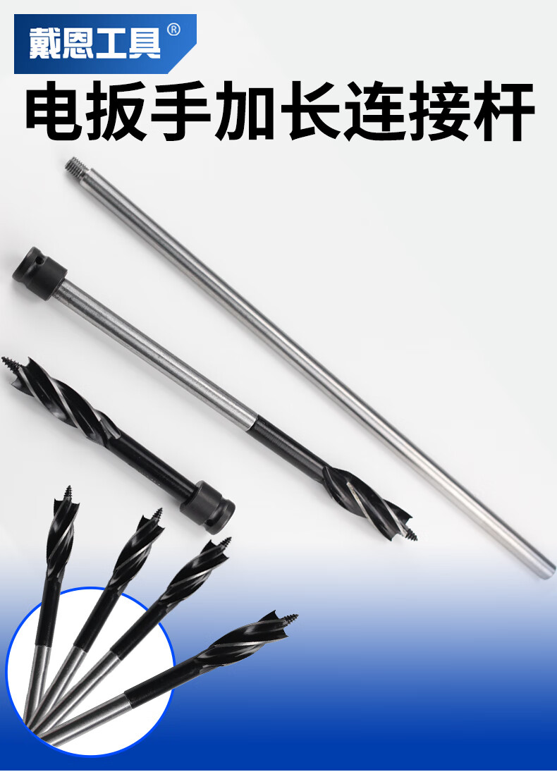 Kapuden electric wrench extension rod support drill four-edged four-slot woodworking drill bit twist drill hole opener rod wood board drilling 150mm extension rod + 22mm drill bit