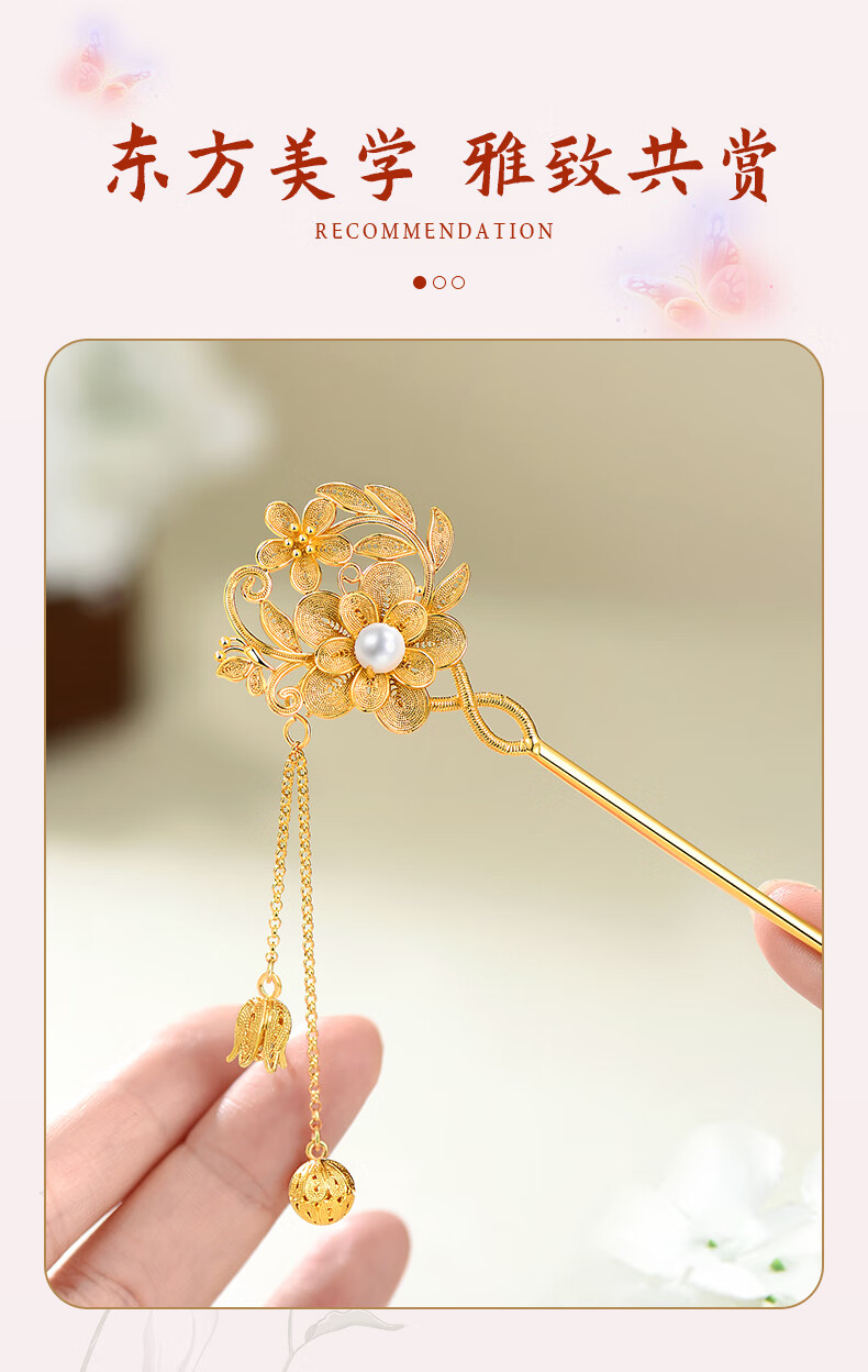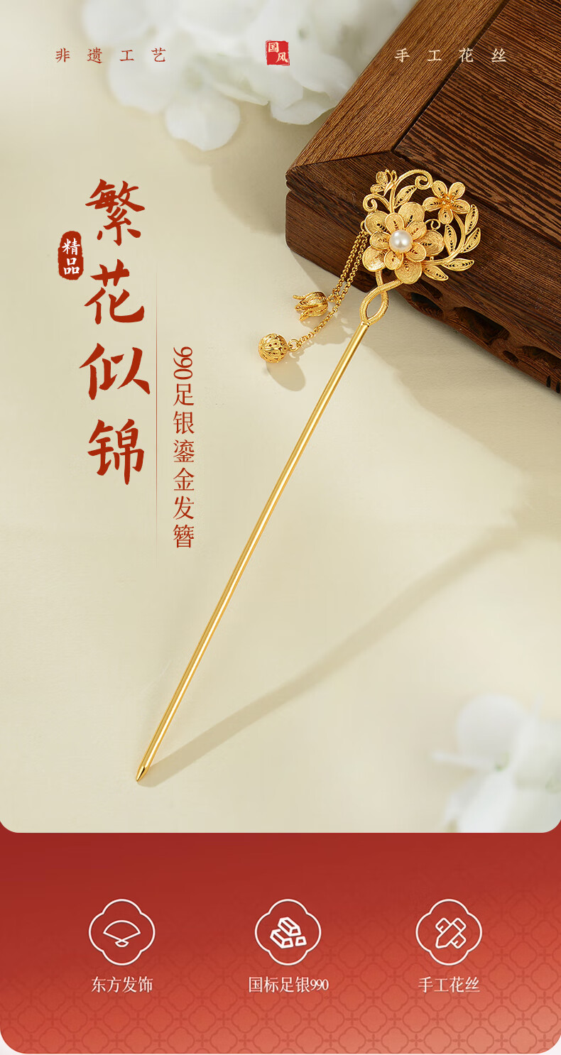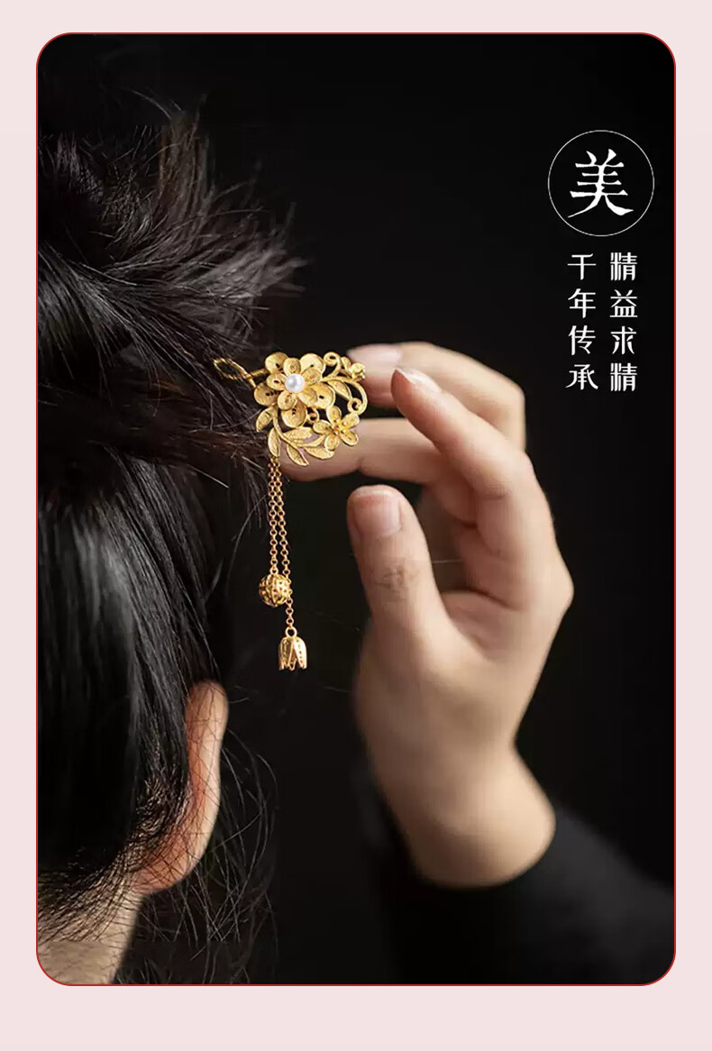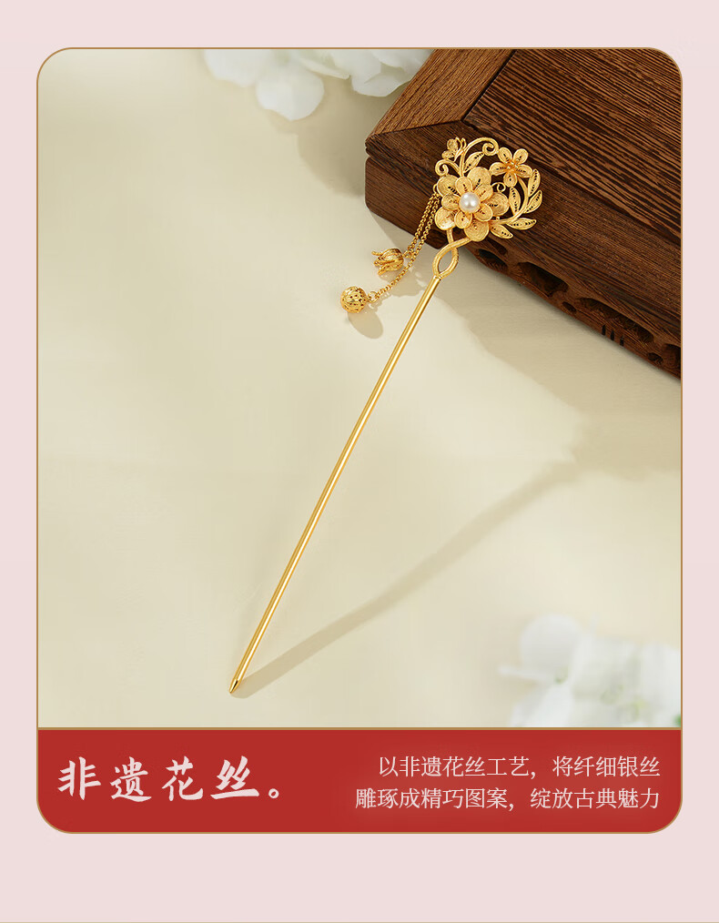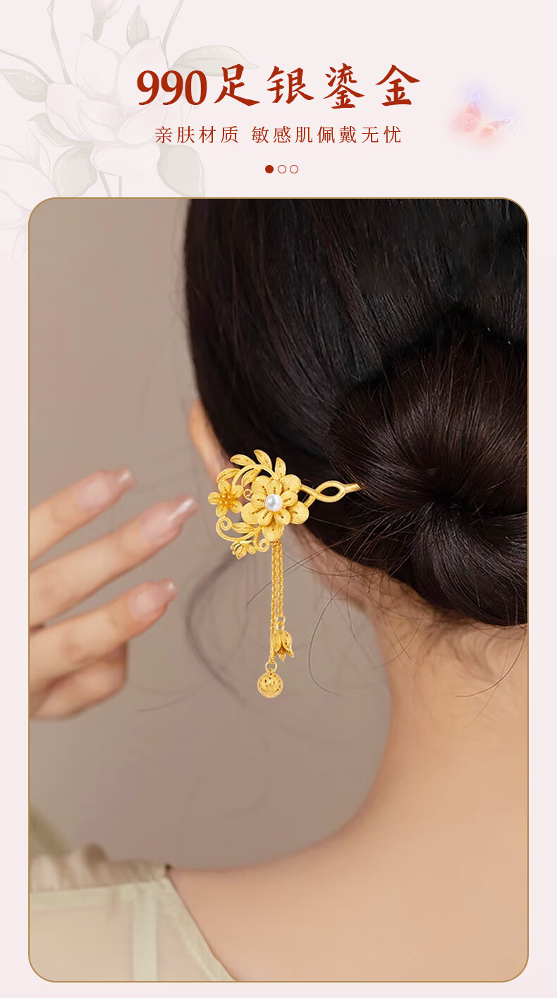 Lao Fengxiang Blossoms Silver Hairpin Ancient Style Hairpin Hairpin Step Shake New Chinese Style Ladies Birthday Gift Practical Blossoms Silver Hairpin