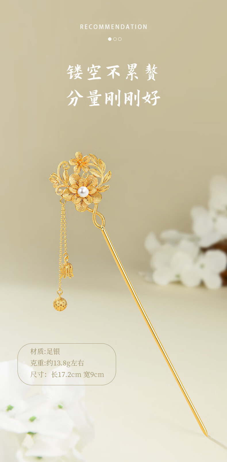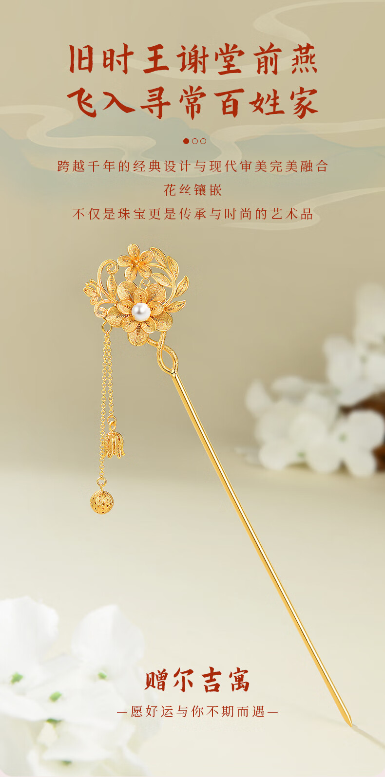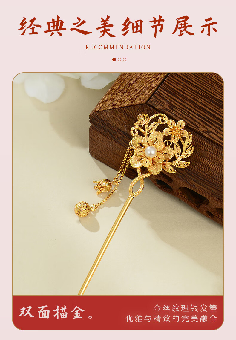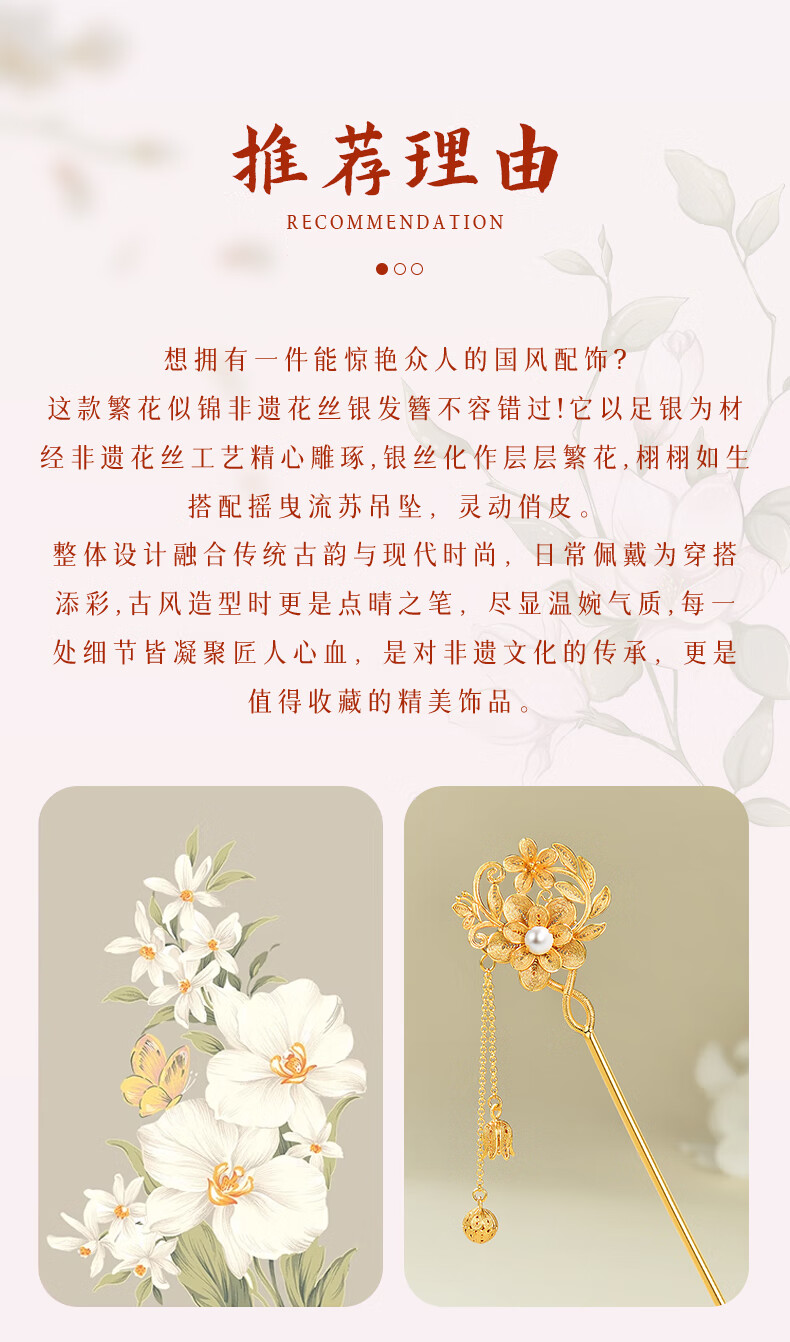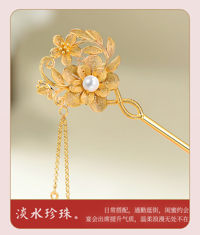 Lao Fengxiang Blossoms Silver Hairpin Ancient Style Hairpin Hairpin Step Shake New Chinese Style Ladies Birthday Gift Practical Blossoms Silver Hairpin