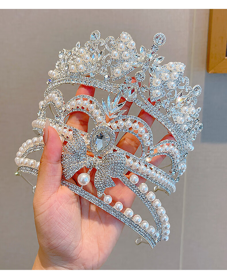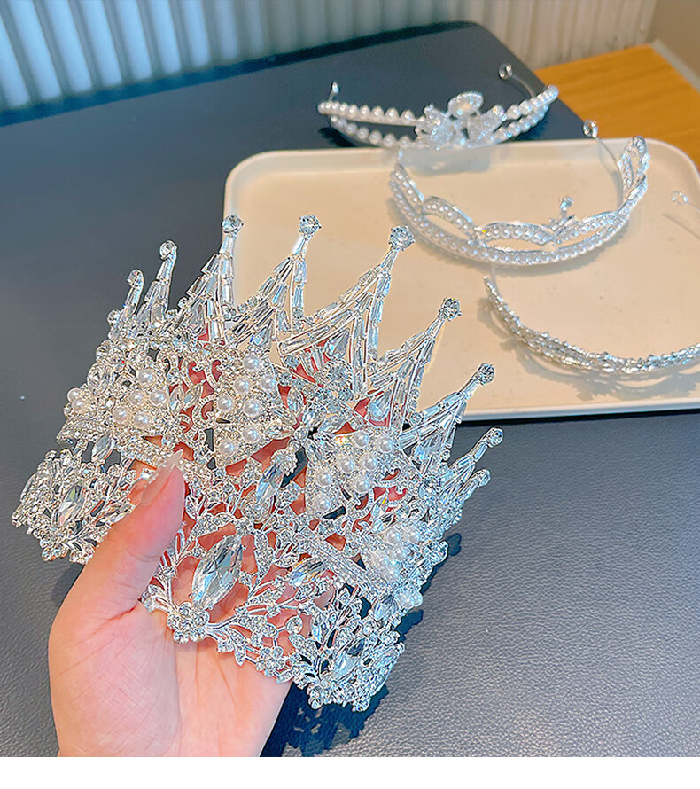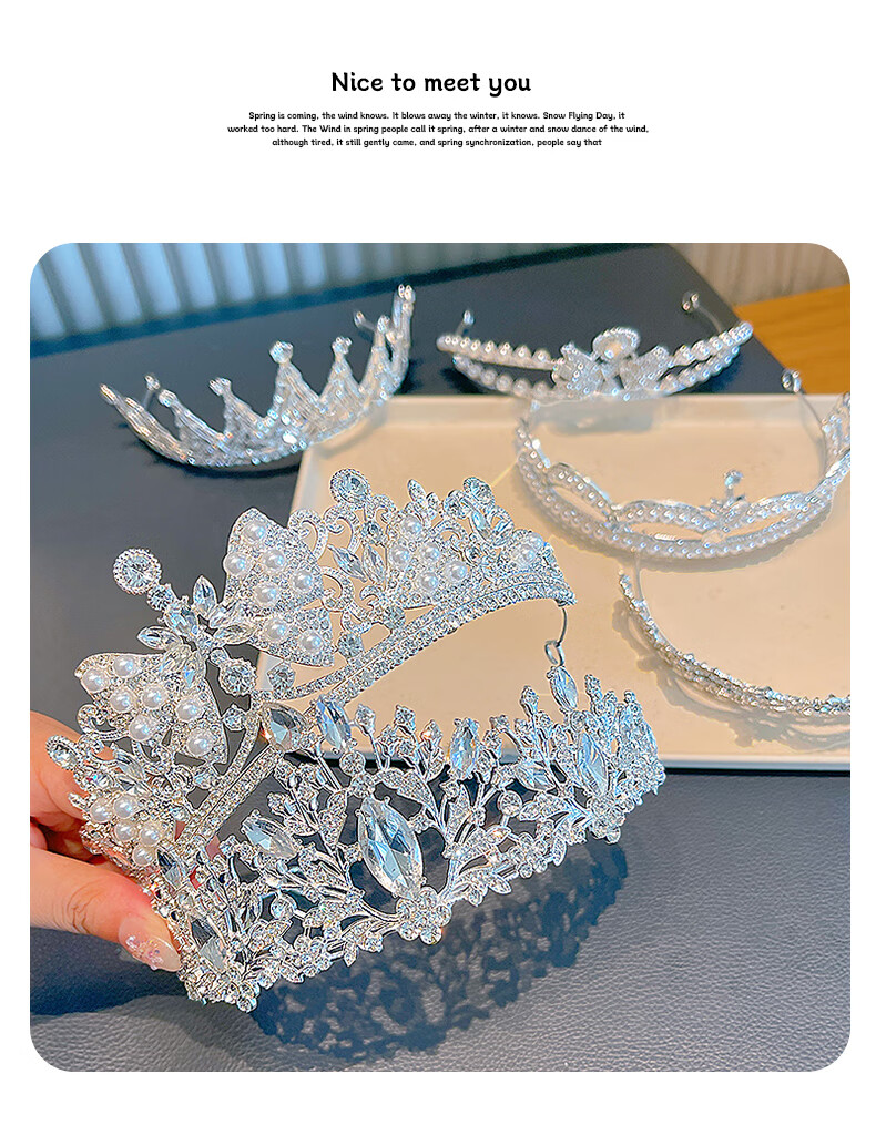 Queen Crown Headwear High-end Princess Children's Light Luxury Crystal Crown Birthday Gift Girls Dance Large Rhinestone Feather Crown Same Style for Little Princesses
