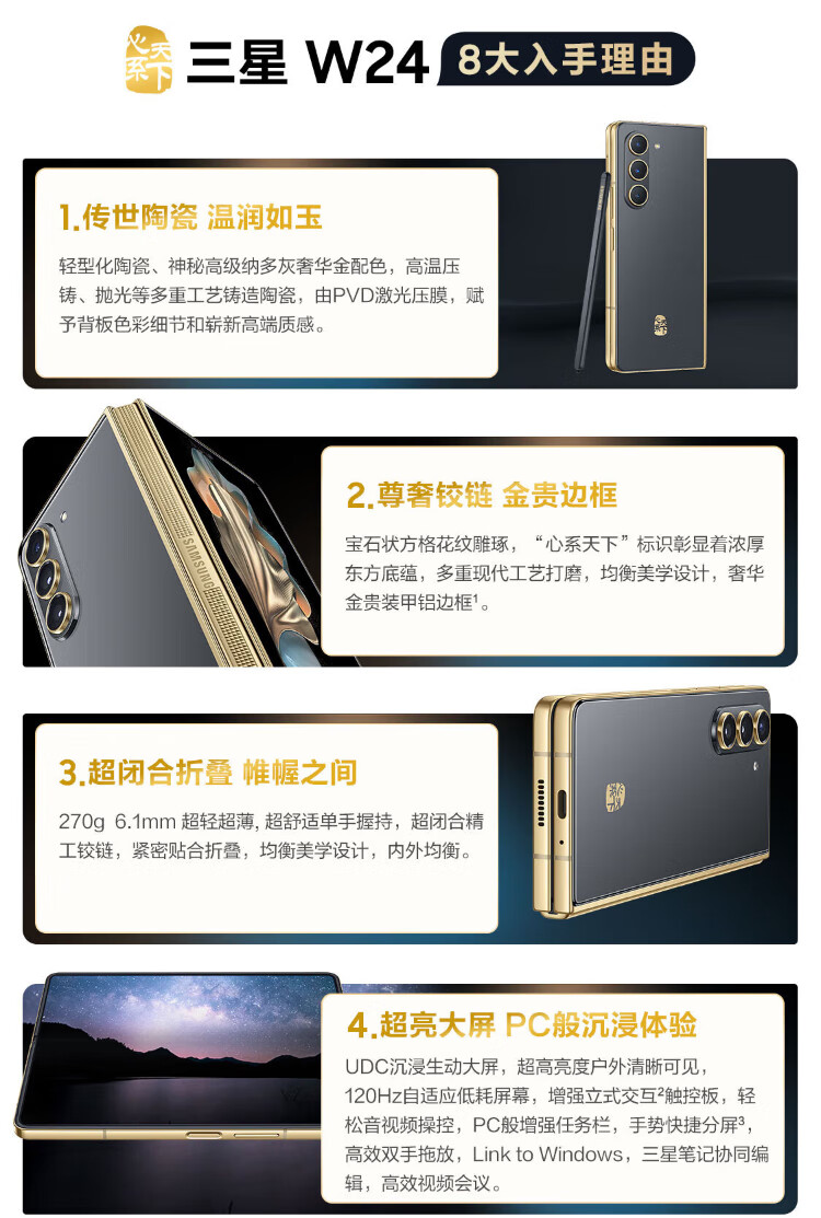 Samsung Heart of the World W24 Nado Gray with S Pen Ultra-closed Folding Luxurious Hinge Folding Screen Original Genuine 99 New Nado Gray 16+1TB 15 Tianji Customized Box Caseless Pen 95 New No Interest-free Direct Discount