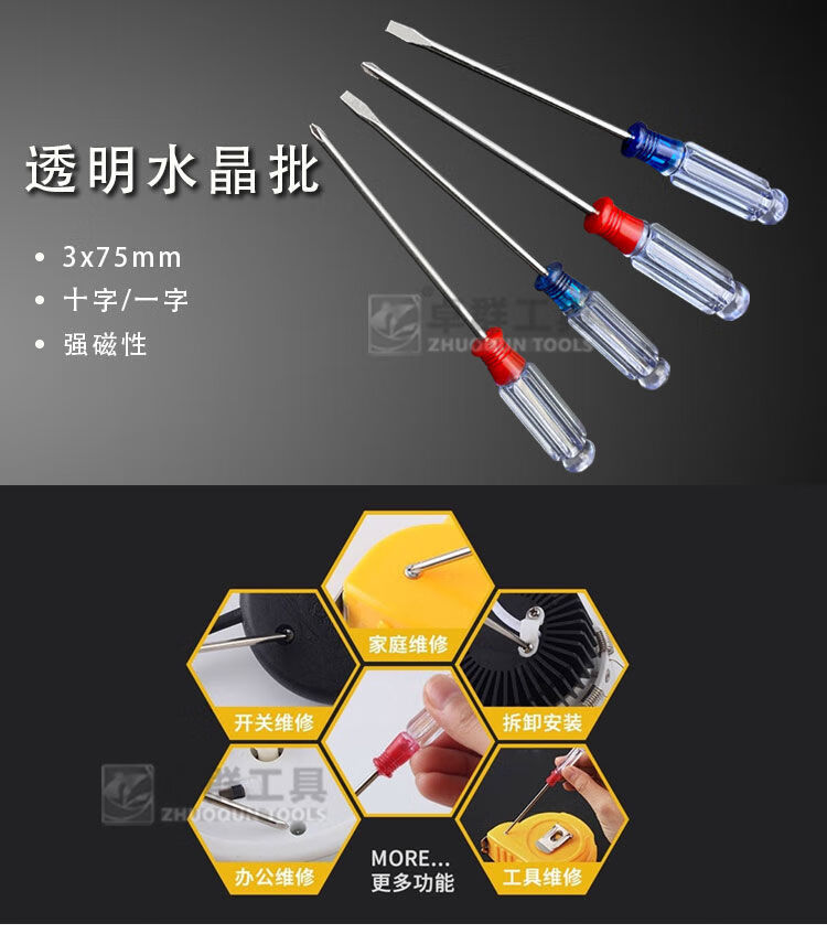 Strong magnetic crystal handle cross-shaped flat-blade screwdriver household mini sewing machine toy disassembly 3x75 small screwdriver, one cross-shaped screwdriver, a total of 2