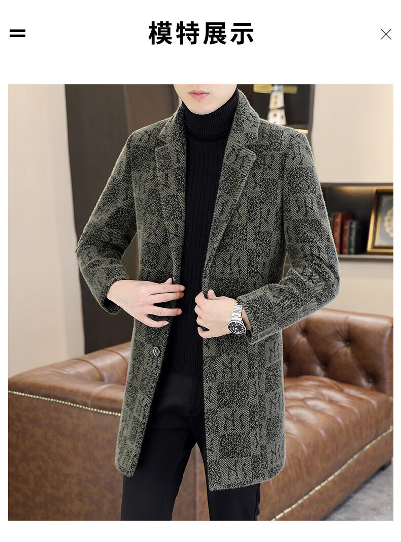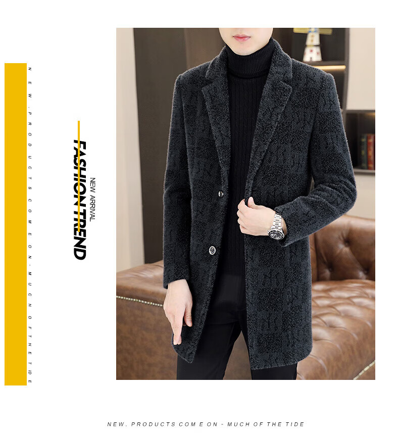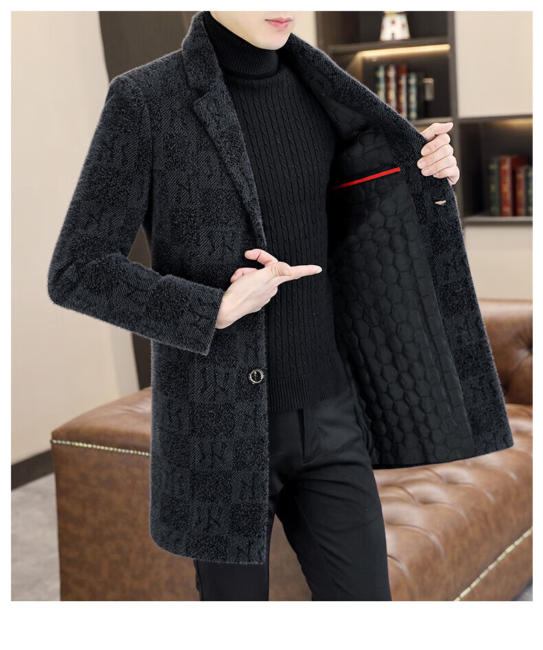 Playboy (PLAYBOY) mid-length woolen coat men's autumn and winter cotton thickened suit collar woolen windbreaker high-end gold mink velvet coat 730 black sense/counter quality 3XL 145-160Jin Jin is equal to 0.5 kg can be worn