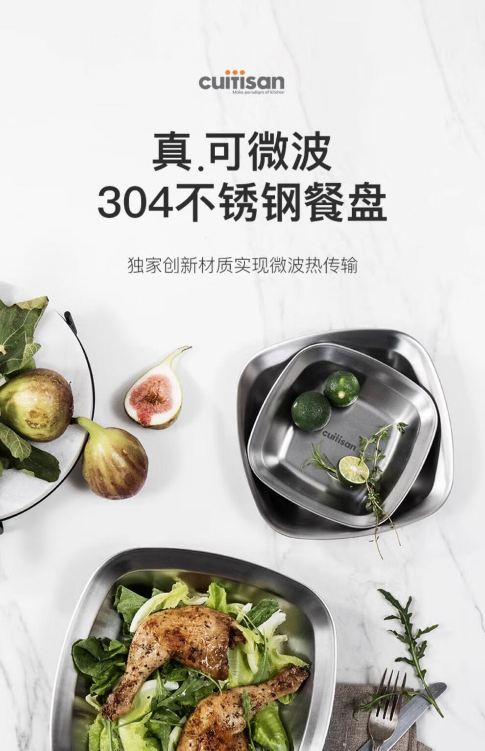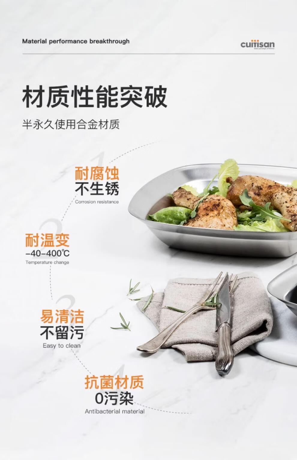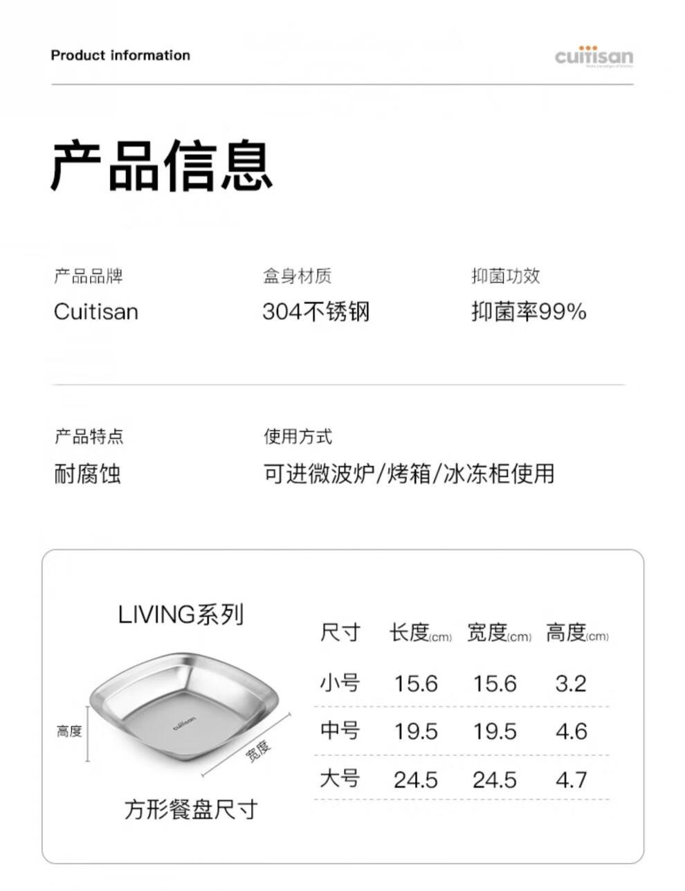 Cuitisan cool artist 304 food-grade stainless steel dinner plate household thickened fruit plate cold dish roasting microwaveable square dinner plate 3-piece set