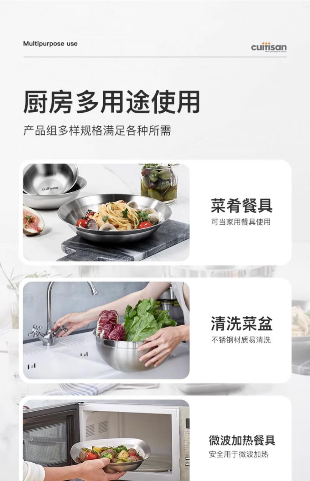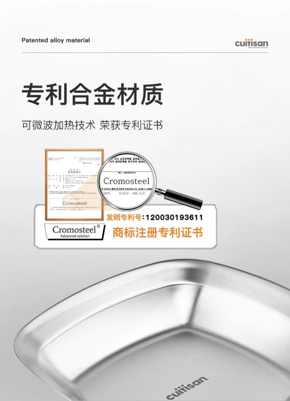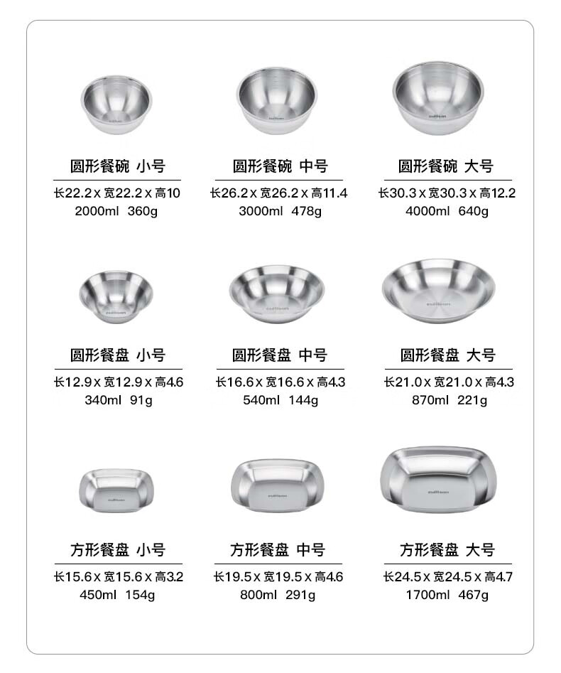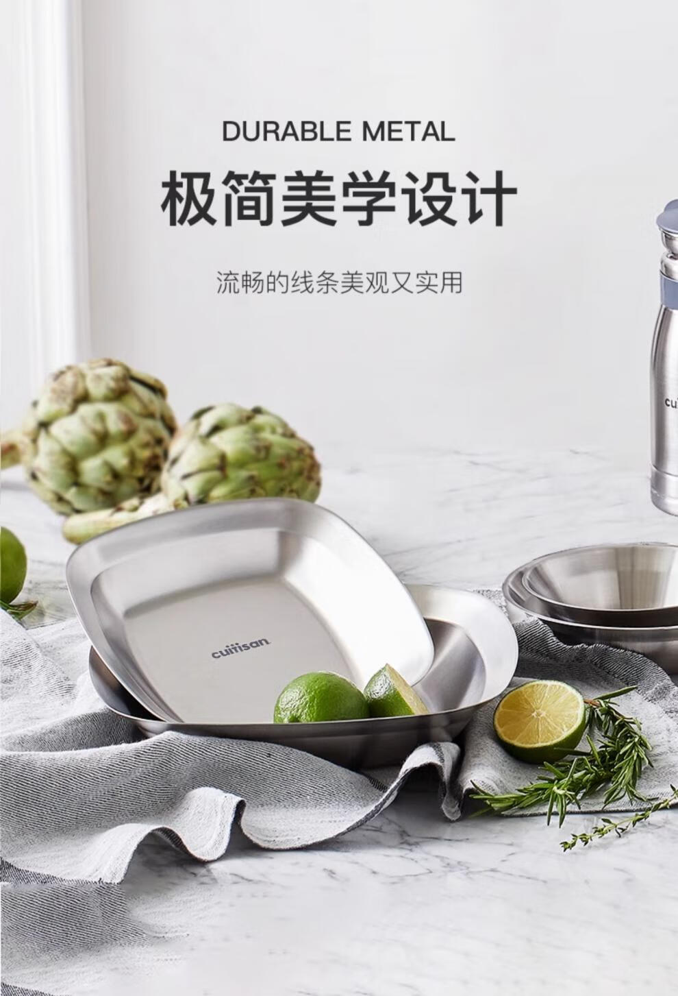 Cuitisan cool artist 304 food-grade stainless steel dinner plate household thickened fruit plate cold dish roasting microwaveable square dinner plate 3-piece set