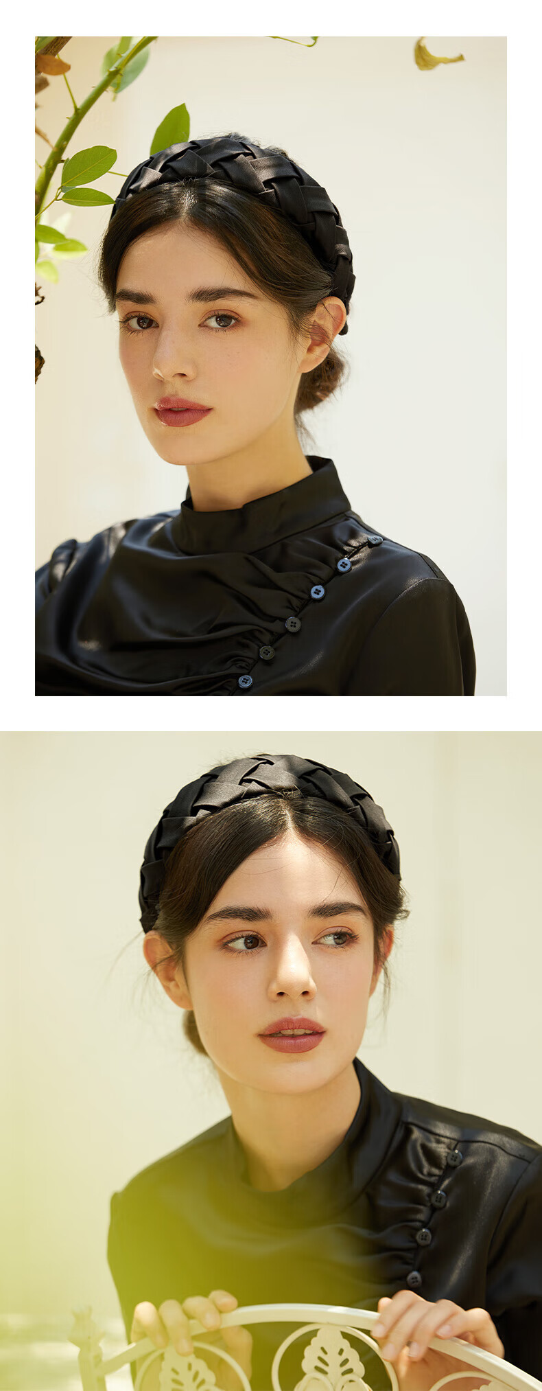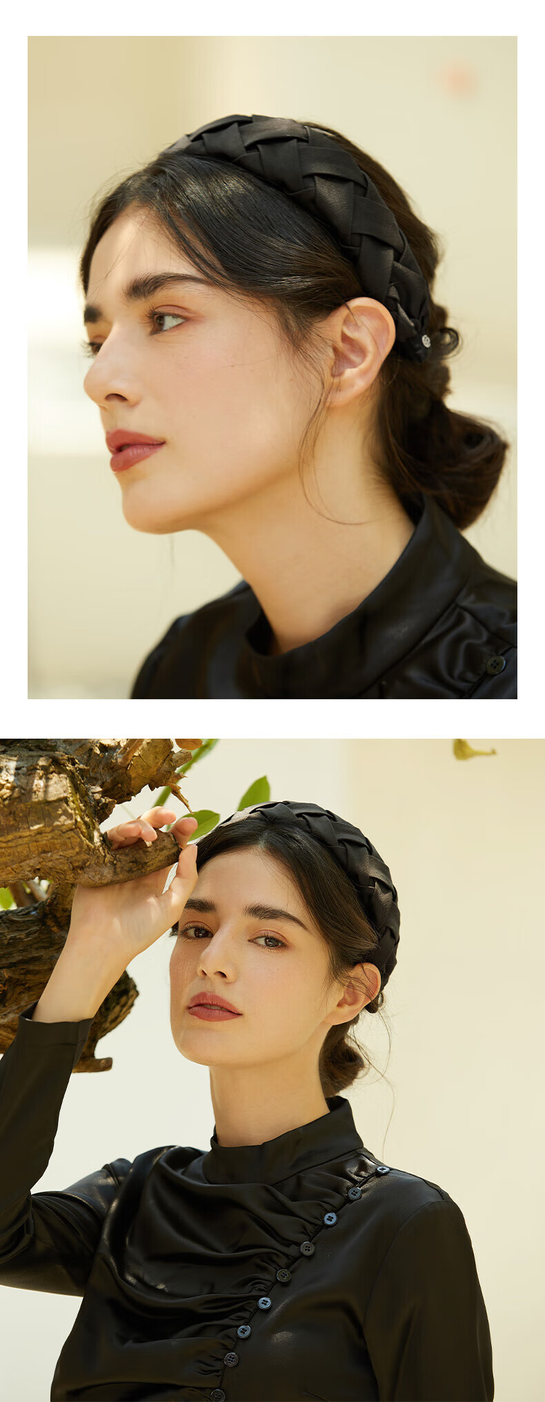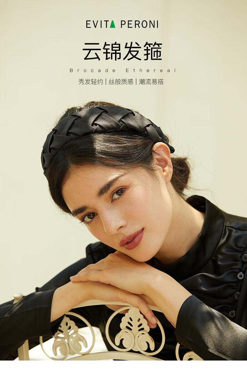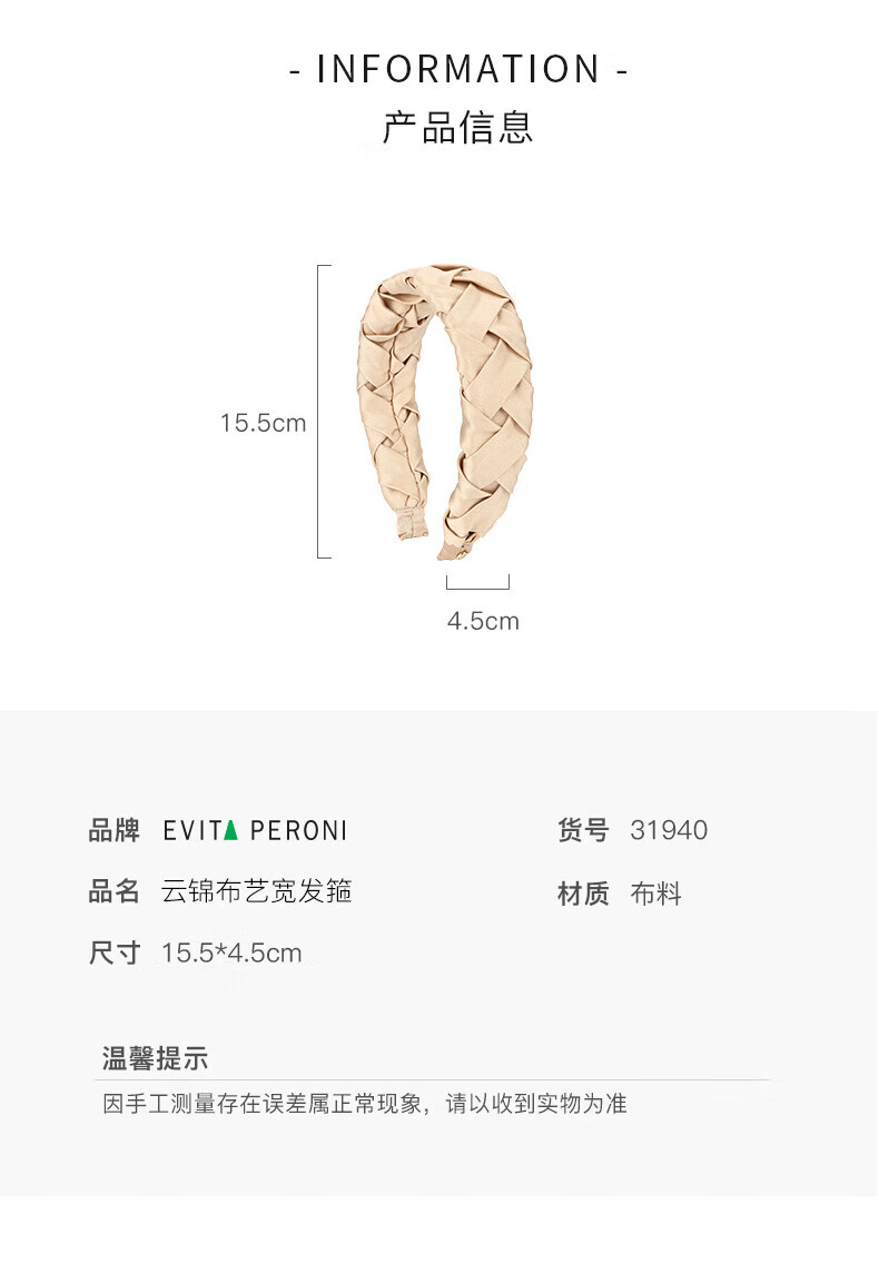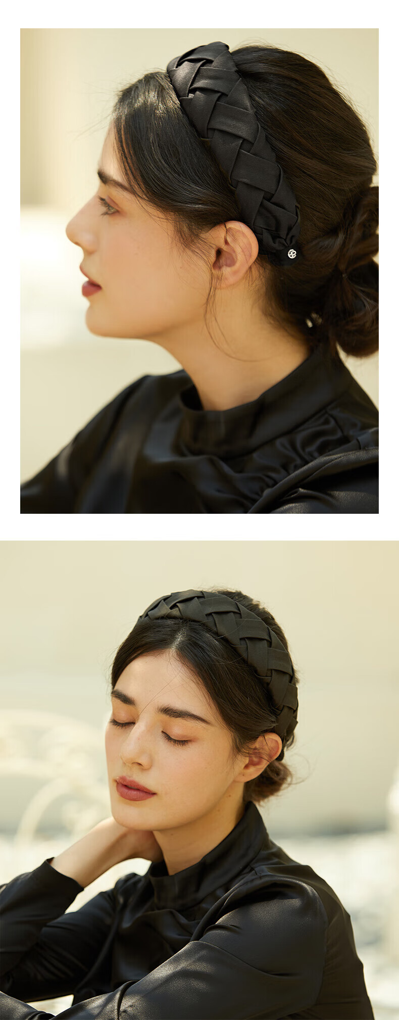 Evita Peroni fabric braided headband for women wide-brimmed white hair headband retro black high-end black