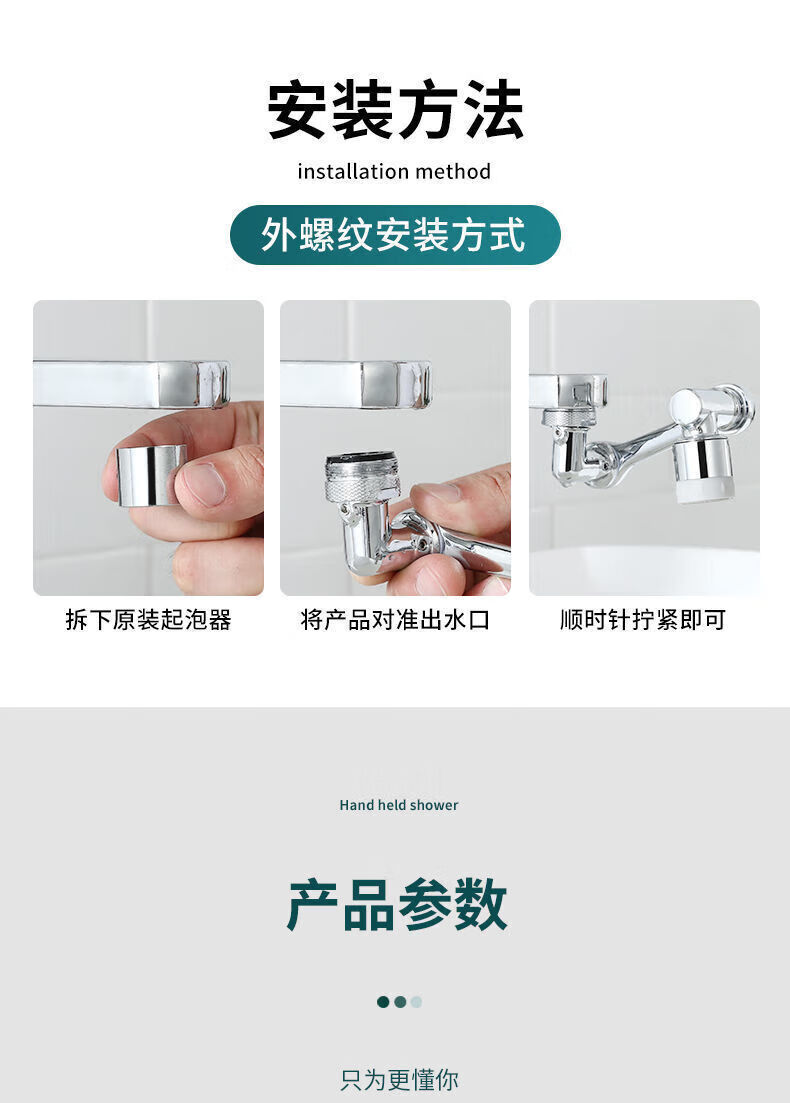 Jomoo all-copper core faucet washbasin universal universal robotic arm kitchen rotating bathroom extension 2-speed (59-refined copper) all-copper robotic arm faucet
