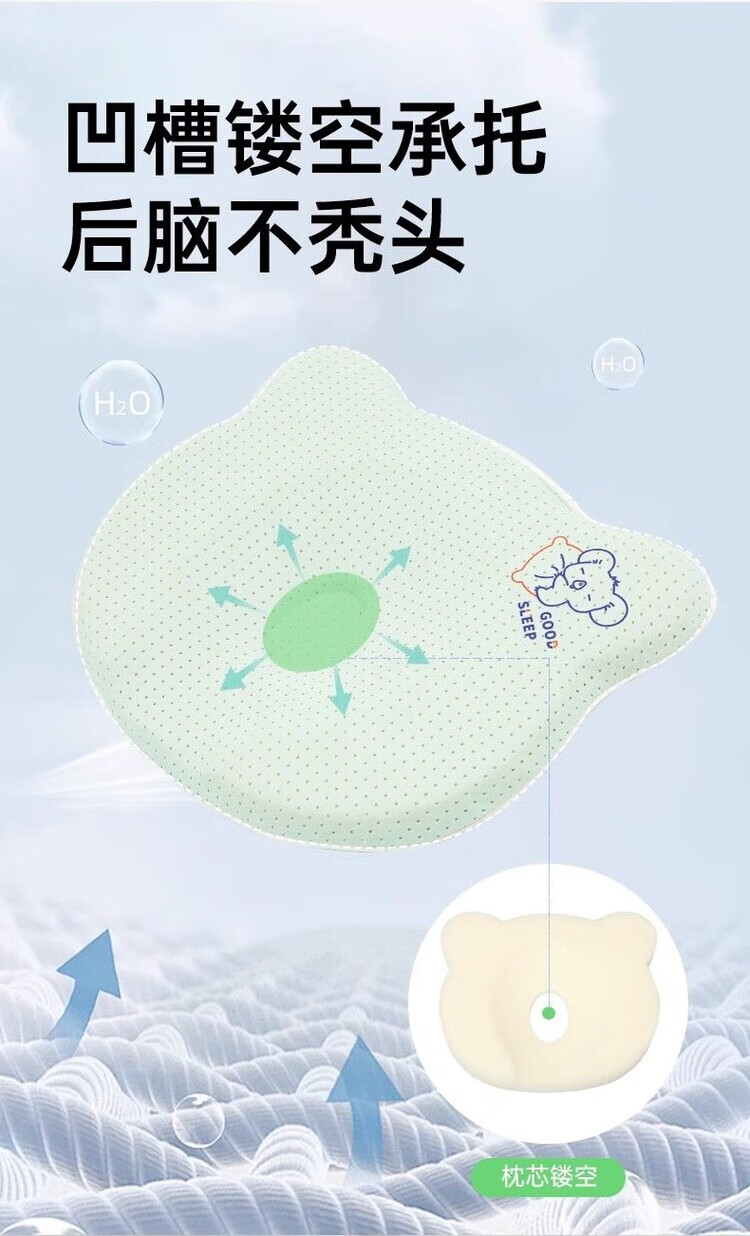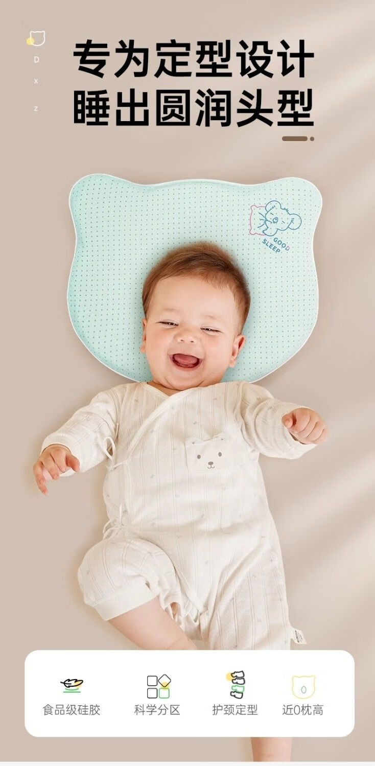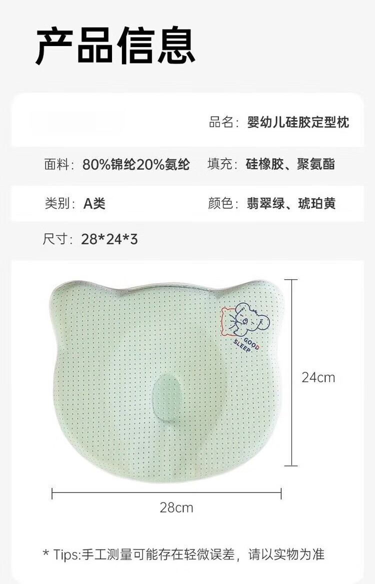 DEATKN German baby pillow for summer newborns 0-6-12 months, anti-startle tilted head, straight-head type lying sleeping artifact, recommended by nanny, emerald green, bear silicone pillow/7A antibacterial, default 28x24x3cm, 0-3 years old, maternal and infant category A