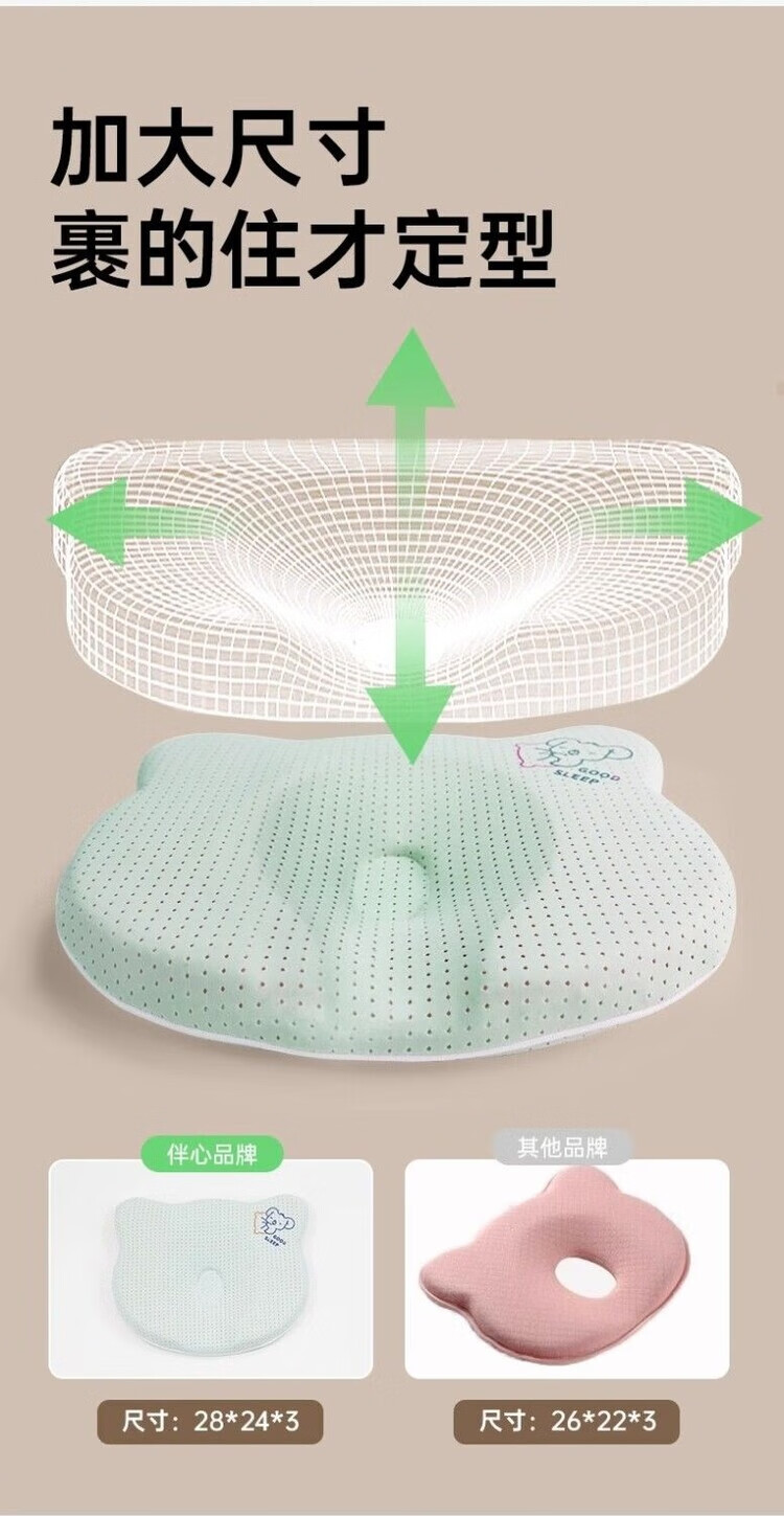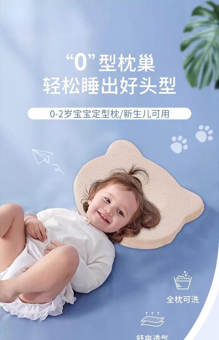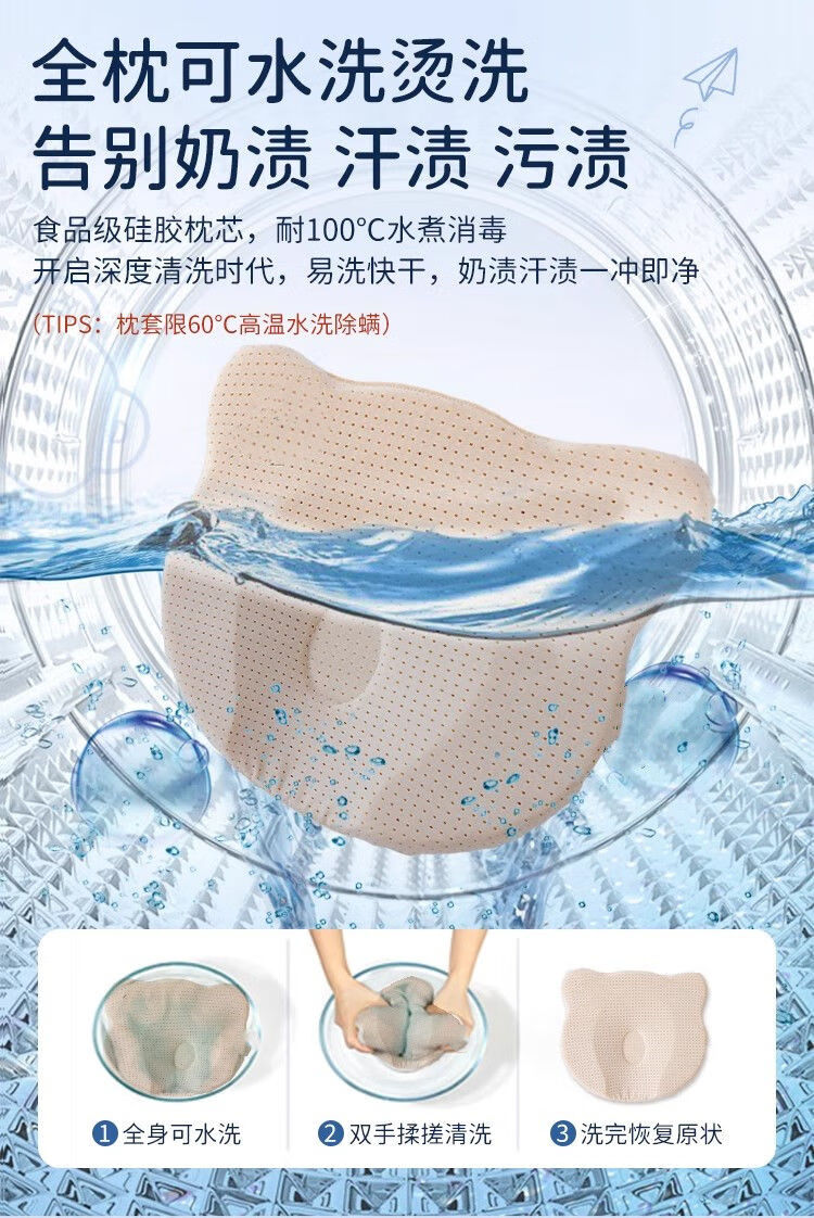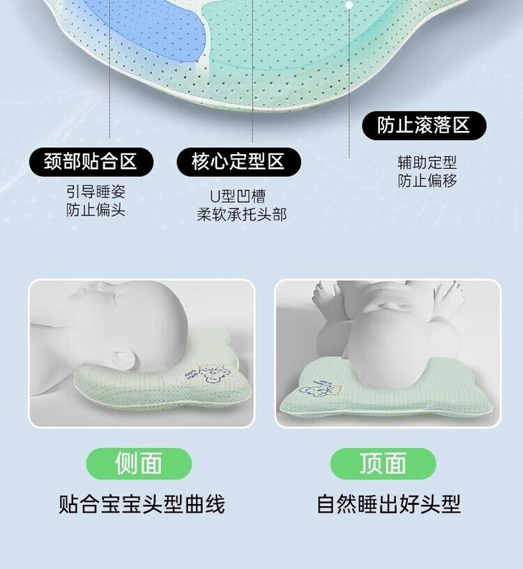 DEATKN German baby pillow for summer newborns 0-6-12 months, anti-startle tilted head, straight-head type lying sleeping artifact, recommended by nanny, emerald green, bear silicone pillow/7A antibacterial, default 28x24x3cm, 0-3 years old, maternal and infant category A