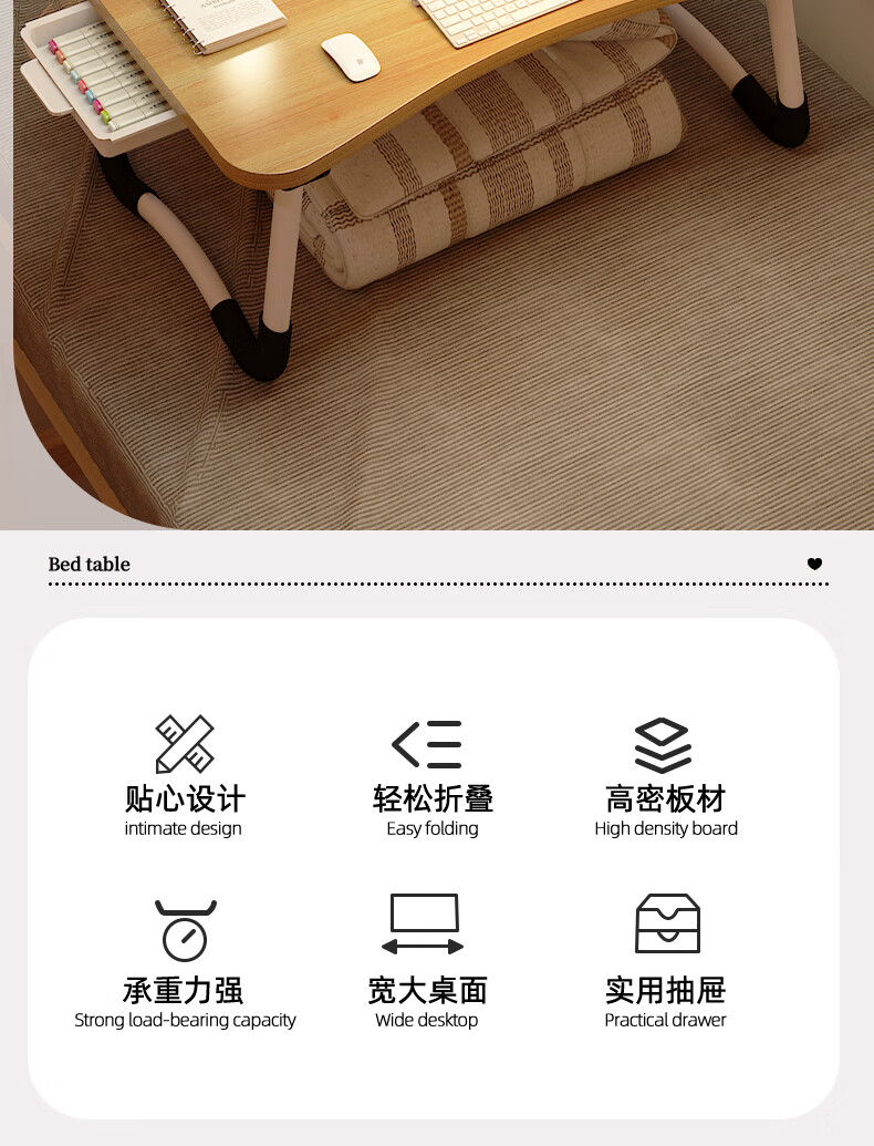 Movable folding office and family table Excellent White 6040 + Tablet Desktop Anti-Slip Legs