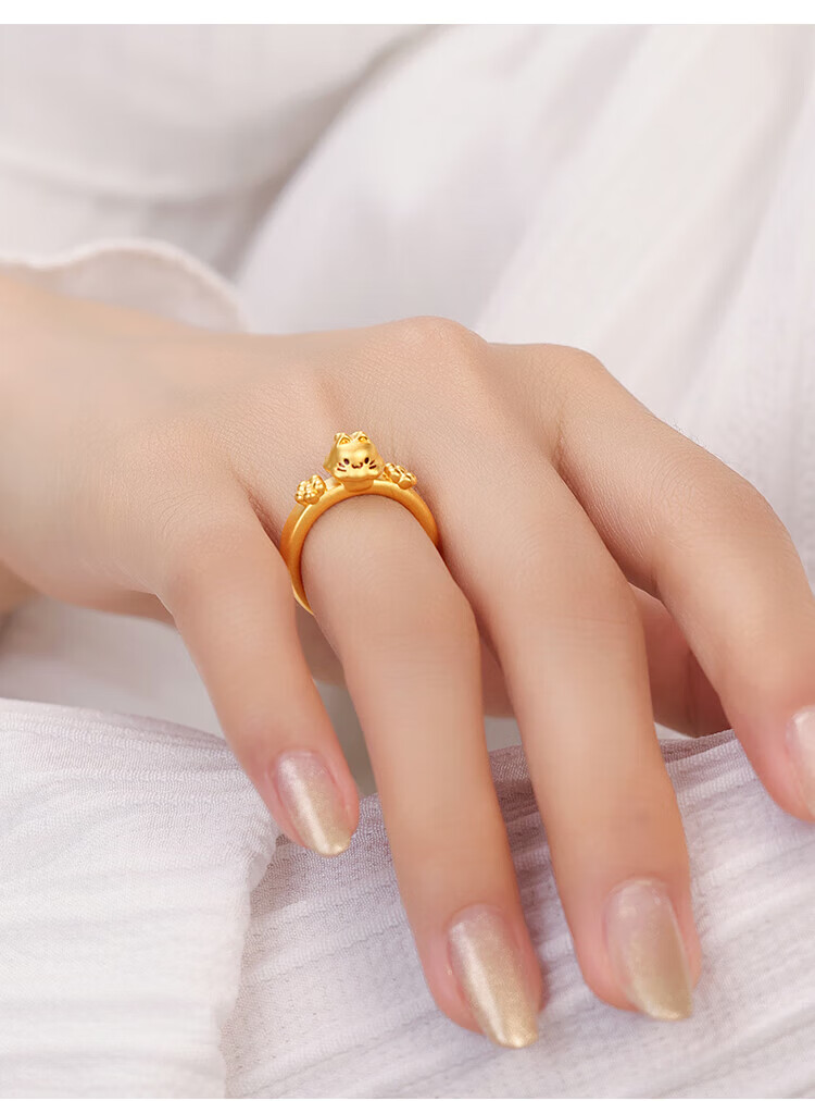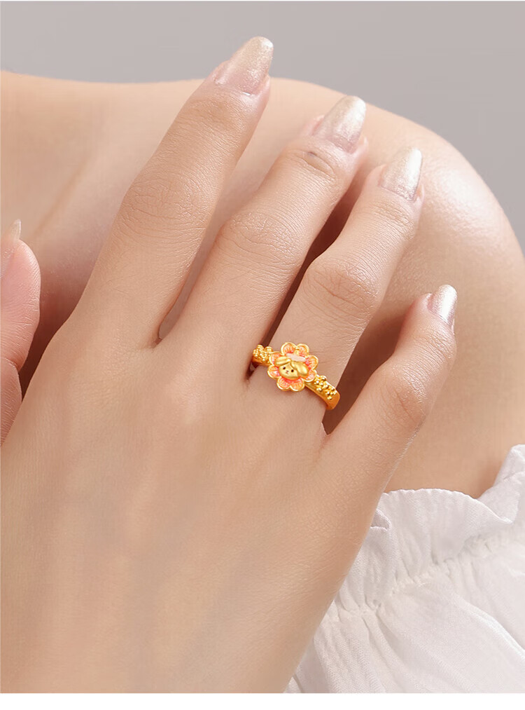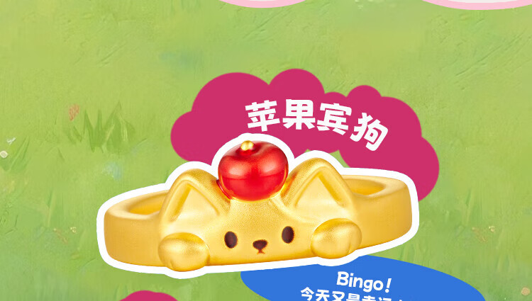 Mankalong Cute Pet Set Gold Ring Apple Bingo Pure Gold Ring Women’s Jewelry Enamel Inlaid Gift for Girlfriend Apple Bingo No. 11