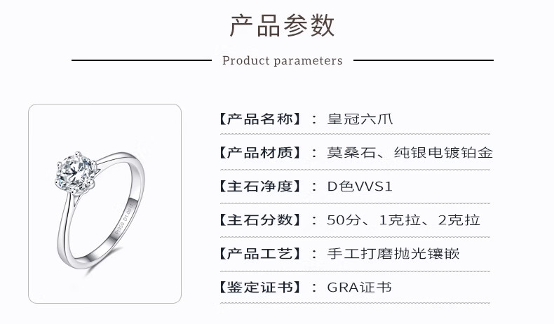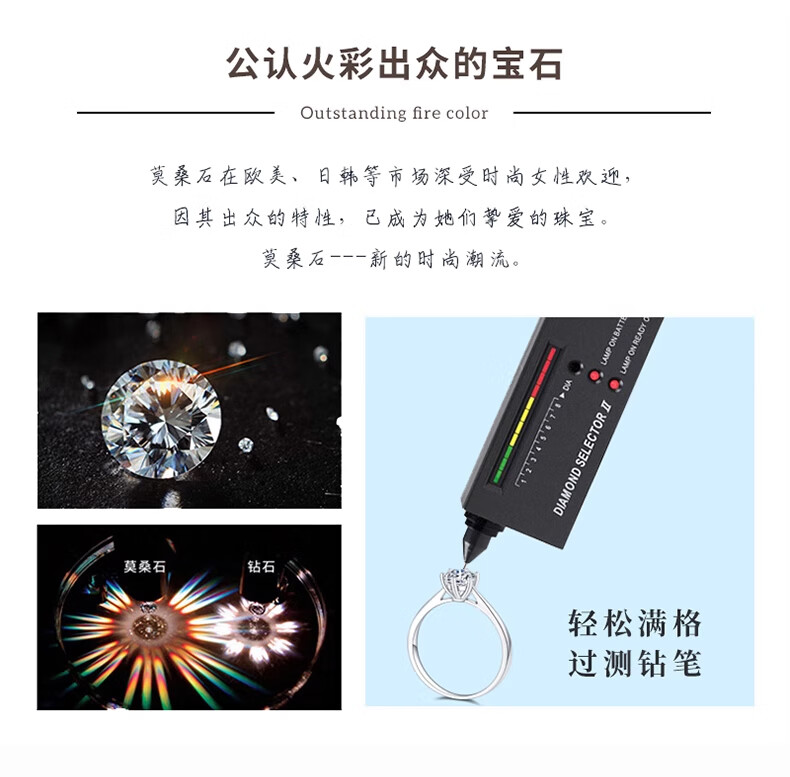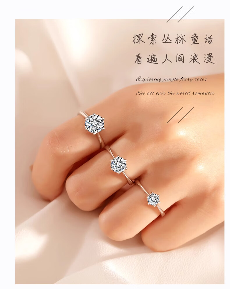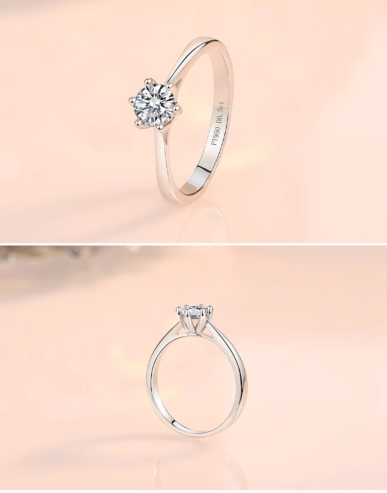 PT950 platinum diamond ring 1 carat moissanite diamond ring wedding proposal platinum ring for girlfriend birthday gift light luxury 50 cent moissanite diamond ring live mouth adjustable size