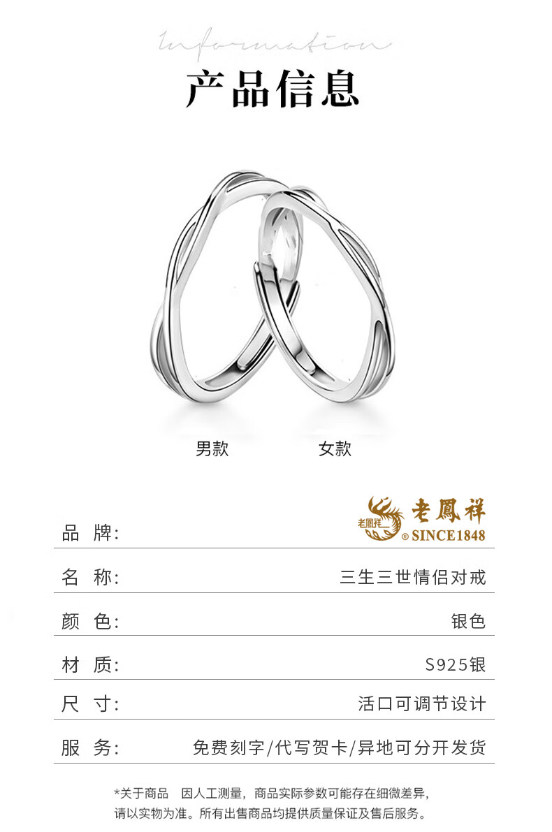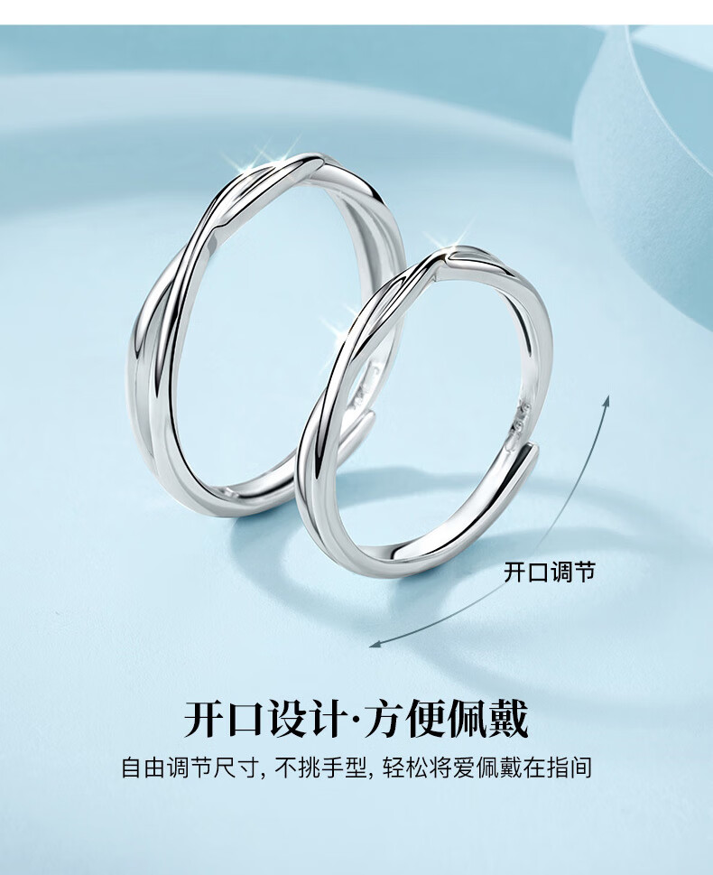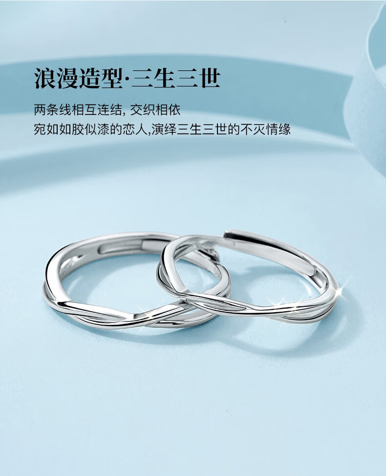 Lao Fengxiang's new sterling silver couple ring, a pair of men's and women's Möbius rings, wedding anniversary gift for boyfriend and girlfriend, shipped by JD.com *Same day/next day delivery - light luxury Möbius ring