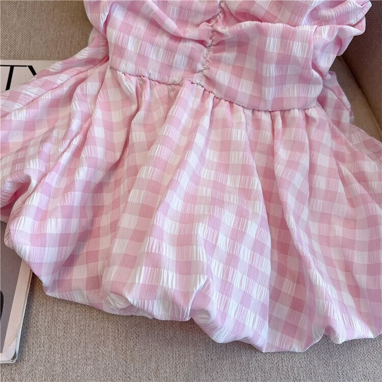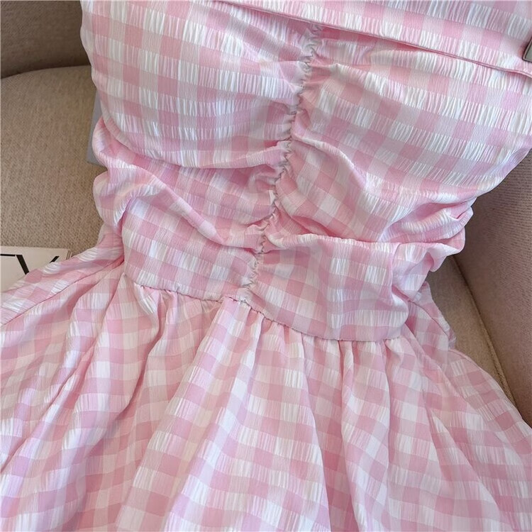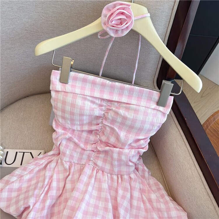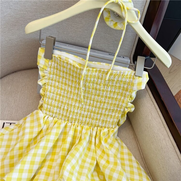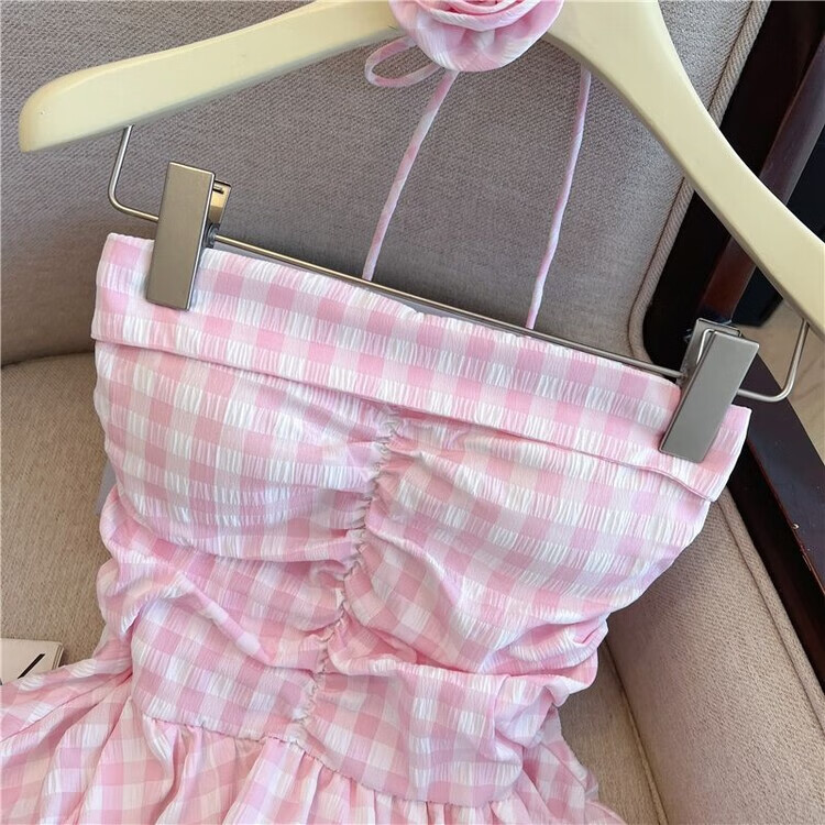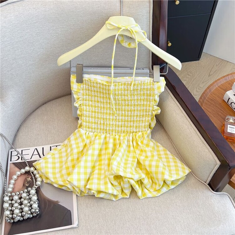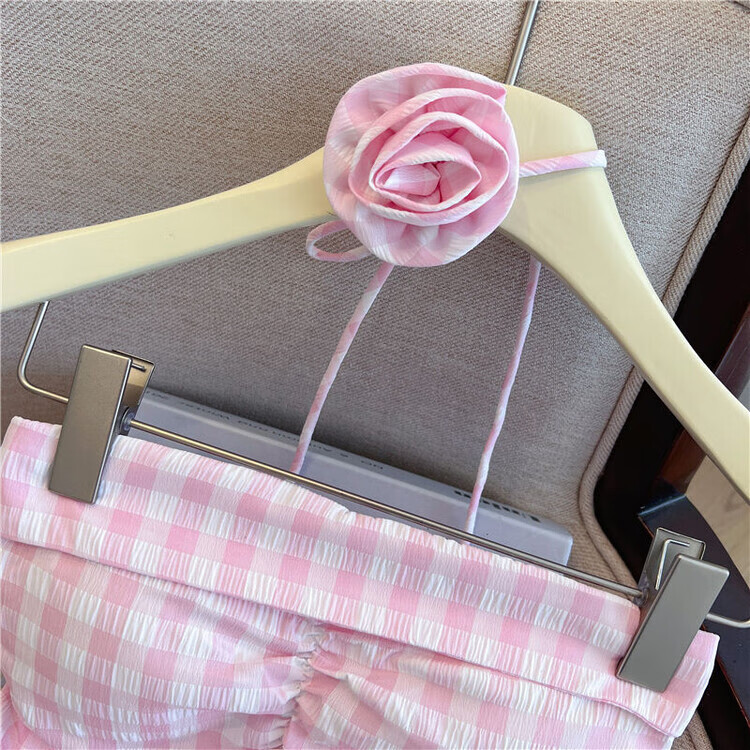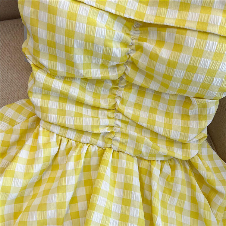 Banfishi sweet pink plaid tube top for women's summer outer wear three-dimensional flower ribbon halter neck wrap skirt small top yellow S