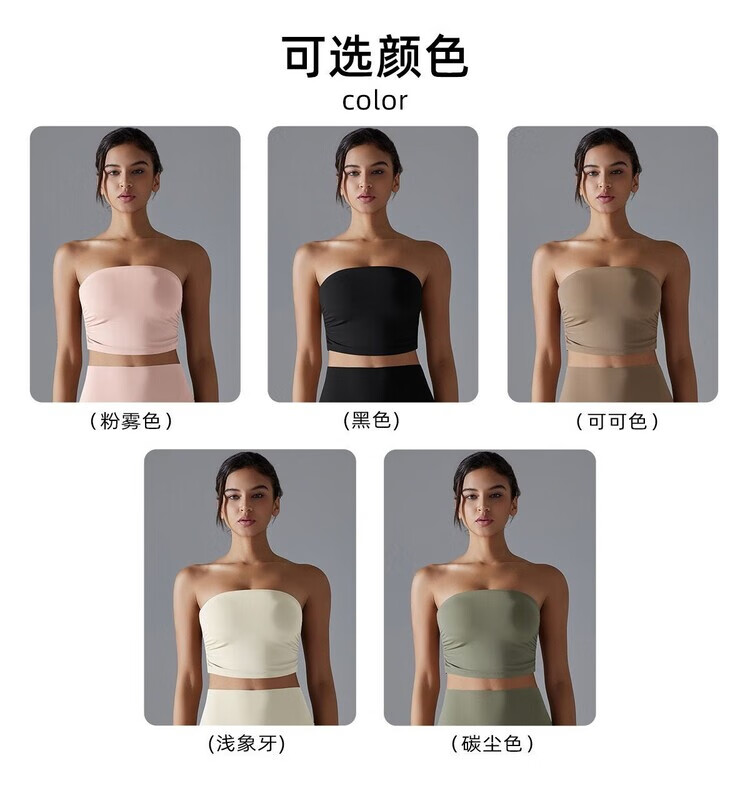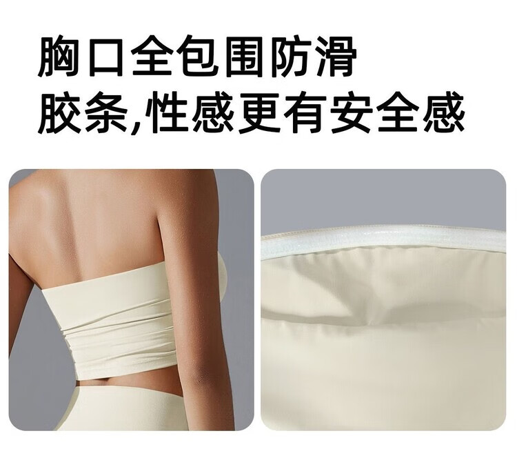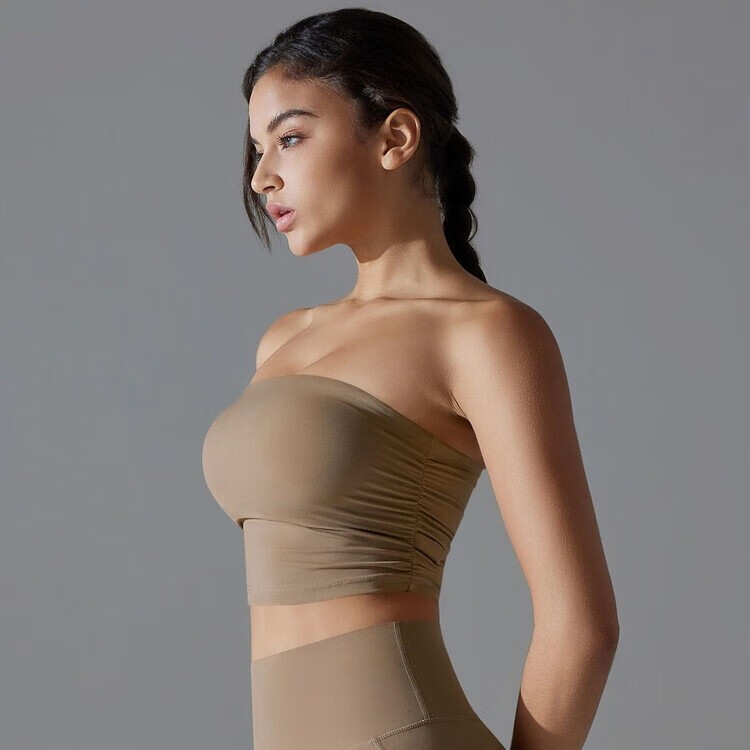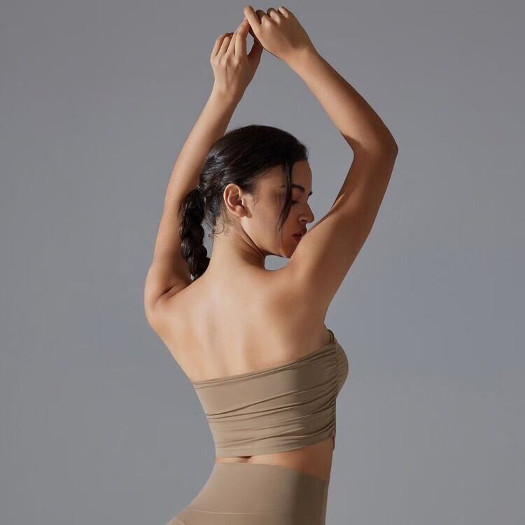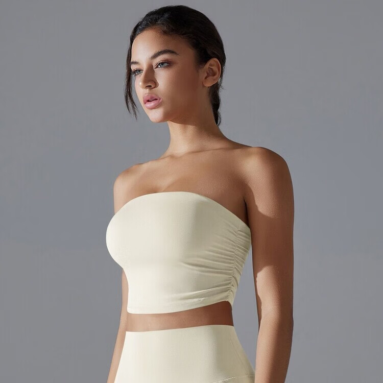 Banfishi chest-wrapped shock-absorbing yoga clothes pleated tube top breathable quick-drying slimming slim anti-off running sports bra fitness clothes high-end black S