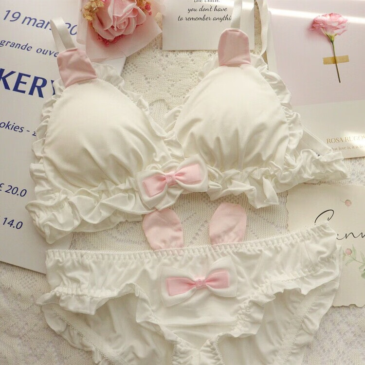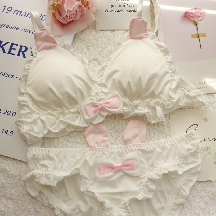 Banfishi sweet and cute rabbit ears girl underwear set Japanese lolita student pure desire small breasts thin section no steel ring bra rabbit ears white suit 70A 32/70AB