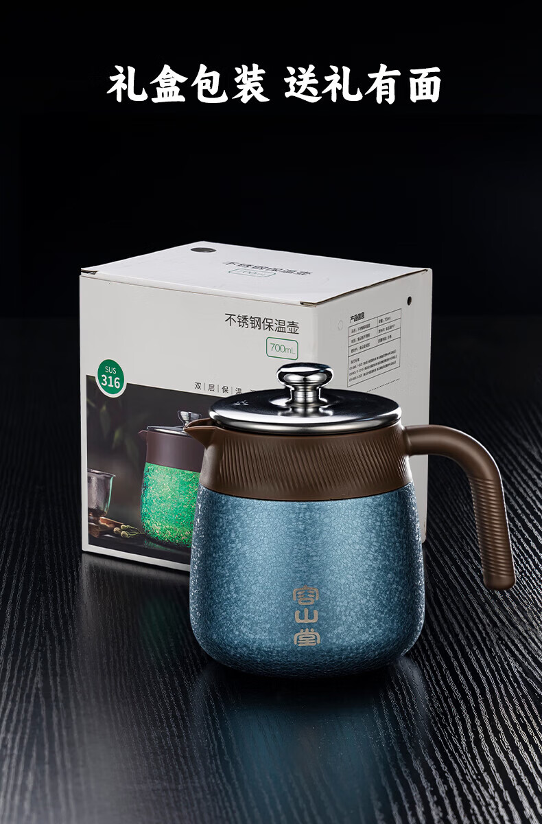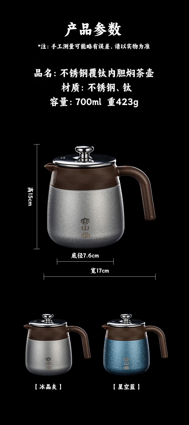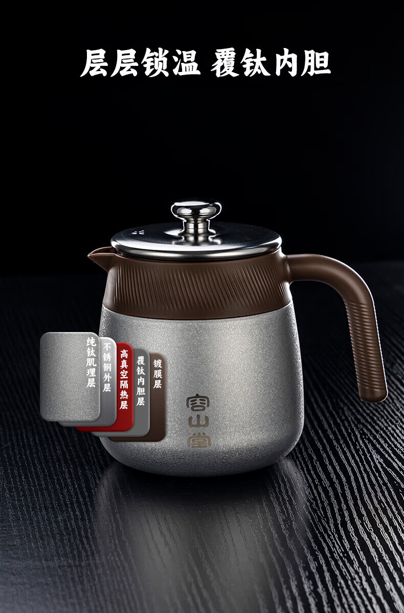 Rongshantang stainless steel teapot teapot covered with titanium liner stewed teapot insulation kettle household stuffy teapot hot water kettle stewed teapot teapot teapot stainless steel coated titanium inner bladder stewed teapot ice crystal 0.7L